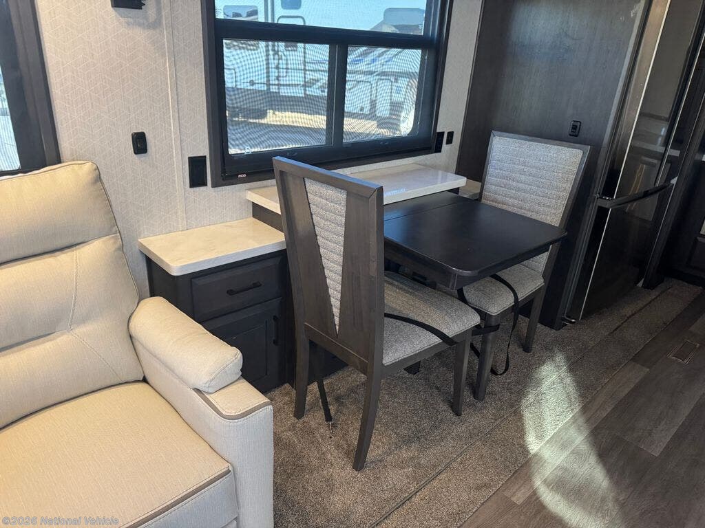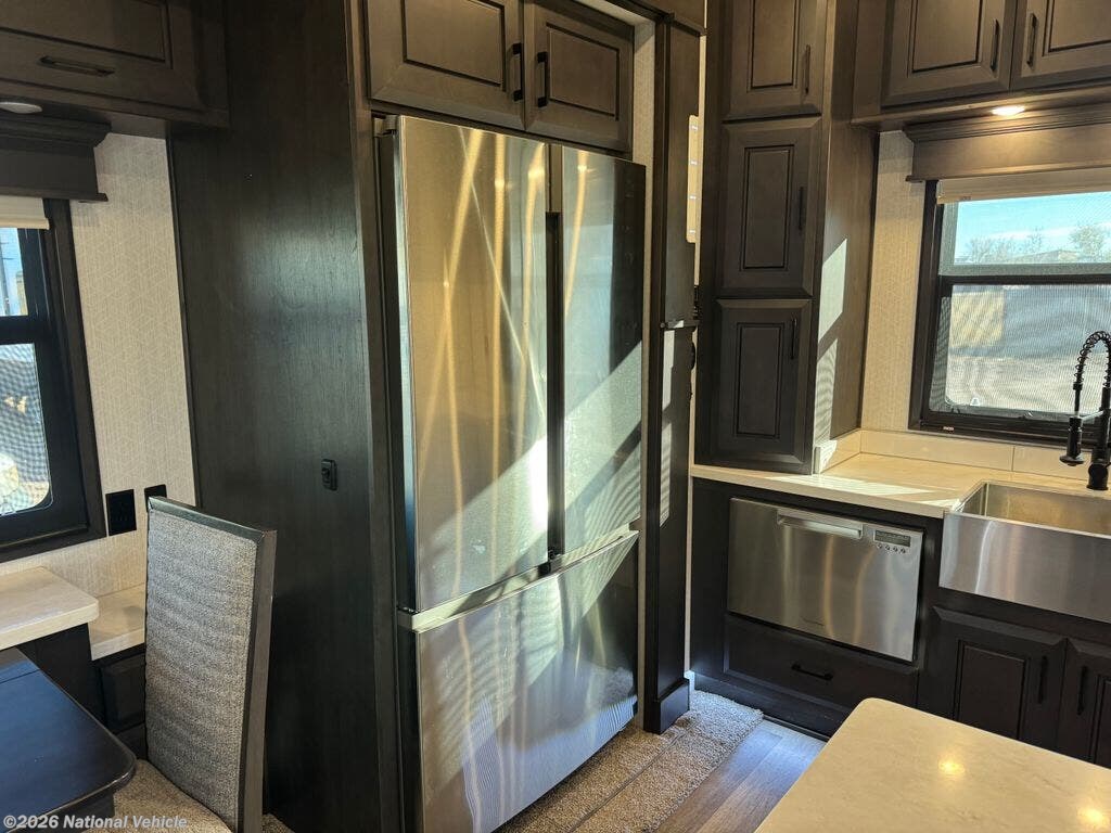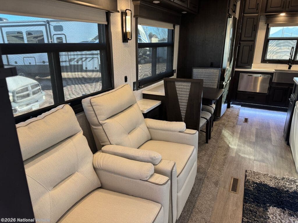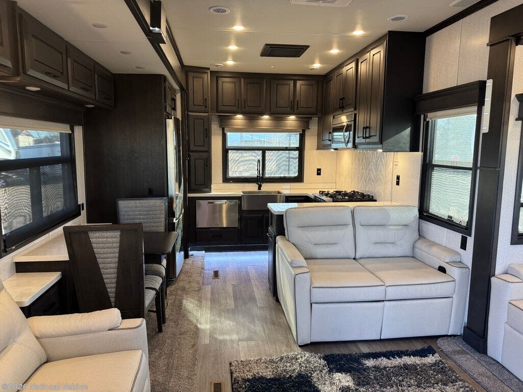 Step into a new level of high-end RV living with the 2022 DRV Mobile Suites 41RKDB4, a 40' luxury fifth wheel built for those who demand the finest in residential comfort, elite construction, and full-time livability. DRV is known for uncompromising quality, and this rear-kitchen flagship model delivers one of the most elegant, spacious, and well-crafted interiors in its class.