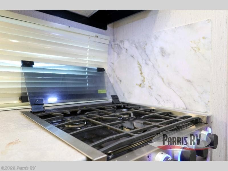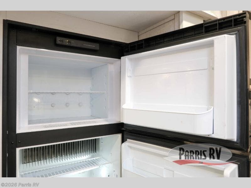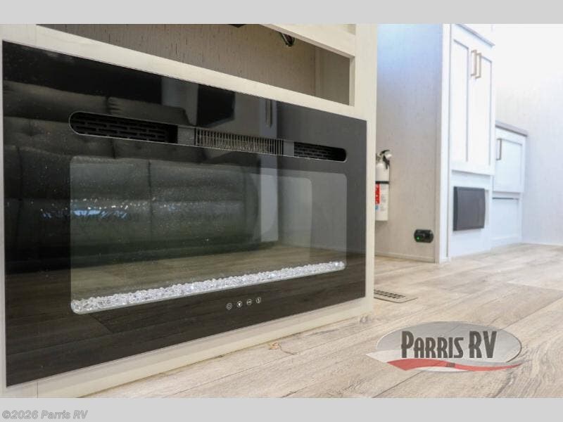 This travel trailer is perfect for two people looking to getaway for the weekend! It features a front private bedroom with a king bed to lay your head at night with wardrobes and nightstands on either side. You can prepare your best meals with the glass top three burner cooktop with a 17" oven and the 8 cu. ft. double door refrigerator then enjoy them at the 78" chaise lounge with a removeable table. The lounge is also conveniently across from an entertainment center with a 30" glass fireplace and a 40" LED TV. Inside the full rear bathroom is a shower to freshen up in each morning and a closet to keep your linens close.
