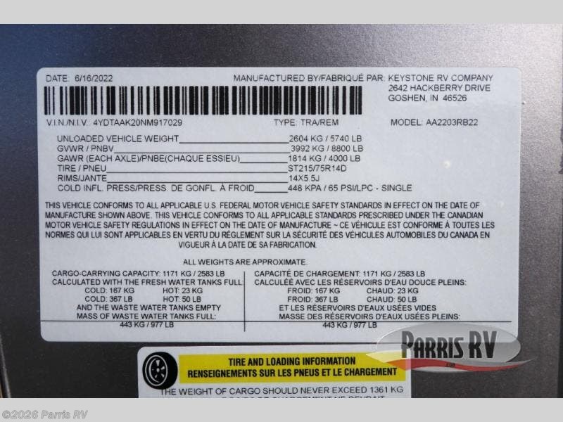 Request More Info on this 2022 Dutchmen Astoria 2203RB Offered for sale by Parris RV