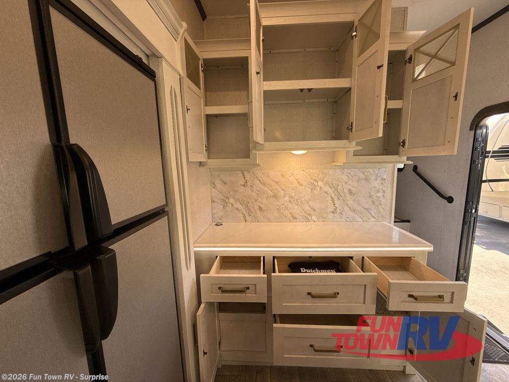 Each one of these Dutchmen RV Astoria fifth wheels and travel trailers offer highly visible, value-driven standard features and a sturdy construction with a fiberglass exterior! Dark-tinted safety glass windows offer privacy and a sleek design. You can store your outdoor gear in the pass-through storage areas and the slam latch baggage doors on the fifth wheels offer even more security while you travel. Their modern interior décor includes acrylic backsplash and stainless steel appliances which will be easy to clean. HyperDeck flooring will also be easy to clean, as well as hold up through each and every adventure. Don't waste anymore time, come find your perfect model today!