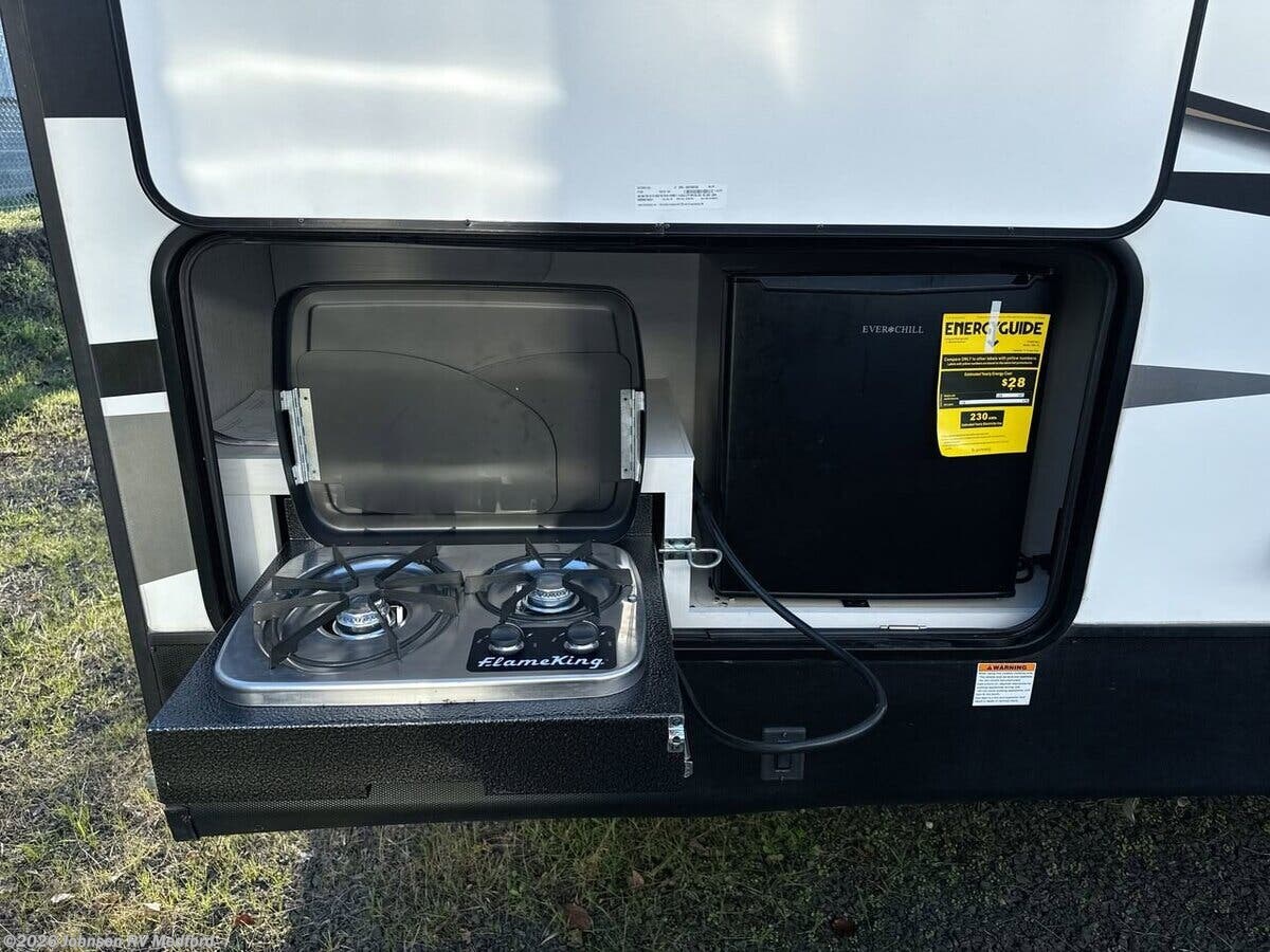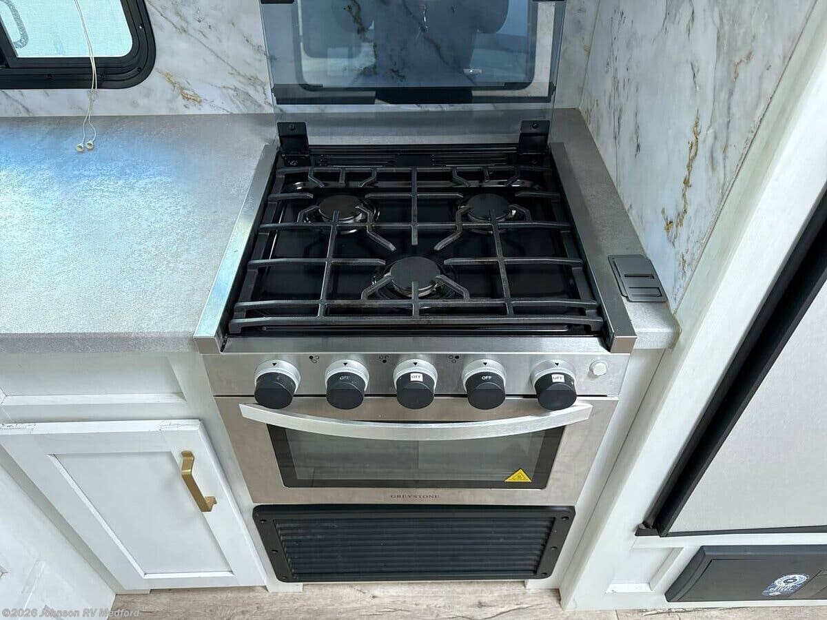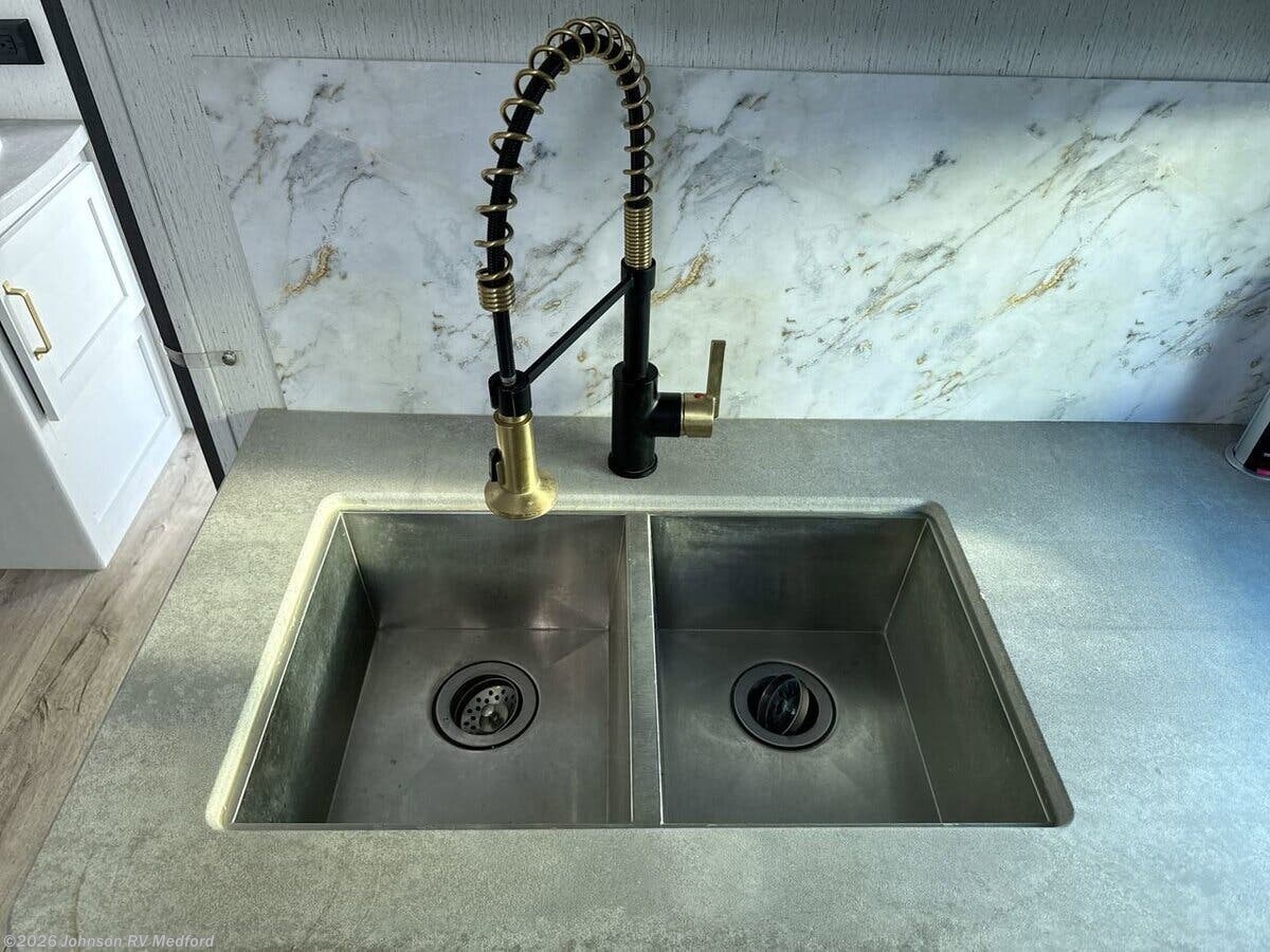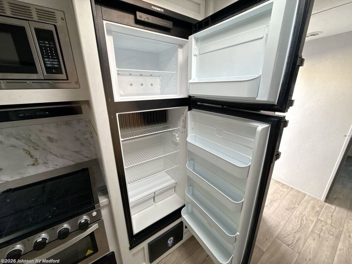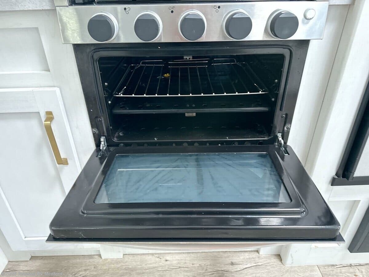 Features Include: LED Lighting, Arched Ceiling, Linoleum Flooring, Tinted Safety Glass, Roller Shades, Sofa Sleeper (vbm), Dining, Convertible Dinette, Pantry, Pop up Power Station, Pull Out Trash Can, Seamless Countertops, Stainless Steel Sink, High Rise Faucet, Full Wall Backsplash, Cooktop, Gas Oven, Systems Center, WiFi 4G LTE Prep, 40-inch LED TV, Outdoor Speakers, Outdoor TV Bracket, Sleeping, Pocket Door (varies), King Bed, Nightstands, Wardrobes, Pocket Door (vbm), Two 20# LP Bottles, 50Amp Service Cord, Battery Disconnect, 13.5k AC, Enclosed Gate Valves, Black Tank Flush, 6-Gal DSI Hot Water, Steel Main Chassis, Aluminum Wheels, 3/8-inch Roof Deck, Seamless TPO Roofing, Pass Through Storage, Power Tongue Jack