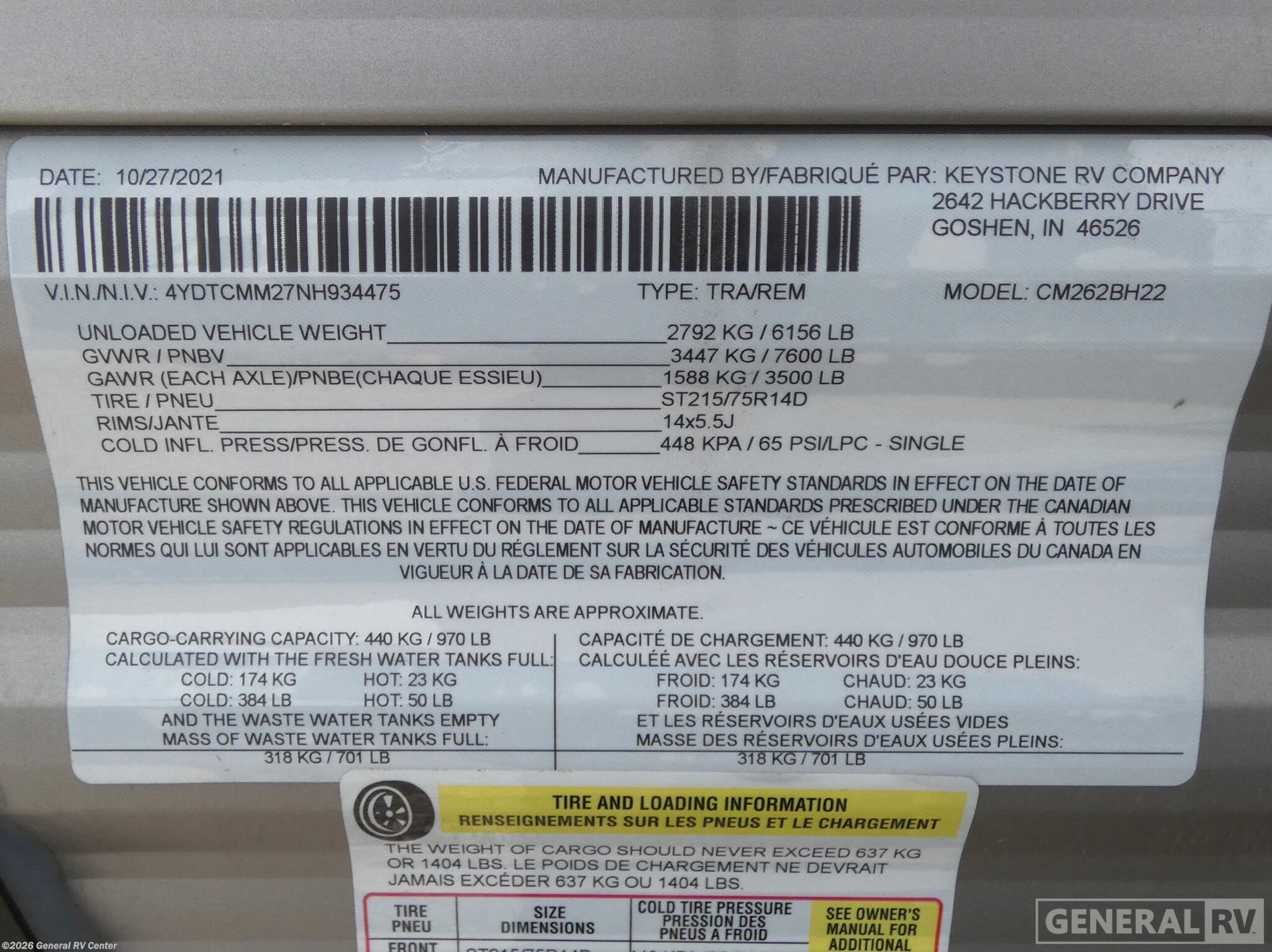 - VIN4YDTCMM27NH934475