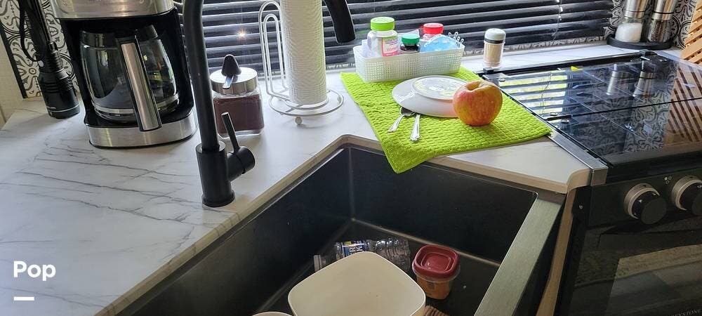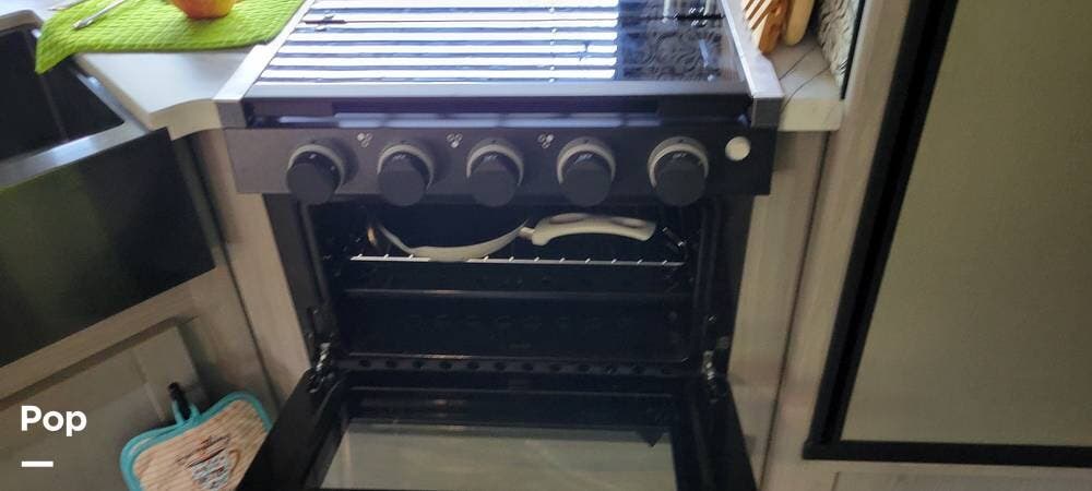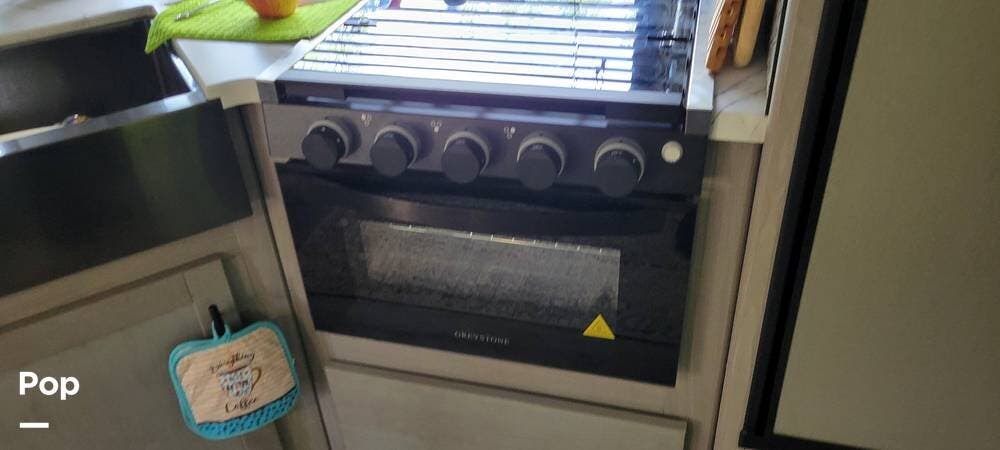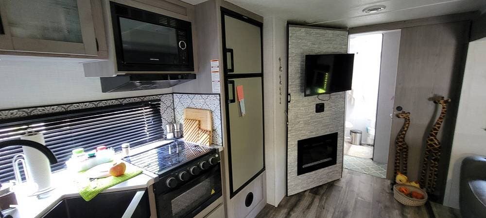 Use the fully equipped kitchen to whip up delicious meals on the go. It includes a stove, oven, fridge, and microwave. You'll be the campsite chef extraordinaire!
