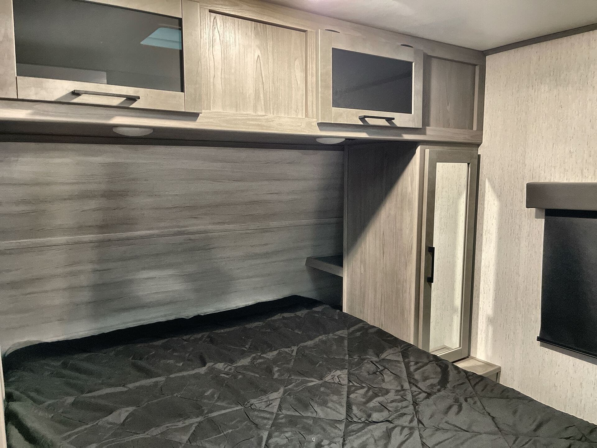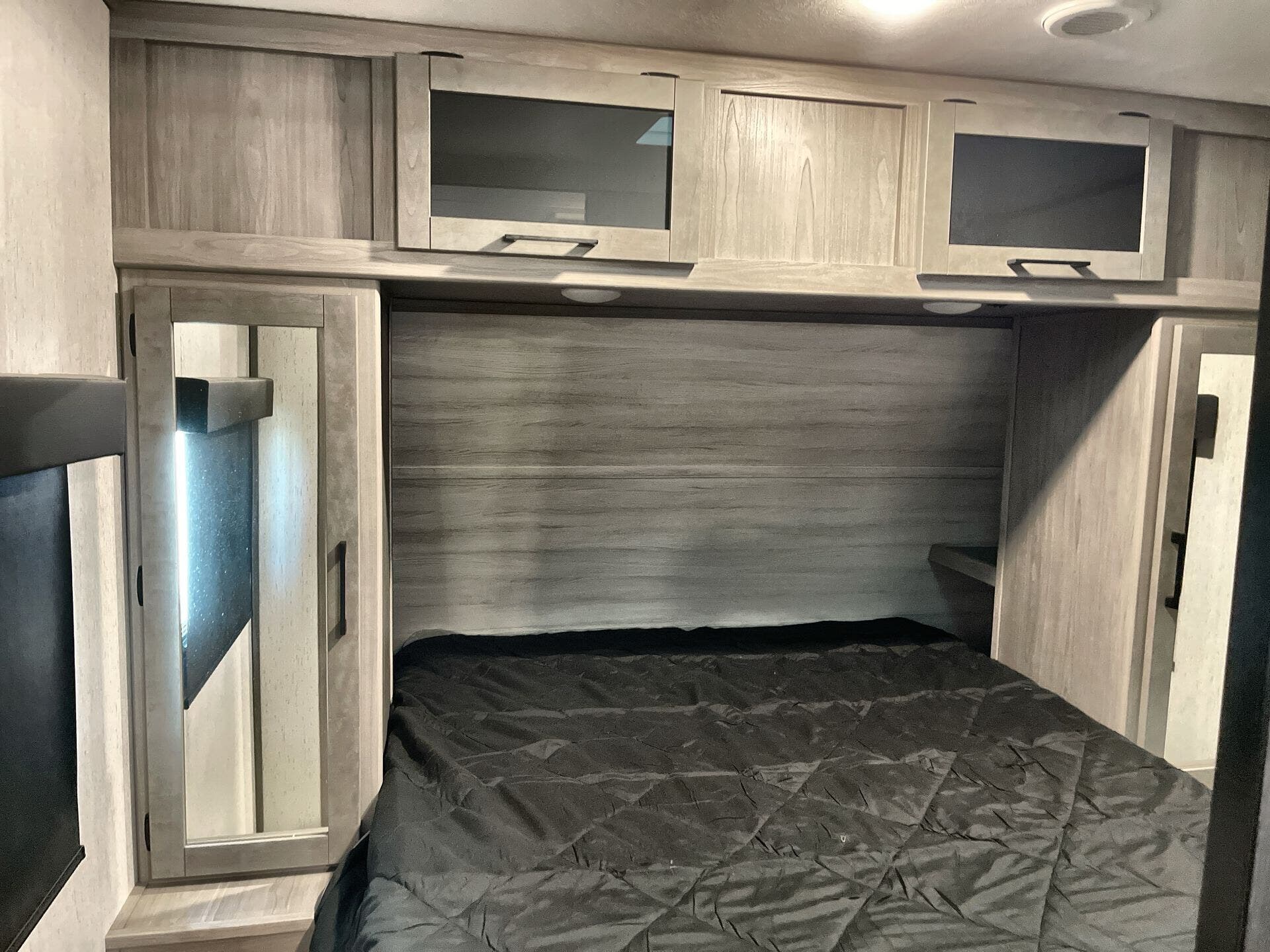 Bunk Beds, Medicine Cabinet, Queen Bed, Roof Vents, Shower, Toilet
