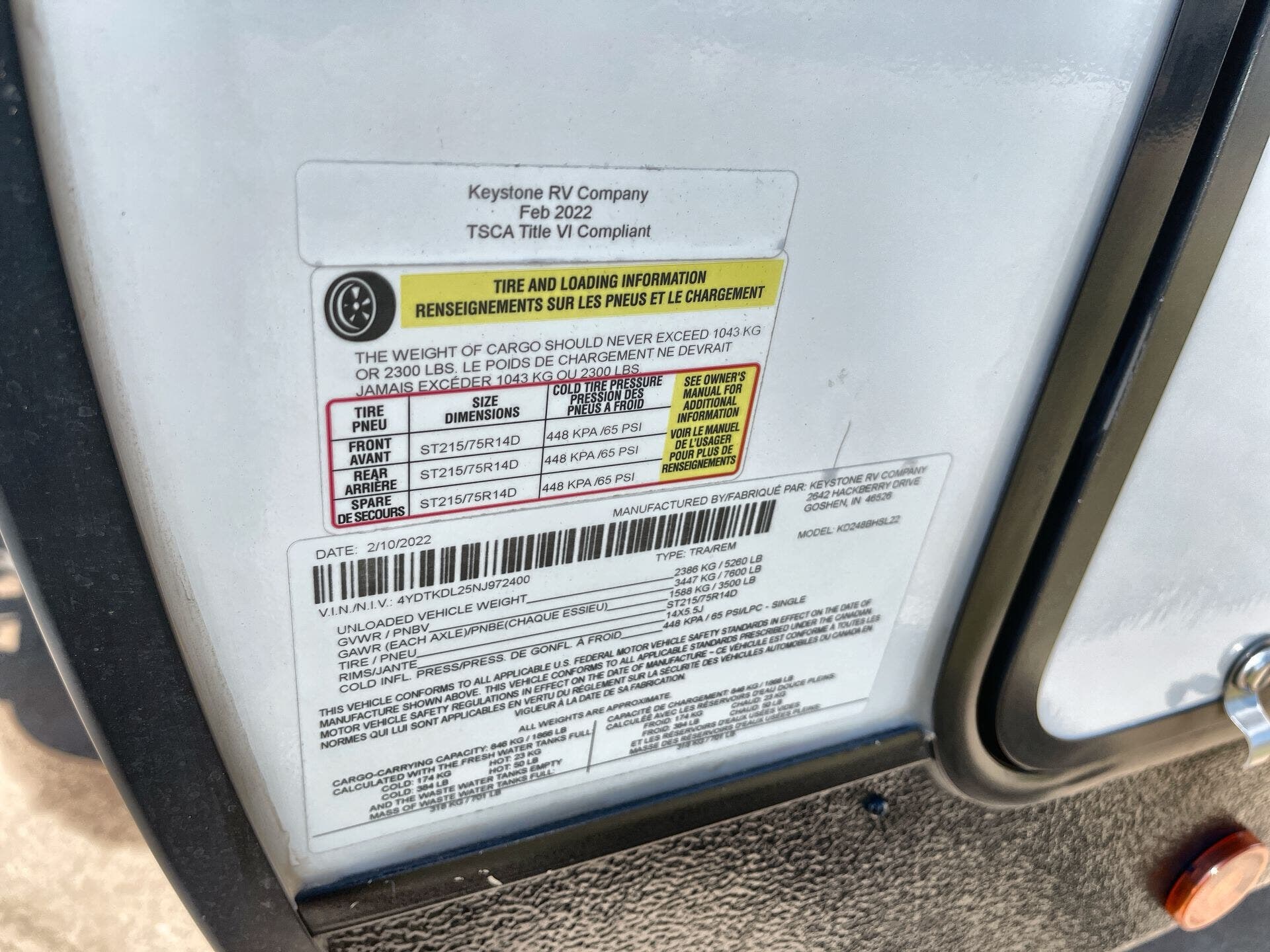 - VIN4YDTKDL25NJ972400
