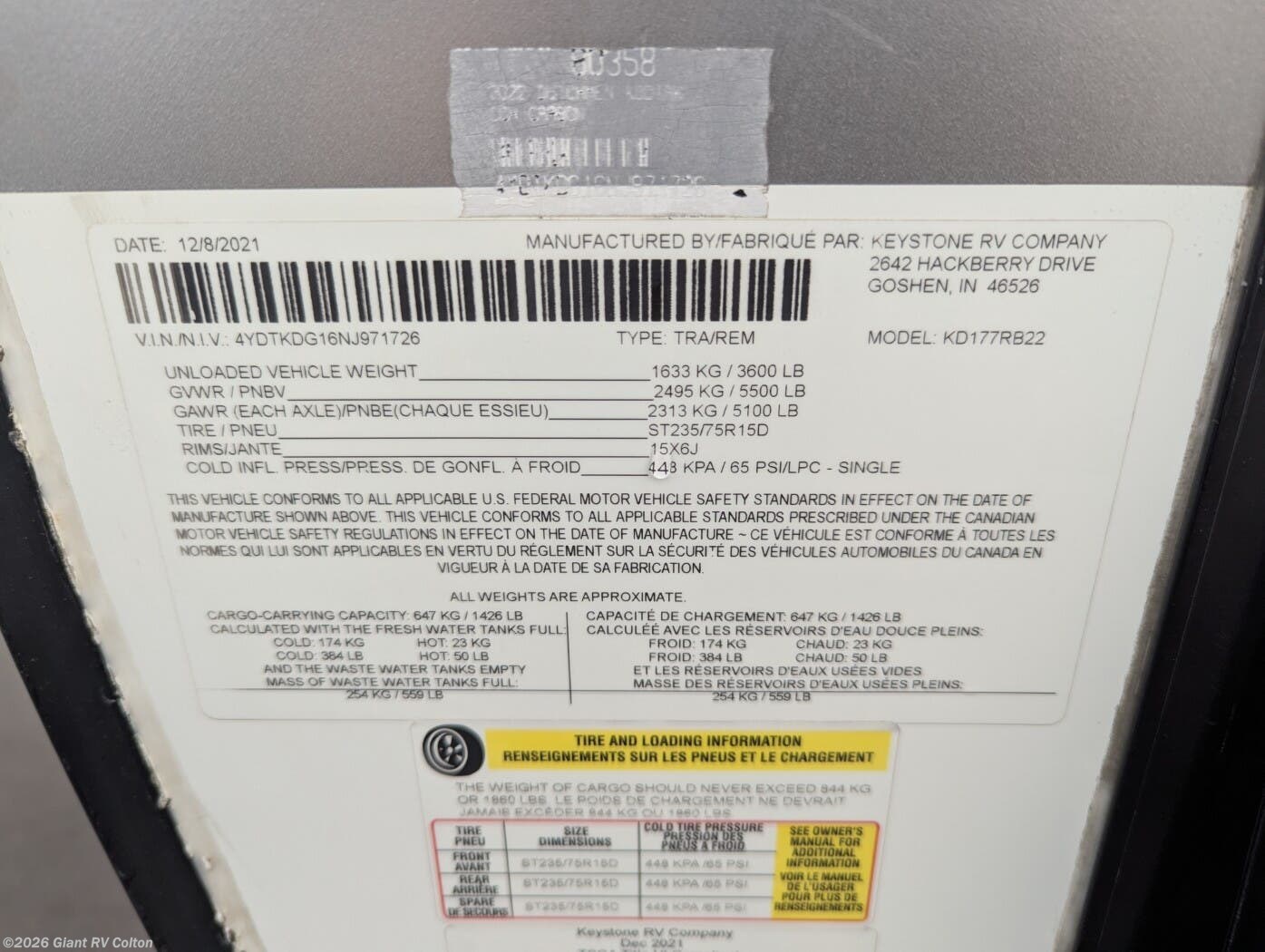 - VIN4YDTKDG16NJ971726