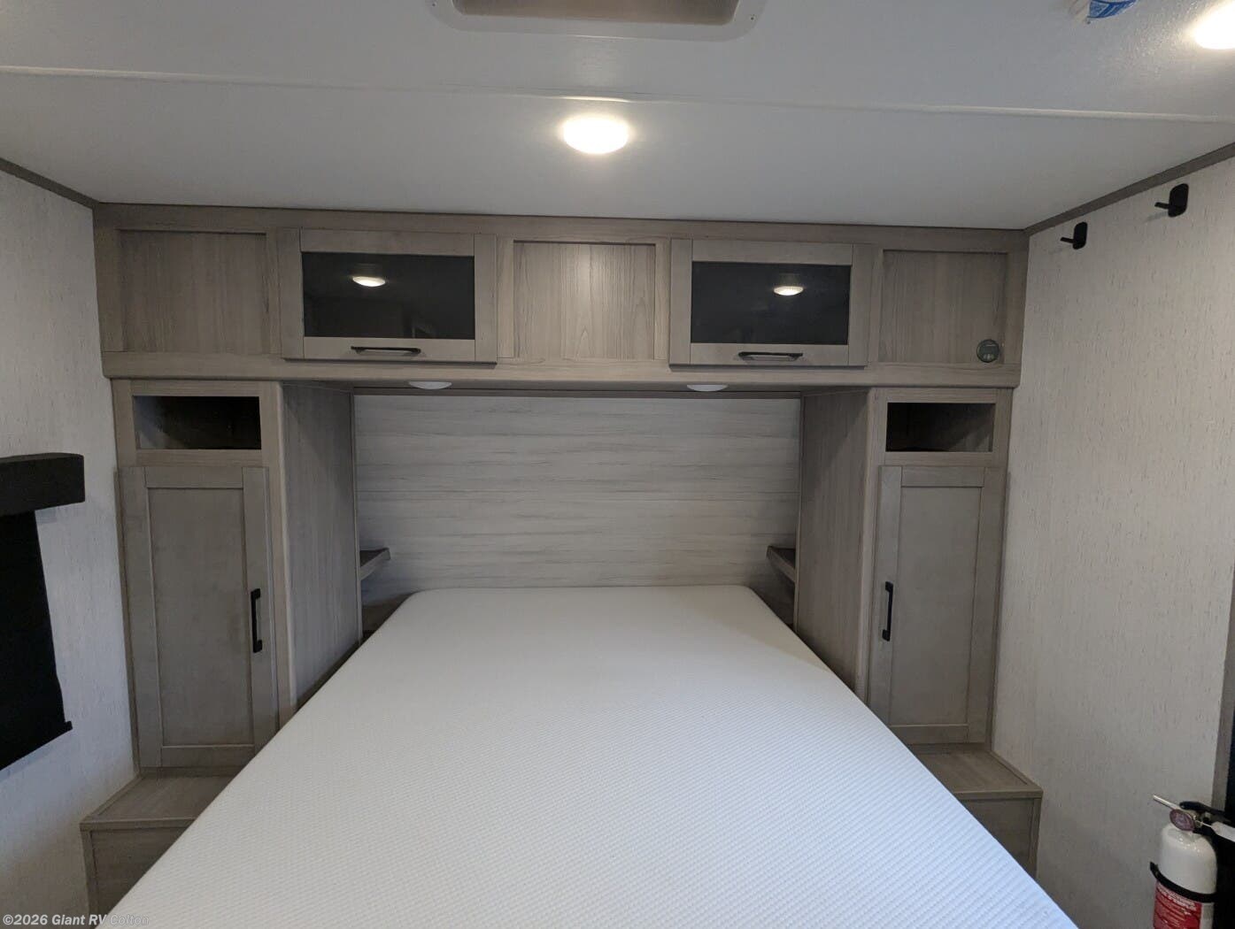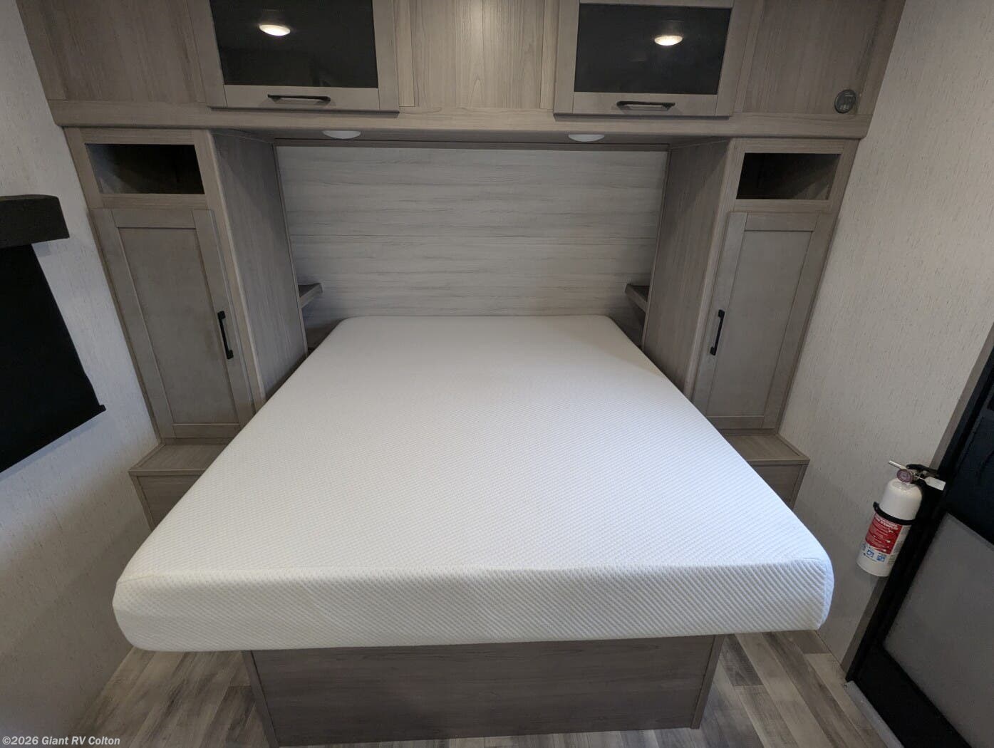 - Front Queen Bed Layout providing a dedicated sleeping area with nearby storage and separation from the main living space.