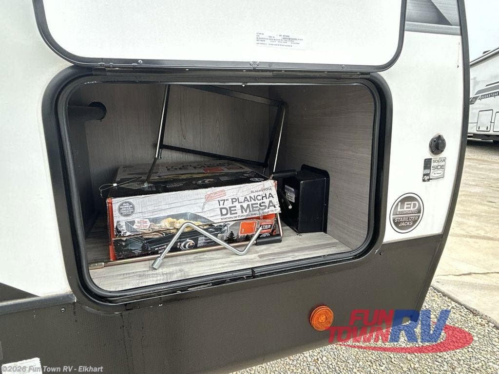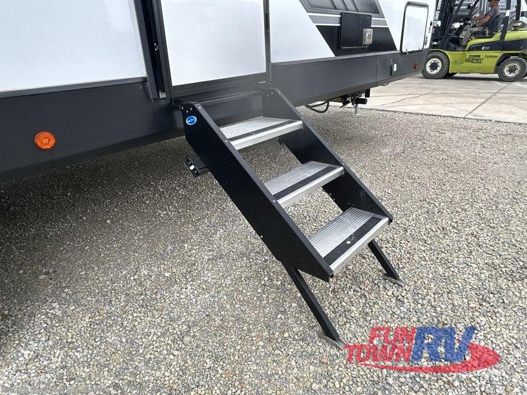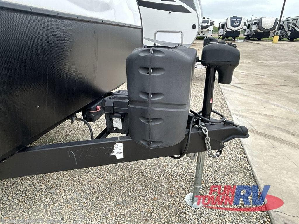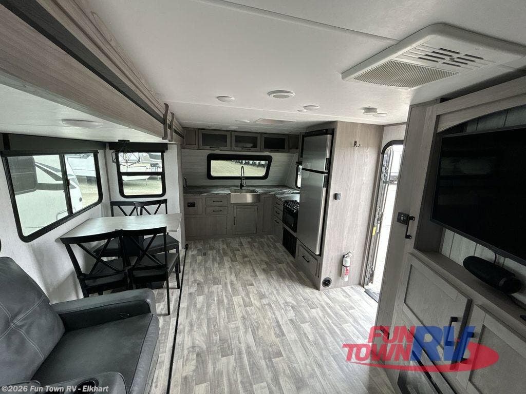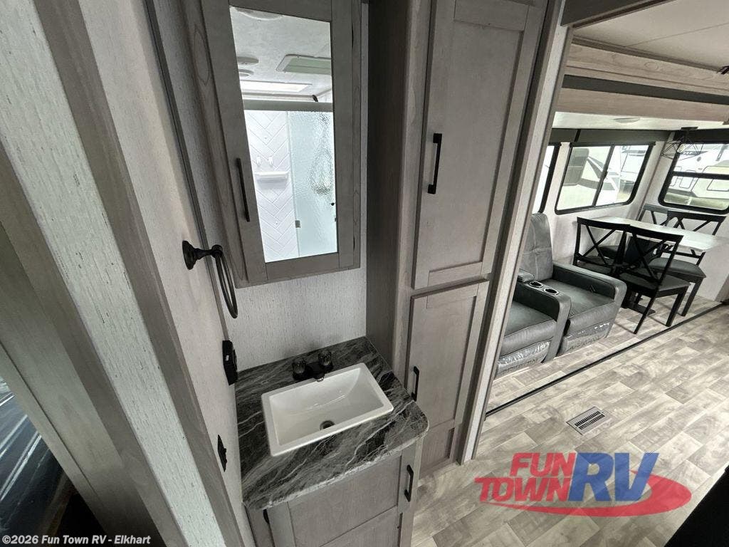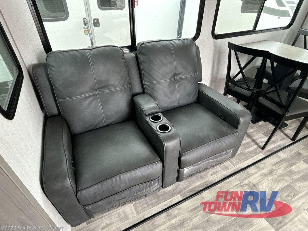 You will love every minute spent in this spacious travel trailer that includes dual slide outs! The walk through bath will create a rear master bedroom you are sure to love. You can sleep soundly on the king bed and relax in front of the bedroom fireplace. The chef of your group will have ample counter space in the kitchen to prep meals, plus there is a 10 cu. ft. refrigerator to store perishables. After dinner, get comfortable on the theater seats or play a game at the booth dinette. Or you may just want to relax outdoors under the 20' power awning with LED lights!