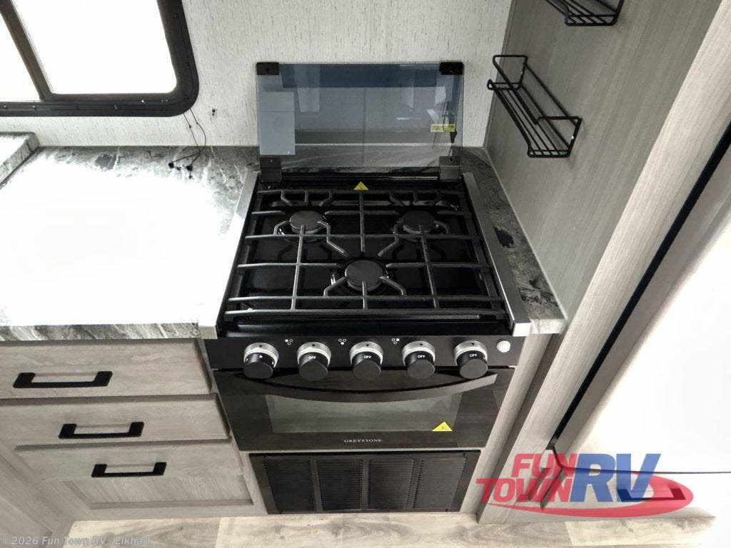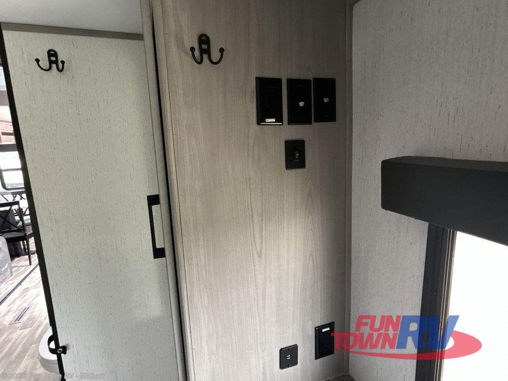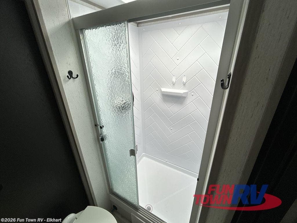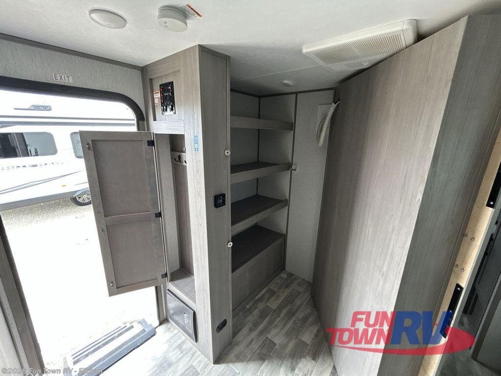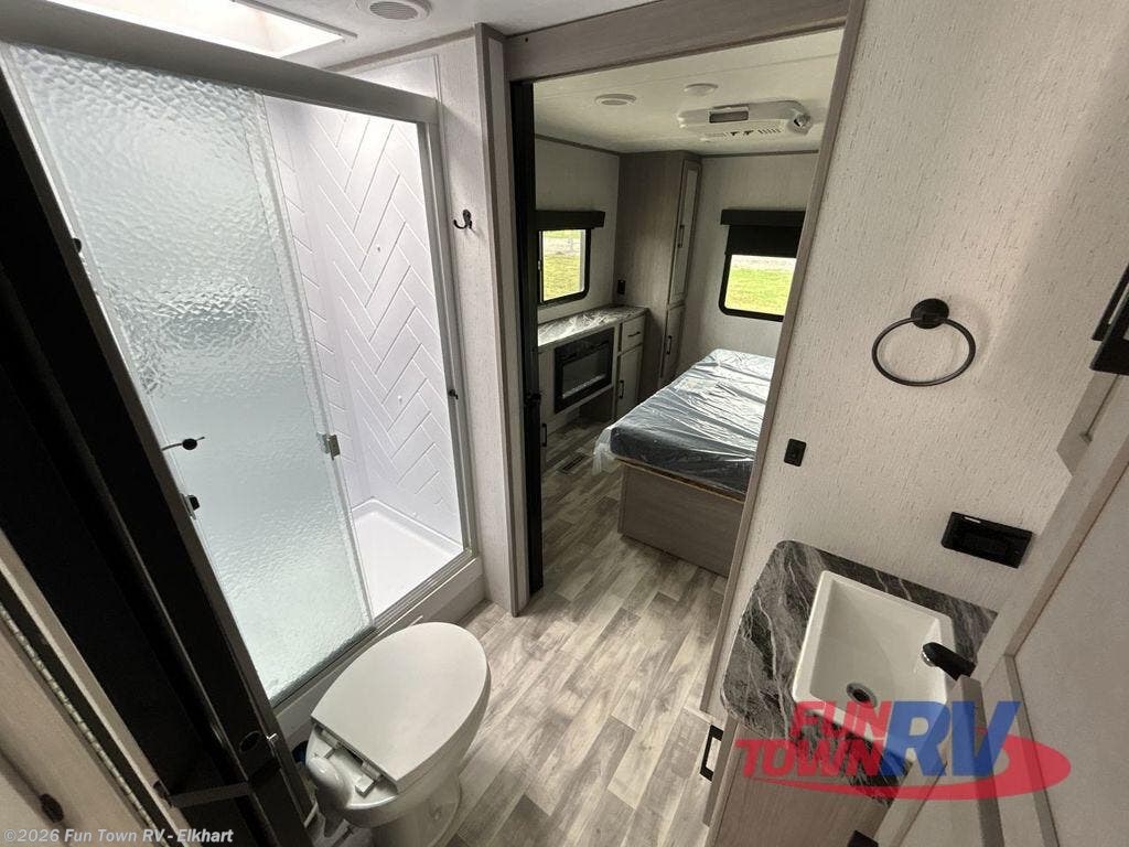 You will love every minute spent in this spacious travel trailer that includes dual slide outs! The walk through bath will create a rear master bedroom you are sure to love. You can sleep soundly on the king bed and relax in front of the bedroom fireplace. The chef of your group will have ample counter space in the kitchen to prep meals, plus there is a 10 cu. ft. refrigerator to store perishables. After dinner, get comfortable on the theater seats or play a game at the booth dinette. Or you may just want to relax outdoors under the 20' power awning with LED lights!