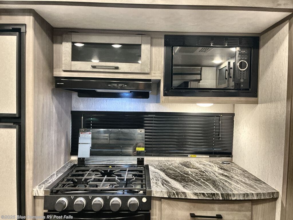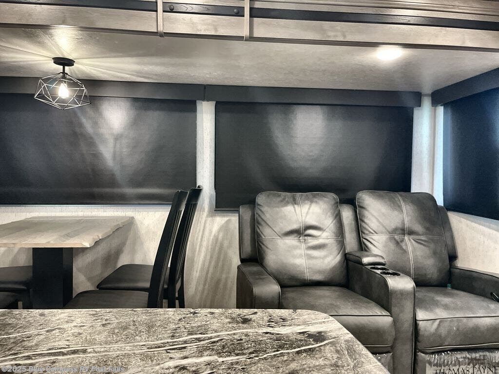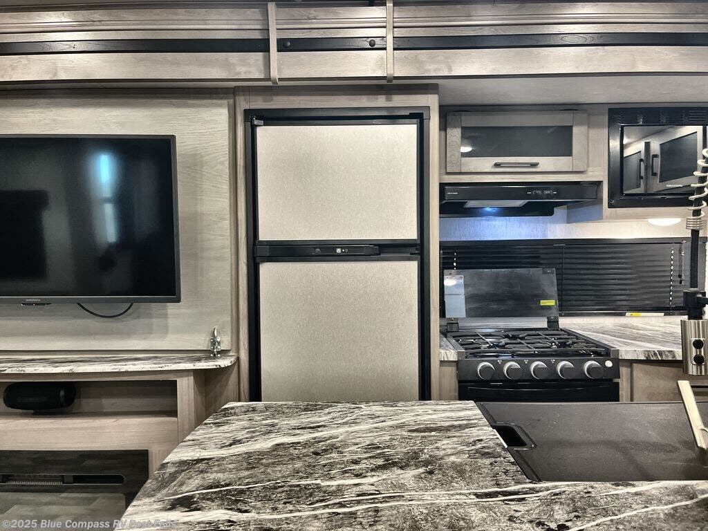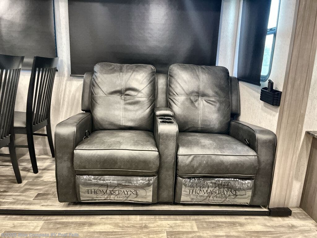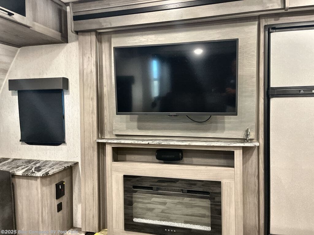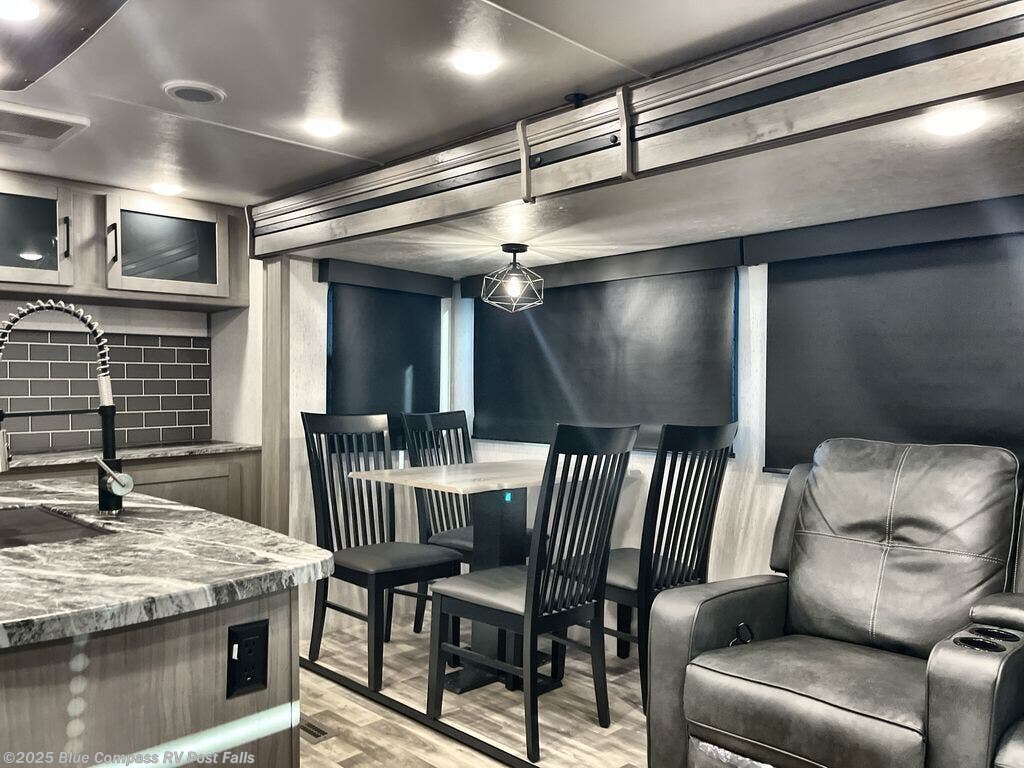Enjoy ultimate family vacations or trips with friends in this spacious travel trailer. The dual opposing slides in the front living area open up the whole unit for a more at-home feel, and you'll find plenty of seating spaces on the theater seats, booth dinette, and sofa. The chef of the family will appreciate the extra counter space provided by the kitchen island, plus there is an extra counter with cabinets above and below for dishes and food. There is an outside kitchen that will come in handy if you like to cook breakfast outdoors, and the power awning with LED lights will provide your crew with shade as they wait for the food to be done. You and your spouse will love retreating to the rear private bedroom for bed each night. Here, the slide out king bed will provide a great night's rest, plus you will have your own fireplace and storage to hang your clothes!