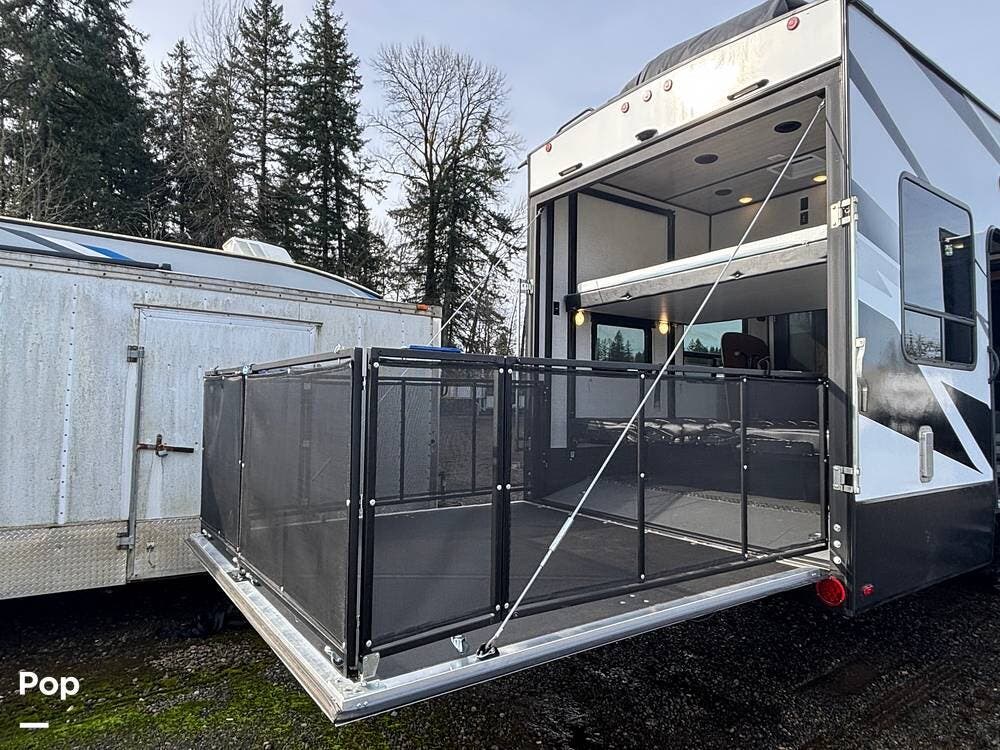 A 2022 Dutchmen Voltage Triton 3551 Toy Hauler in Good Condition w/ Washer and Dryer!