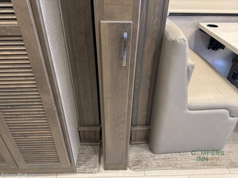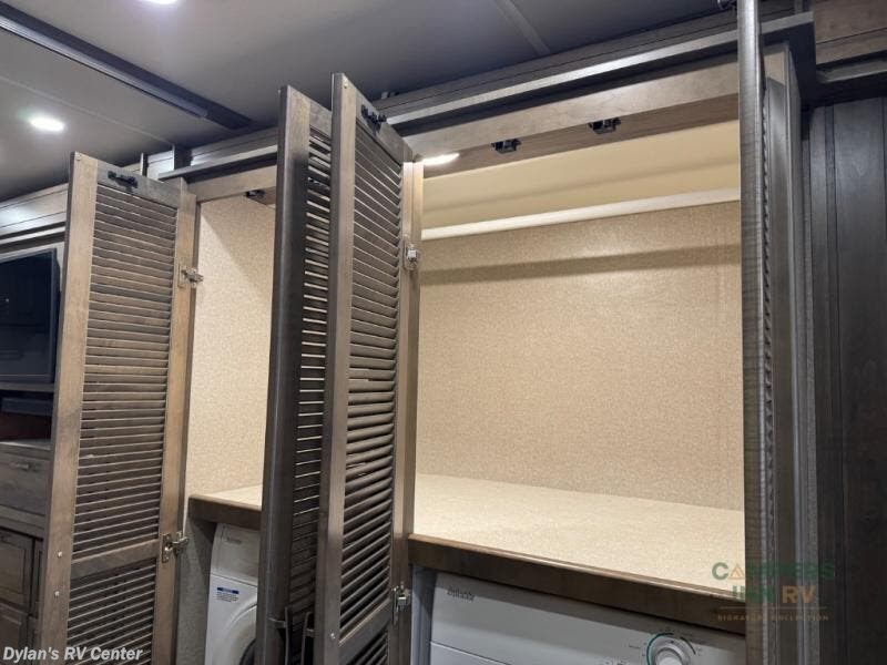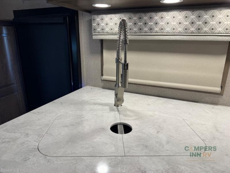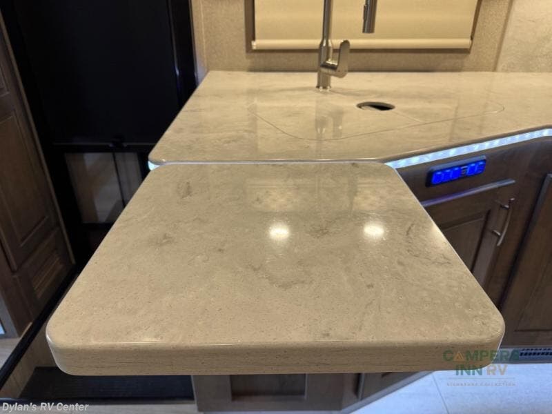 It's a clean decision with a bath and a half to take this motorhome on your next trip! The full rear bathroom has a radius shower to freshen up in, a closet to keep your towels close, and a dual sink vanity for two to get ready at once. It also creates a master suite with a king bed slide across from a dresser with a 32" TV and wardrobes on either side of it. Across from the half bathroom is a closet that is prepped to add an optional washer and dryer for clean clothes throughout your entire trip. You will have everything you need to prepare your best meals including a countertop extension. Enjoy your meals, play card games, and even transform into a sleeping space all with the Dream Dinette. The tri-fold sofa sleeper not only has seatbelts for traveling, but also can transform into a sleeping space too. You can also choose to add the optional bunk over cab for more sleeping space or switch out the sofa for the optional theaters seats!