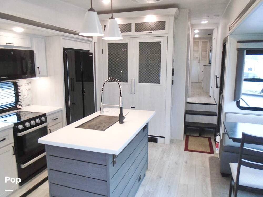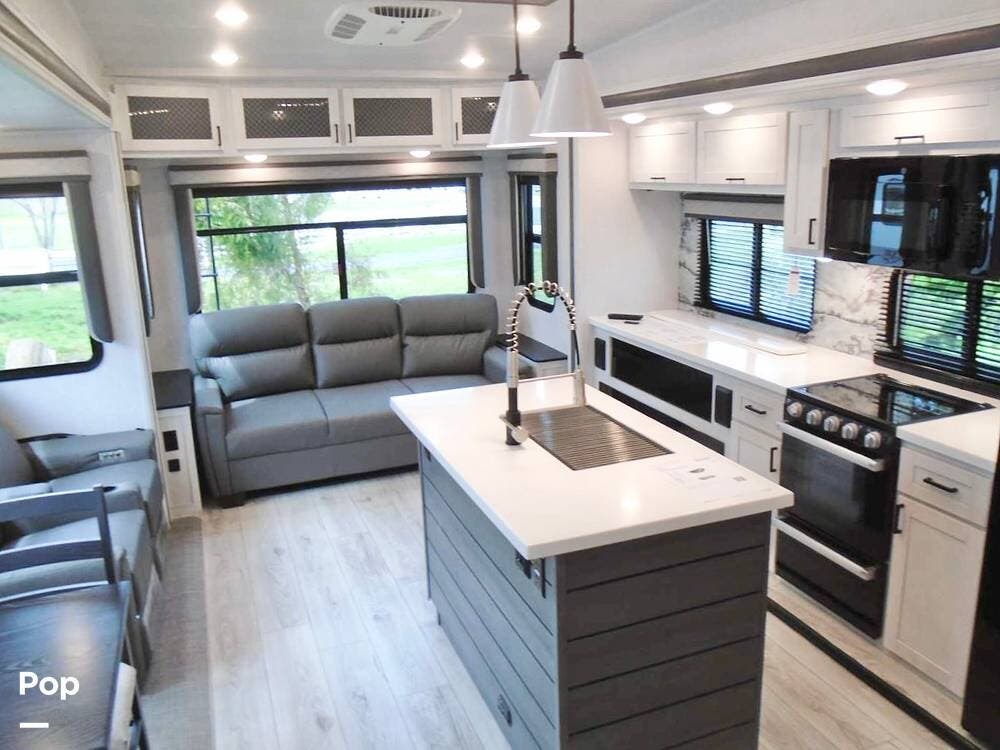 Designed with full-time living in mind, this high-end fifth wheel offers an expansive layout, residential finishes, and premium features throughout.