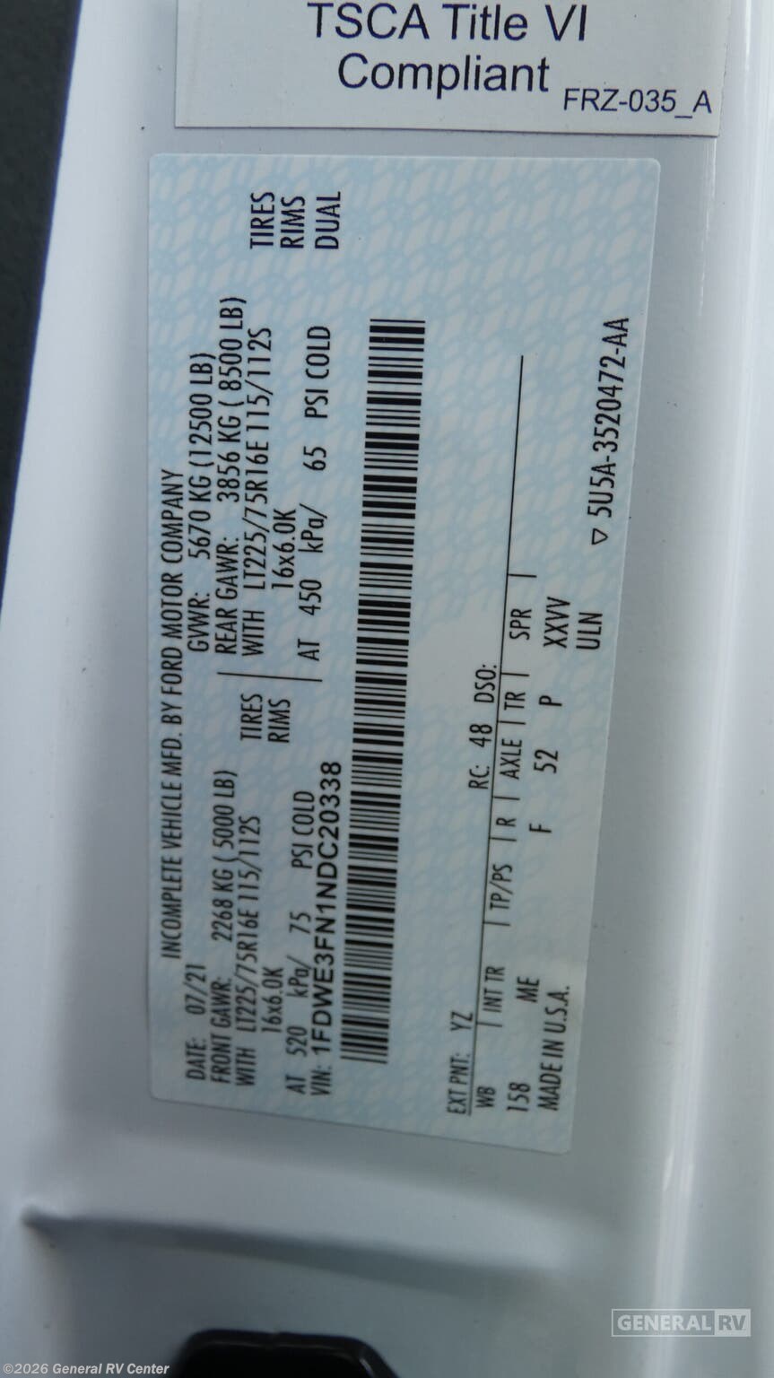 - VIN1FDWE3FN1NDC20338