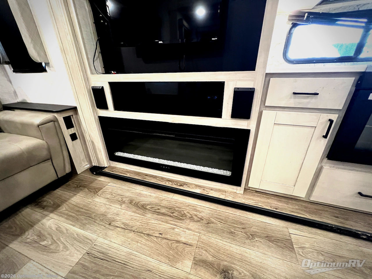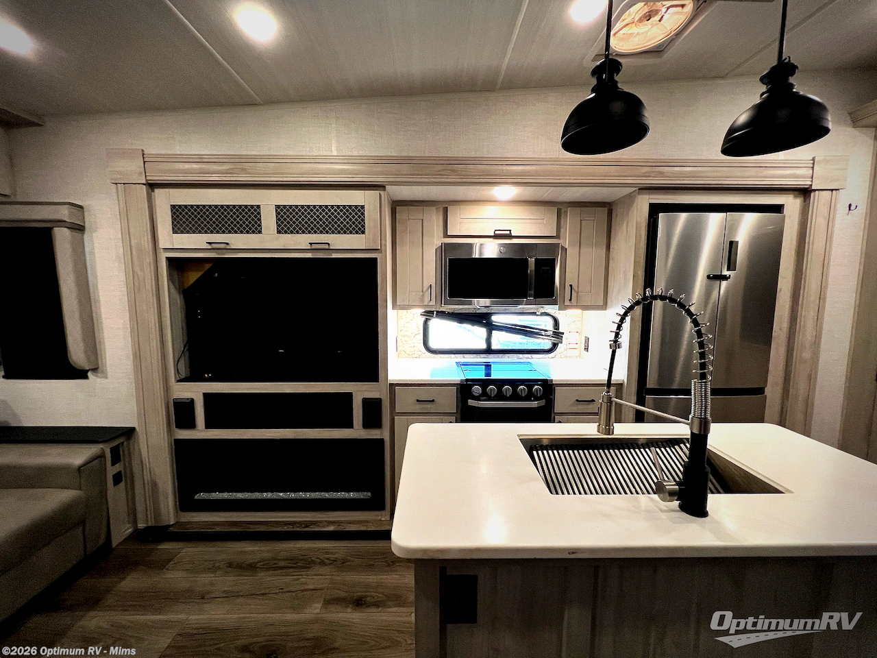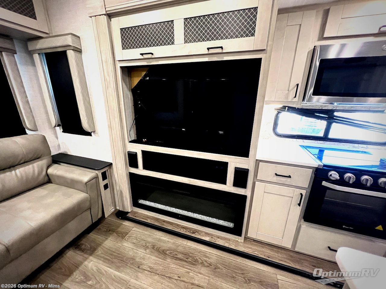 If you're ready to enjoy some luxury at an affordable price, choose this Tandara fifth wheel! The opposing slides will keep the interior feeling open and spacious so that you can enjoy some time in the theater seating. As you relax, you can watch the 50" LED TV across from you, and the fireplace below the TV will provide some extra ambiance. You'll enjoy your own private bedroom to sleep in each night, and the king-size bed is going to be ultra comfortable. There is even under-bed storage where you can keep some extra belongings. The four-burner range in the kitchen is going to be unbelievably helpful when you have a lot of food to prepare for breakfast in the morning.
