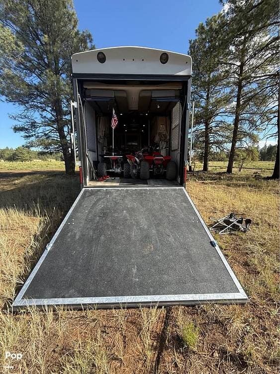 Fully loaded Loaded Huge toy garage 24 feet total and 18ft to cabinet 3 slide outs! 6 brand new tires and custom black and gold rims Gray and gold col