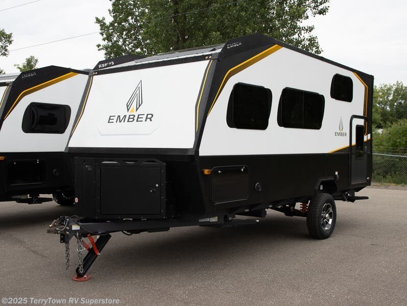 Each one of these Ember RV Overland Series travel trailers were built to meet the needs of today's most discerning RVers with layouts to fit couples and families! The CURT independent suspension comes with heavy-duty coil springs with dual shock absorbers on each wheel, and the heavy-duty off-road tube steel frame is sure to hold up through whatever adventure you throw its way. Laminated Azdel Onboard composite walls and rooftop prevent rotting or molding of the unit. Their chic interior design comes with Shaw flooring that will be easy to clean, European dual pane acrylic windows with integrated shades for added privacy, and an EmberLink smart RV control system to use at the touch of a finger. The Off-Grid Solar package lets you go further into the woods and the Safety First package ensures you and your unit will safely arrive to each destination. Come find the right one for you today!