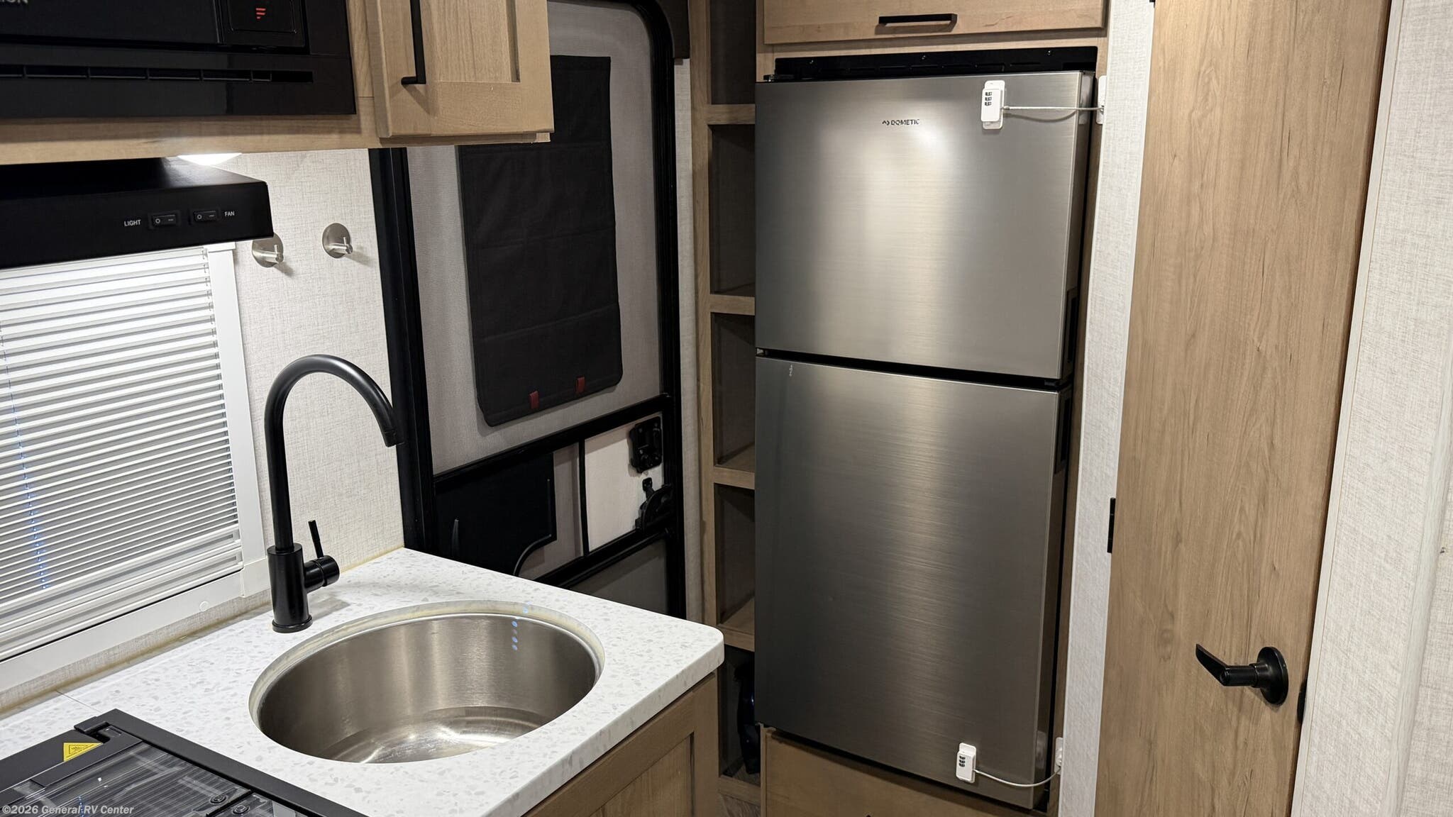 Discover the Ember RV Overland Series 171FB, a 2022 model that perfectly combines adventure with comfort. This compact yet spacious RV stretches 20 feet and is designed to accommodate up to four sleepers, featuring a cozy queen bed and a versatile jack-knife sofa. The interior layout is both functional and inviting, with a well-equipped kitchen that includes a two-burner cooktop and an 8 cu ft 12V refrigerator, ensuring you have everything you need for culinary adventures on the road. The 171FB is thoughtfully designed with a focus on relaxation and convenience. Enjoy the luxury of a 32-inch radius shower in the bathroom, and unwind under the 12-foot electric awning with dimmable LED lights, perfect for evening gatherings. The Stargazer skylight above the queen bed offers a beautiful view of the night sky, adding a touch of magic to your camping experience. With ample storage, a 12V LED HDTV, and an outside kitchen, this RV is ready to elevate your travels. For more details, visit your nearest General RV dealership.