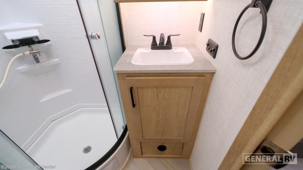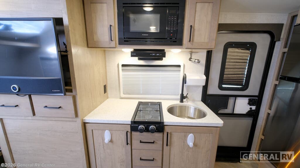 Discover the Ember RV Overland Series 171FB, a 2022 model that perfectly combines adventure with comfort. This compact yet spacious RV stretches 20 feet and is designed to accommodate up to four sleepers, featuring a cozy queen bed and a versatile jack-knife sofa. The interior layout is both functional and inviting, with a well-equipped kitchen that includes a two-burner cooktop and an 8 cu ft 12V refrigerator, ensuring you have everything you need for culinary adventures on the road. The 171FB is thoughtfully designed with a focus on relaxation and convenience. Enjoy the luxury of a 32-inch radius shower in the bathroom, and unwind under the 12-foot electric awning with dimmable LED lights, perfect for evening gatherings. The Stargazer skylight above the queen bed offers a beautiful view of the night sky, adding a touch of magic to your camping experience. With ample storage, a 12V LED HDTV, and an outside kitchen option, this RV is ready to elevate your travels. For more details, visit your nearest General RV dealership.