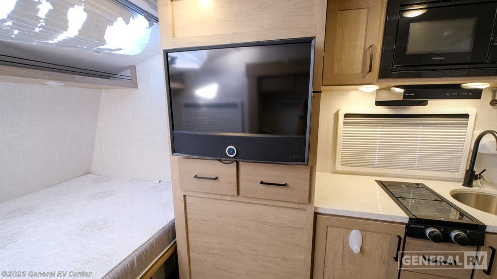 Discover the Ember RV Overland Series 171FB, a 2022 model that perfectly combines adventure with comfort. This compact yet spacious RV stretches 20 feet and is designed to accommodate up to four sleepers, featuring a cozy queen bed and a versatile jack-knife sofa. The interior layout is both functional and inviting, with a well-equipped kitchen that includes a two-burner cooktop and an 8 cu ft 12V refrigerator, ensuring you have everything you need for culinary adventures on the road. The 171FB is thoughtfully designed with a focus on relaxation and convenience. Enjoy the luxury of a 32-inch radius shower in the bathroom, and unwind under the 12-foot electric awning with dimmable LED lights, perfect for evening gatherings. The Stargazer skylight above the queen bed offers a beautiful view of the night sky, adding a touch of magic to your camping experience. With ample storage, a 12V LED HDTV, and an outside kitchen option, this RV is ready to elevate your travels. For more details, visit your nearest General RV dealership.