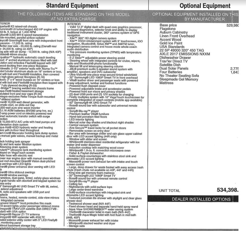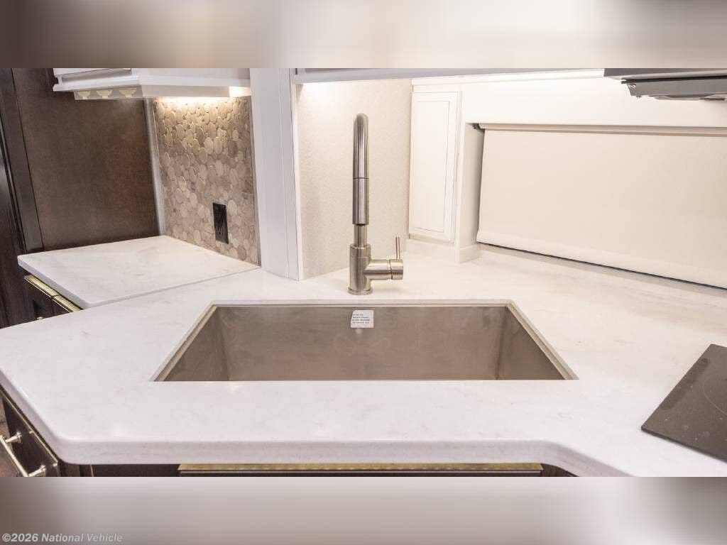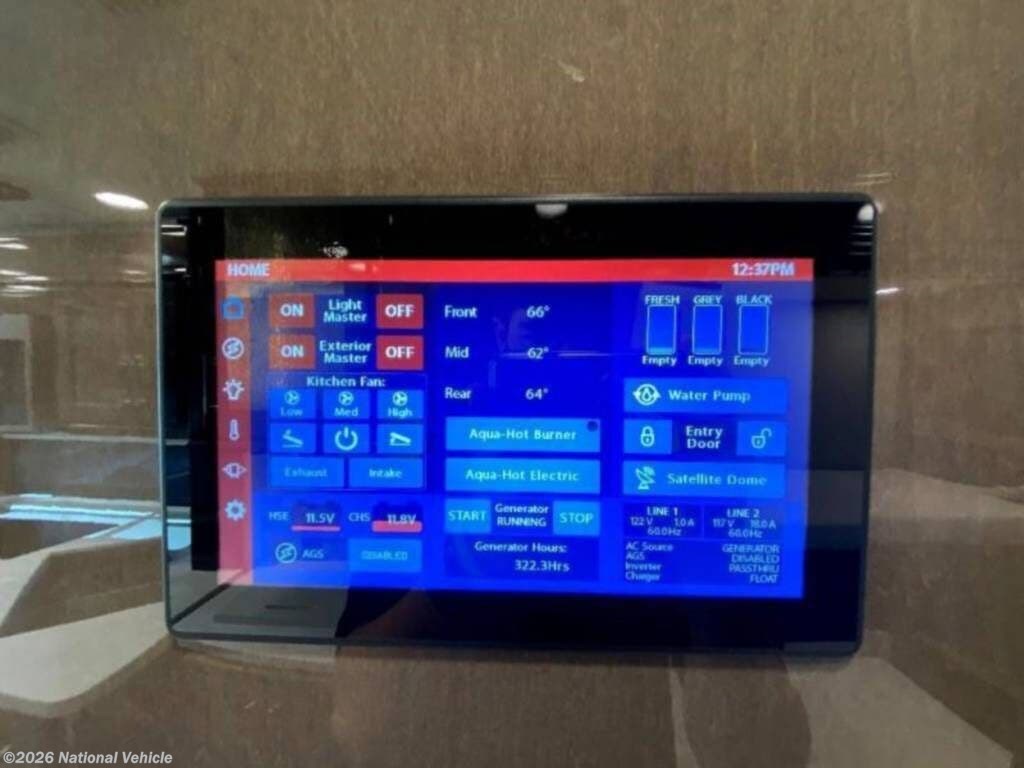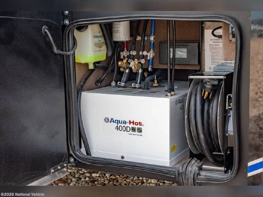 Some of the standard features that really set the Entegra Aspire apart include the Valid 12.3" high brightness digital dash with quad core graphics processor and on-board diagnostics, Xit 360 HD digital camera system, Aqua-Hot 400D hydronic water and heating system with in-floor heat throughout, power tilt & telescoping steering wheel, View Showermiser with ?GREEN? technology saves fresh water by recirculating until water is warm. Fully heated compartments underneath for full year use without pipes freezing. Premium Villa furniture throughout coach, day and night shades throughout, Solid-surface countertops with stainless steel sink and dimmable LED accent lighting, Girard window awnings & slide-out toppers, residential refrigerator with water and ice in the door, Induction cook top with matching wood cover, LED marker and turn lights, DEF fill door, power rear engine door with push button control, Firefly multiplex system with 10? VegaTouch touchscreen for complete integration of coach controls, a 10,000 Onan diesel generator, (3) 15K BTU roof A/C units with heat pumps, heated floors, 50 amp power cord reel, power water hose reel, GPS navigation system, frameless dual pane & tinted windows, automatic hydraulic leveling system, central vacuum, LED TV in bedroom, automatic generator start, stack washer/dryer, LED TV in cab and much more.