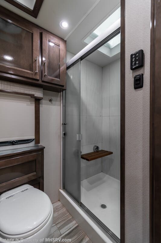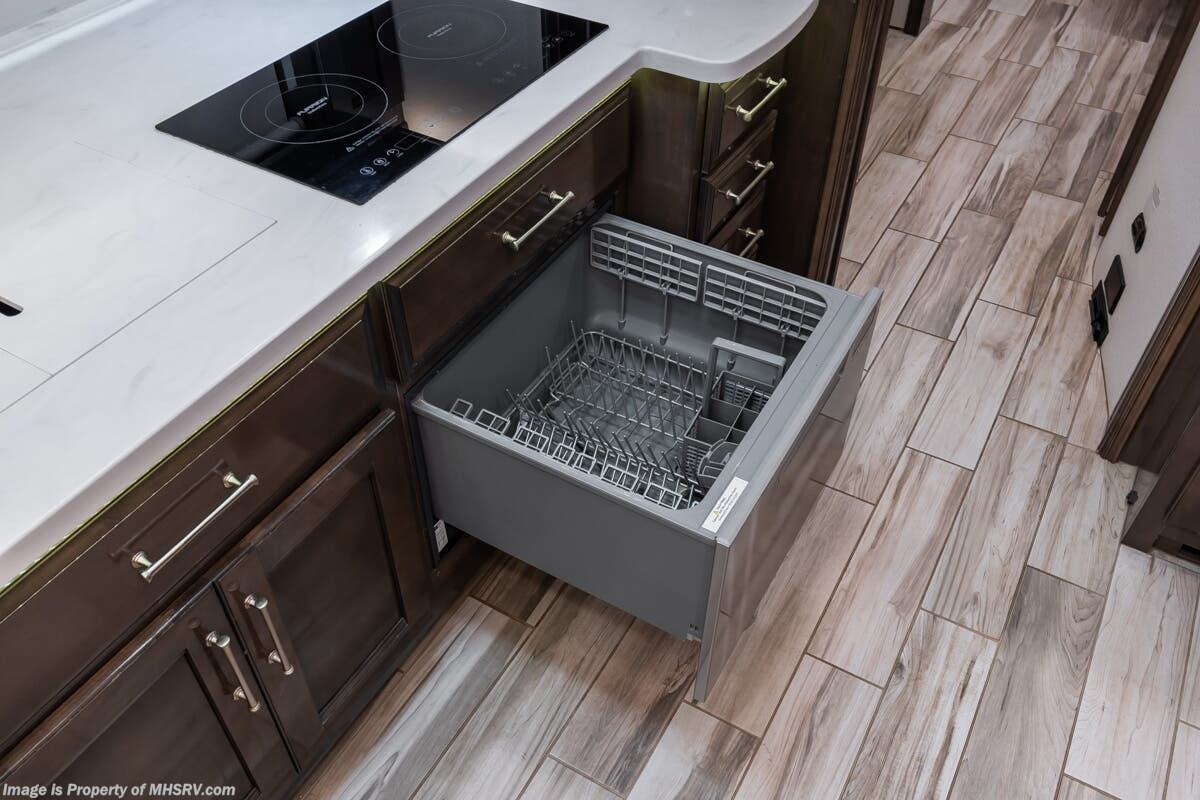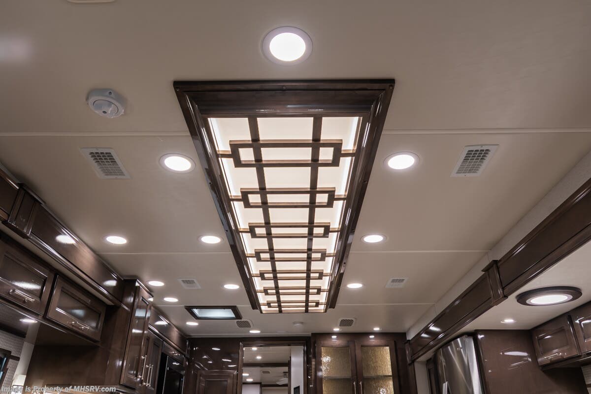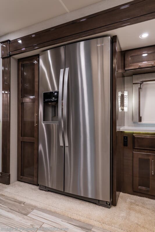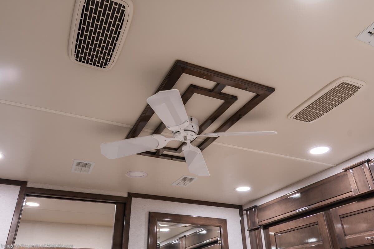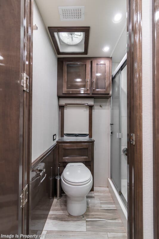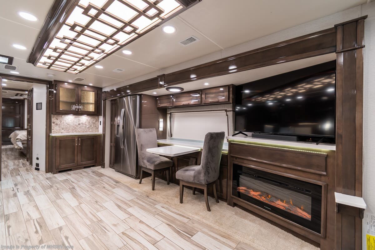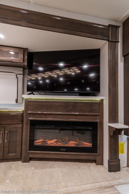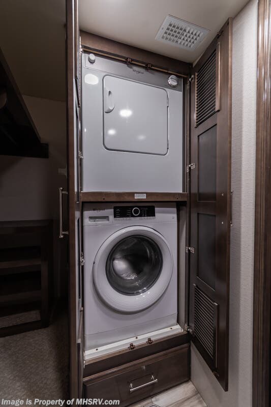 More About This RV This RV features aluminum wheels, equalizer hydraulic leveling, full body paint, 3 A/C's, diesel generator, Cummins 450HP diesel engine, spartan chassis, smart wheel, secondary exhaust brake, tire monitoring, power pedals, power visor, GPS, keyless entry, power door locks, cruise control, aqua-hot, patio awning, door awning, window awning, cargo tray, pass-through storage, LED running lights, docking lights, black tank flush, water filtration system, power water hose reel, power electrical reel, exterior shower, exterior TV, solar, inverter, air ride, ceramic tile, leather seating, stackable washer/dryer, central vacuum, heated floors, fireplace, multi-plex control panel, dishwasher, convection microwave, residential refrigerator with ice maker, solid surface counter, theater seats, and much more