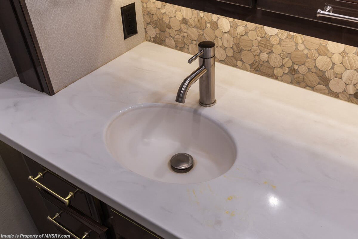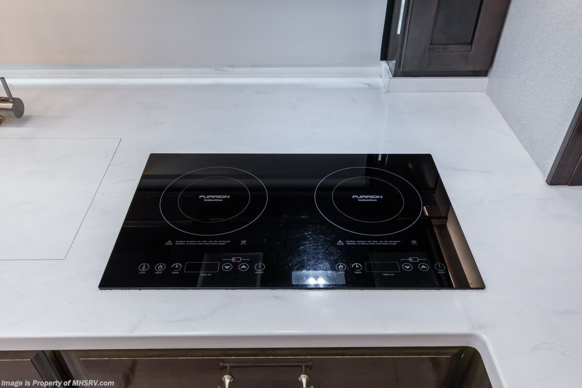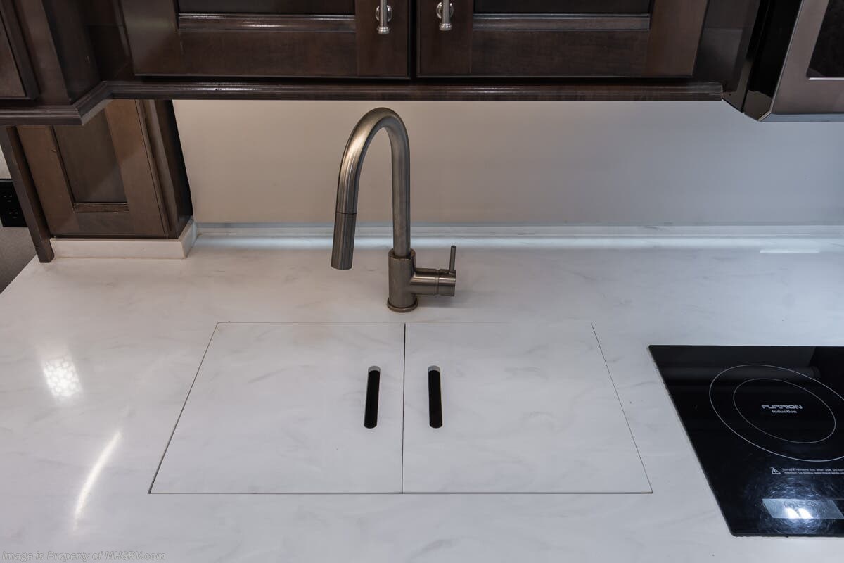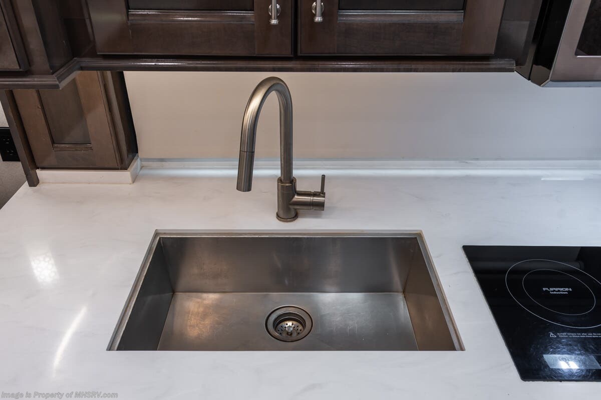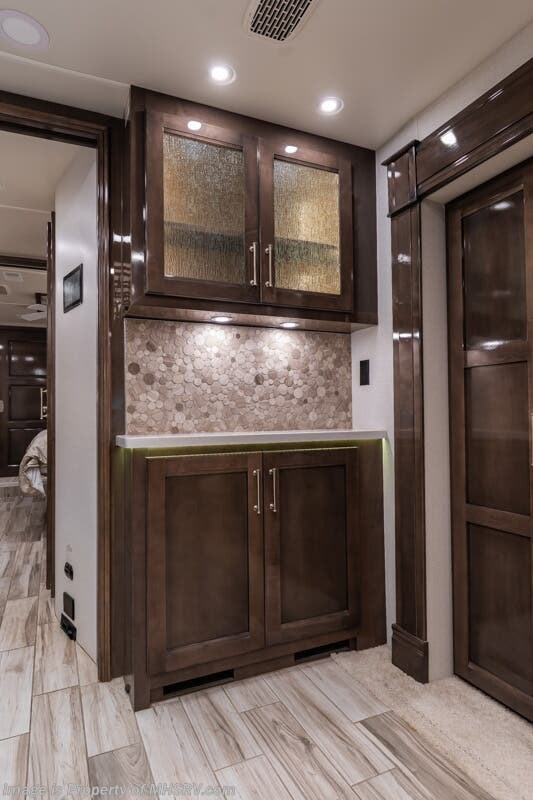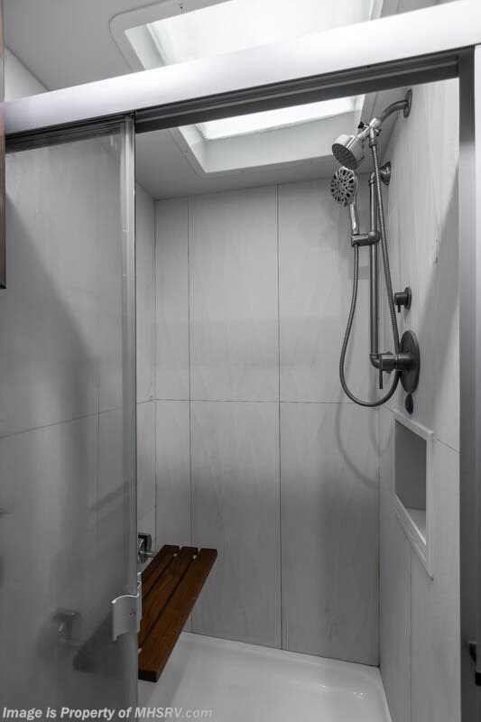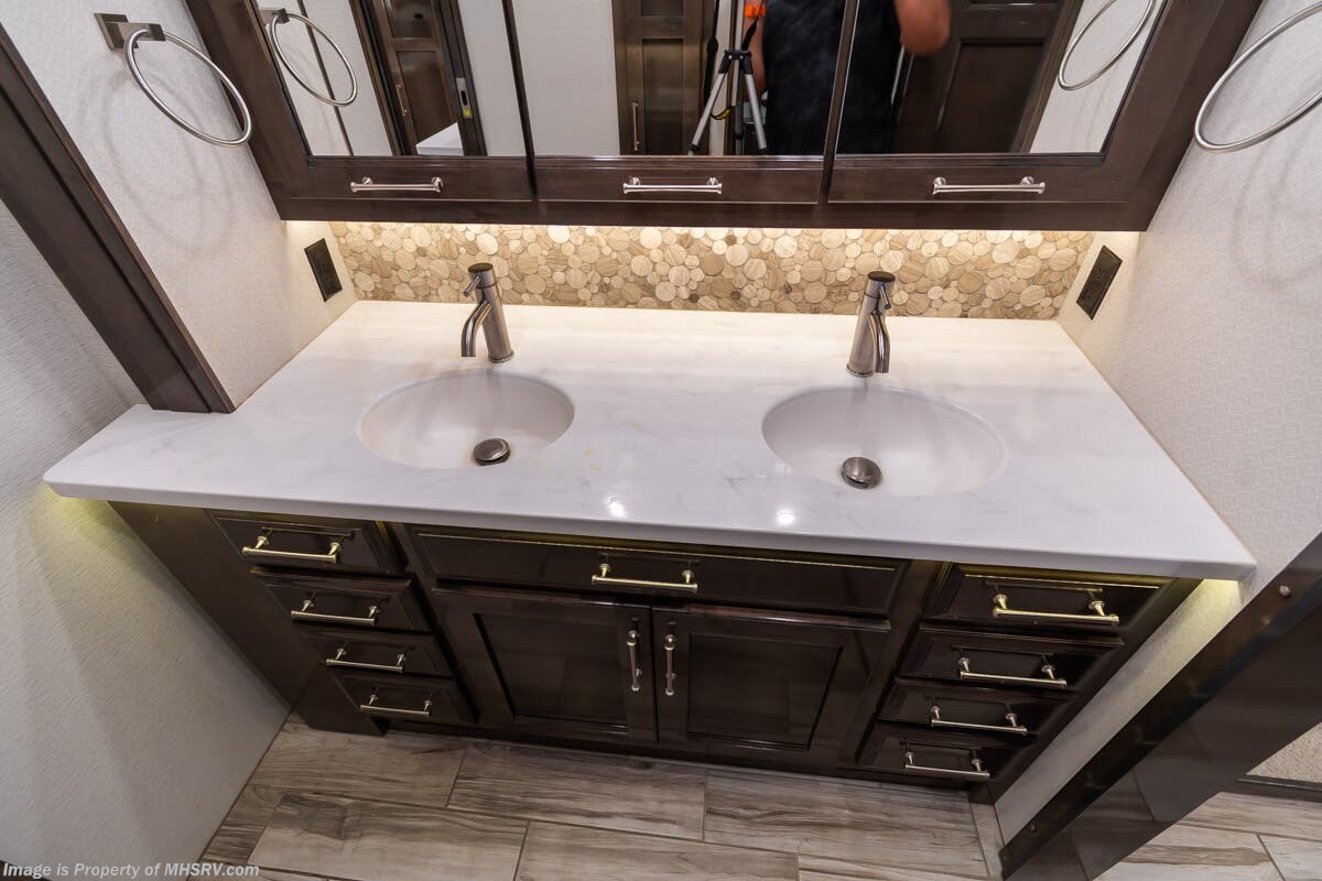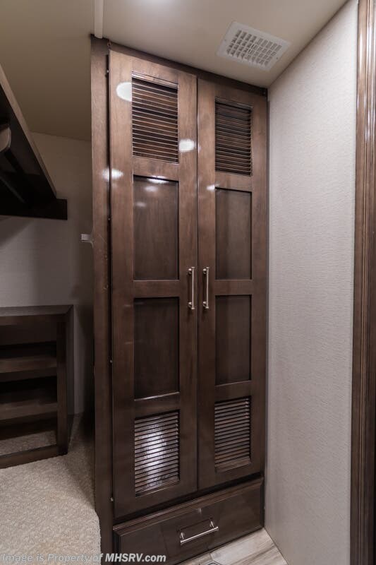 More About This RV This RV features aluminum wheels, equalizer hydraulic leveling, full body paint, 3 A/C's, diesel generator, Cummins 450HP diesel engine, spartan chassis, smart wheel, secondary exhaust brake, tire monitoring, power pedals, power visor, GPS, keyless entry, power door locks, cruise control, aqua-hot, patio awning, door awning, window awning, cargo tray, pass-through storage, LED running lights, docking lights, black tank flush, water filtration system, power water hose reel, power electrical reel, exterior shower, exterior TV, solar, inverter, air ride, ceramic tile, leather seating, stackable washer/dryer, central vacuum, heated floors, fireplace, multi-plex control panel, dishwasher, convection microwave, residential refrigerator with ice maker, solid surface counter, theater seats, and much more