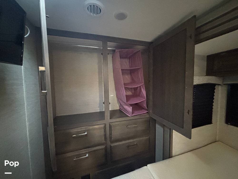 Interior and exterior storage areas are thoughtfully placed, allowing room for gear, travel essentials, and outdoor equipment. Setup at camp is straightforward, and the manageable size of the coach makes ownership less intimidating for both newer RVers and experienced travelers looking to downsize.