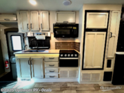 With any Odyssey Class C gas motorhome by Entegra Coach, the driver will appreciate the power from the 350 HP engine, the towing capacity from the 7,500 lb. hitch, the Tire Pressure Monitoring system, the navigation from the Sony infotainment center with Apple CarPlay and Android Auto, plus the backup and side-view cameras when parking and driving down the highway. The kitchen offers full amenities including a recessed stainless steel sink with a cutting board sink cover, LED-lite pressed countertops, a decorative backsplash, and a pop-up charging station with 110 outlet and USB plugs to keep your smart phones charged. Get ready for luxury in a Class C, choose your favorite today!