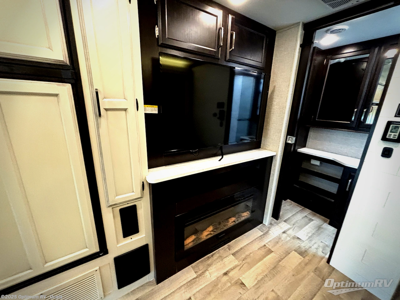 Enjoy a whole lot of comfort, fun and versatility in this coach from the queen Murphy bed and sofa combination allowing you to create a living area and a bedroom when you want, having a fireplace and an LED HD Smart Fire TV to watch inside, to the outside kitchen, exterior TV and 19' electric awning providing you an outdoor living space to enjoy nature and its beauty. The inside also provides a rear full bathroom including a space saving sliding door, linen storage, counter space for toiletries and a shower. You can dine at the U-shaped dinette or while sitting on the swivel captains chairs, and the cab-over bunk will be a perfect place for two to stay the night.
