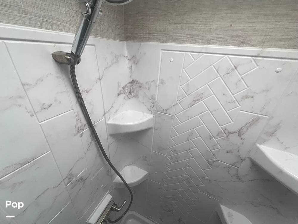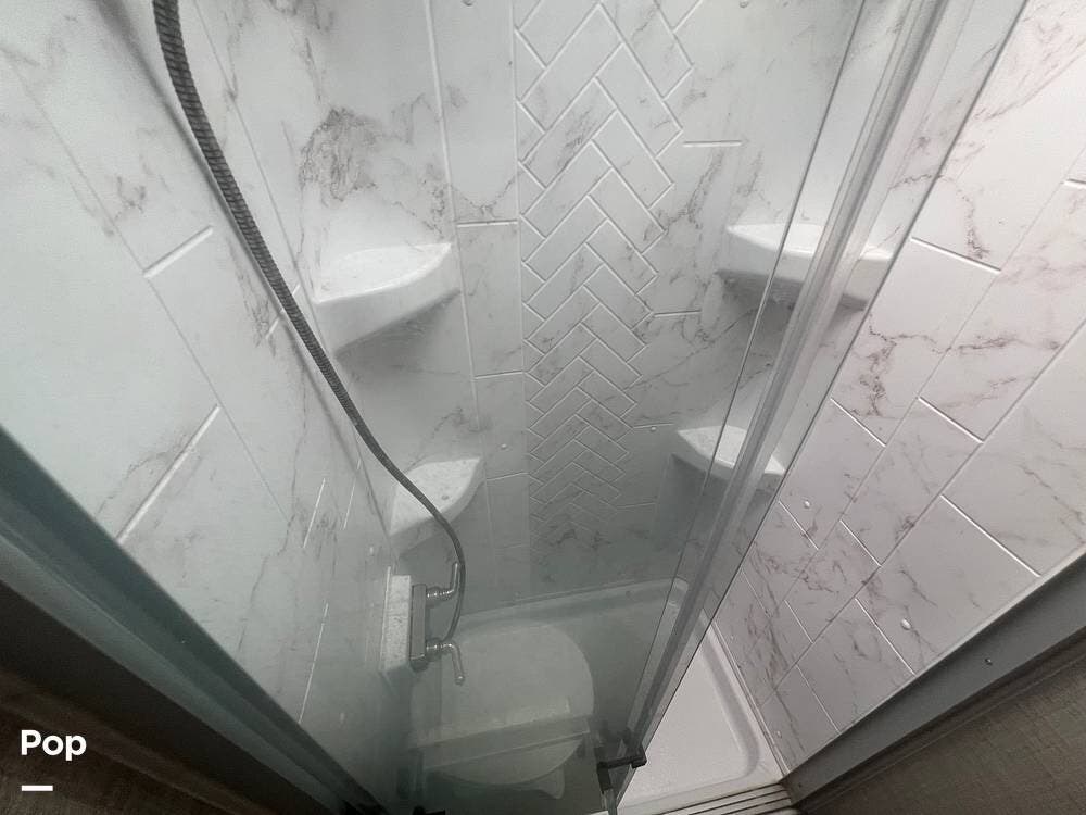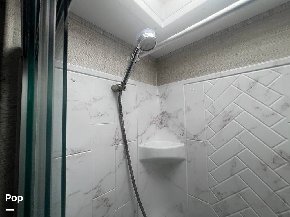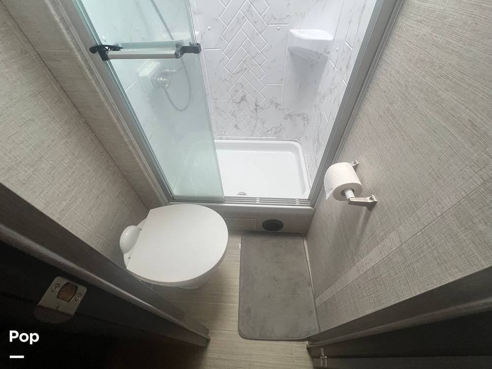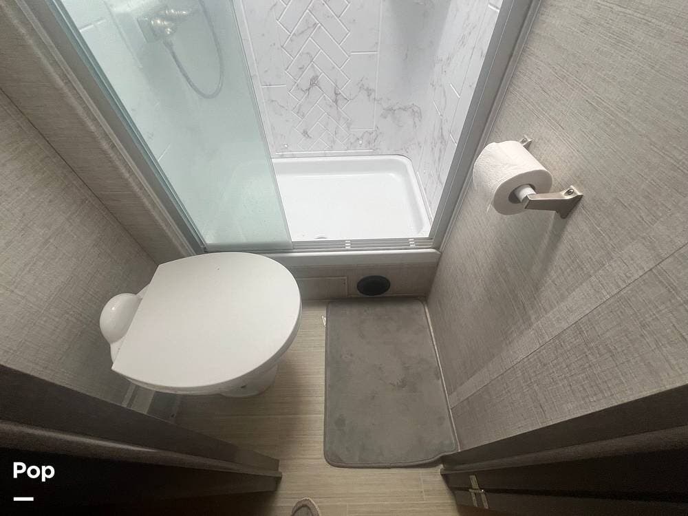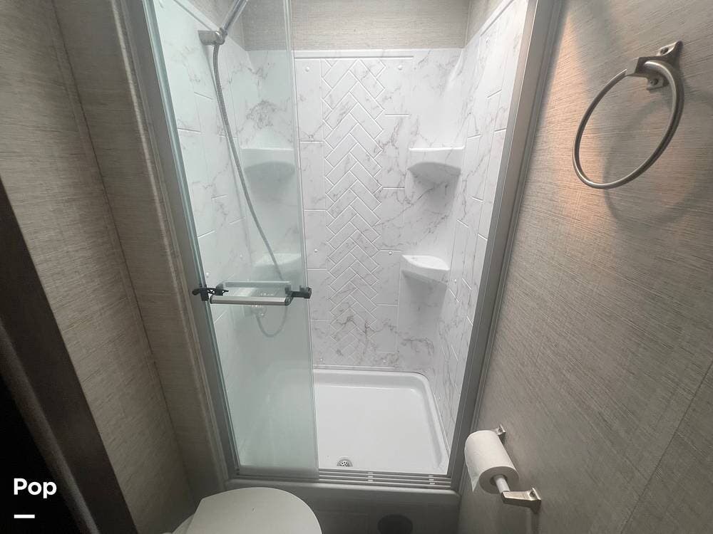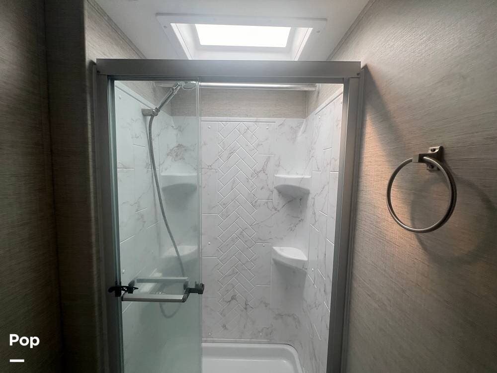 The 30Z model includes a queen-sized bed in the rear bedroom, ample storage options, including overhead cabinets and wardrobe space, and a full bathroom with a walk-in shower to ensure comfort on the road.