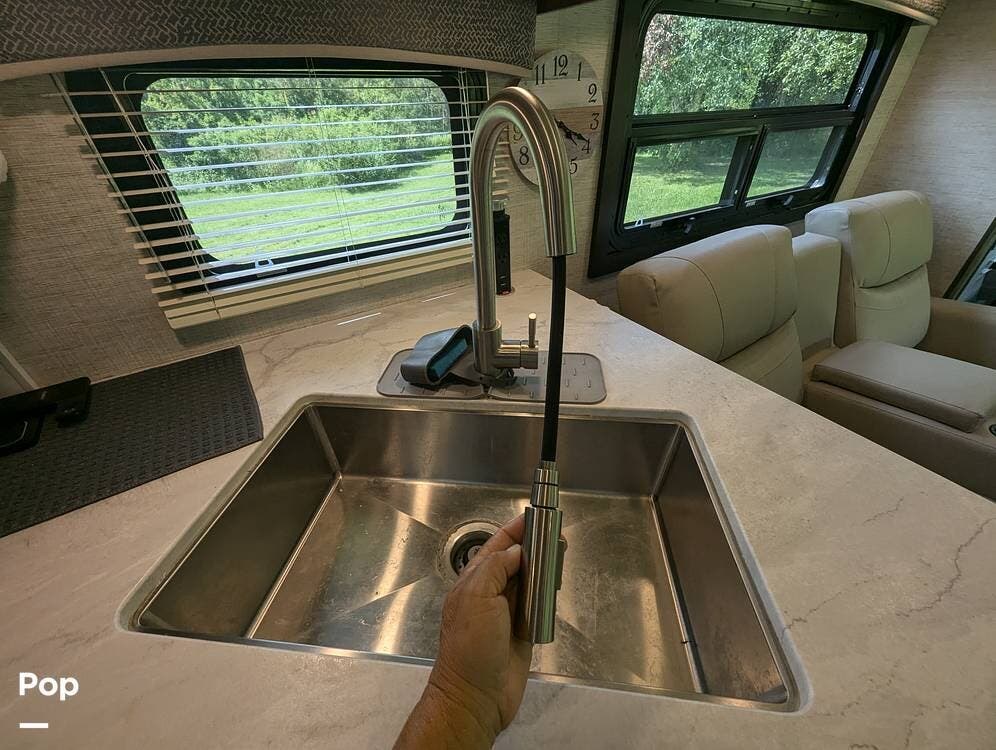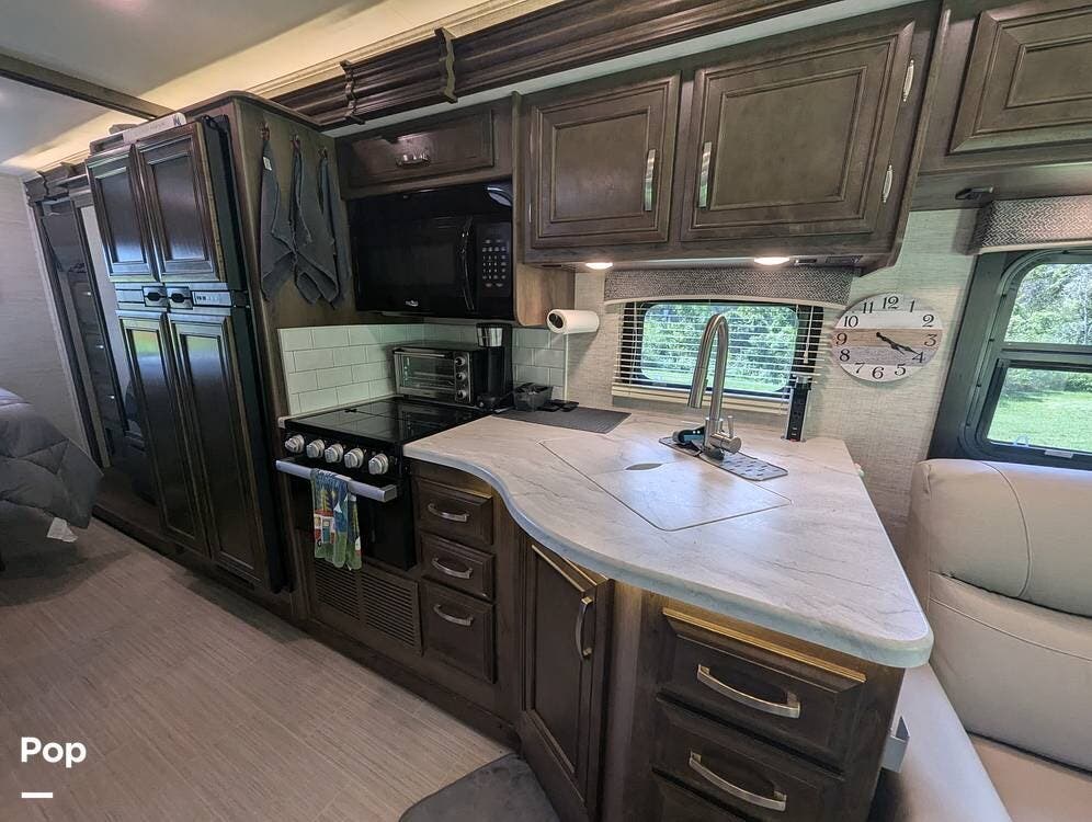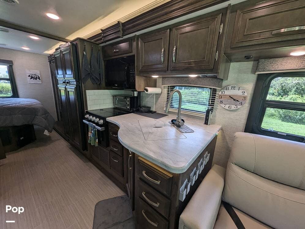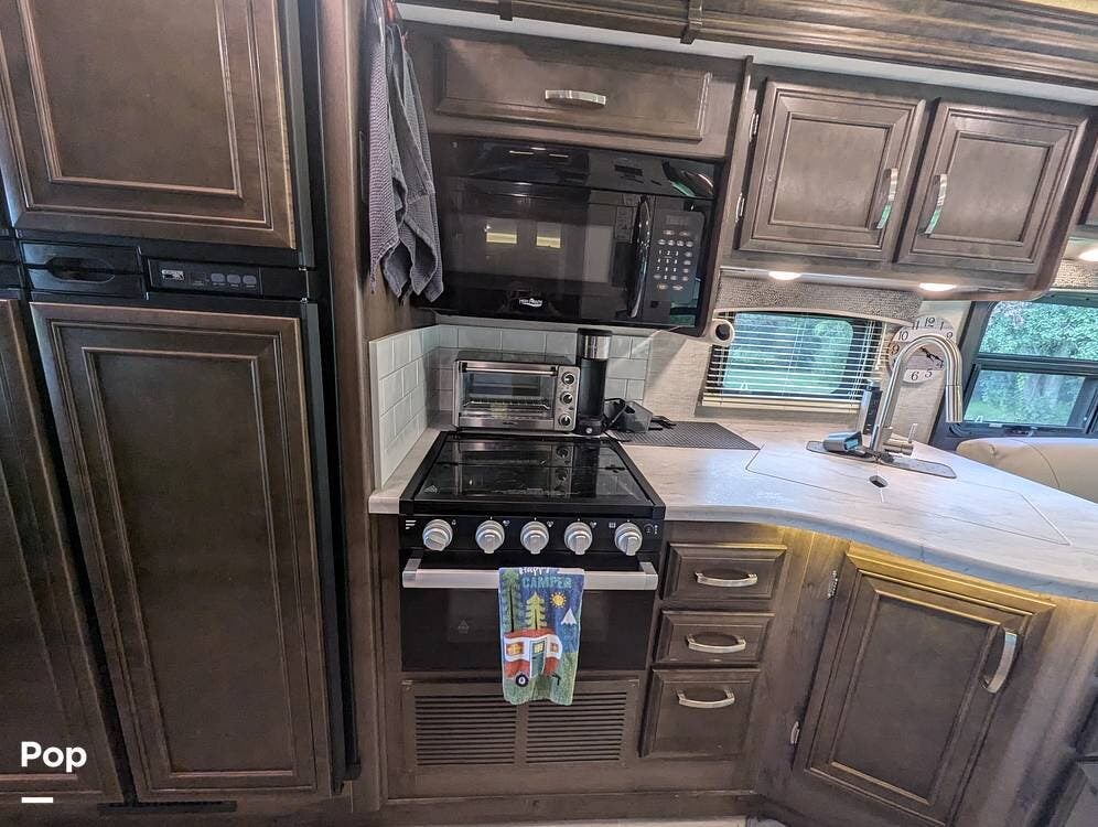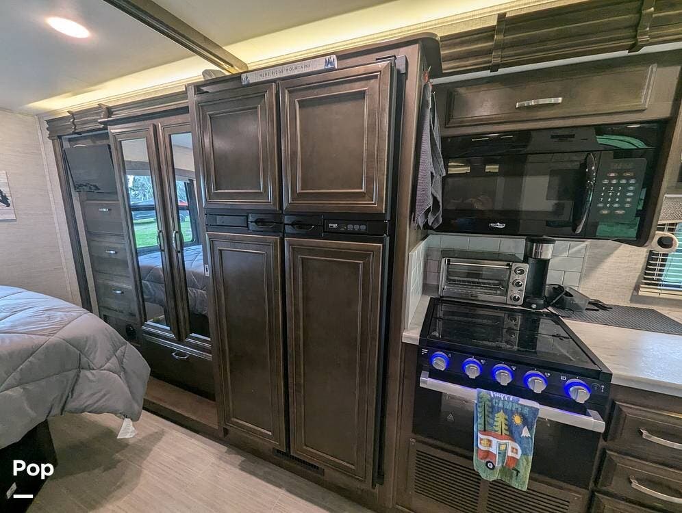 This Entegra has an excellent floor plan! The full-side slide opens this coach for comfortable living. The galley is well-appointed for entertaining and preparing meals. The sink is large, and there is a 4-door refrigerator!
