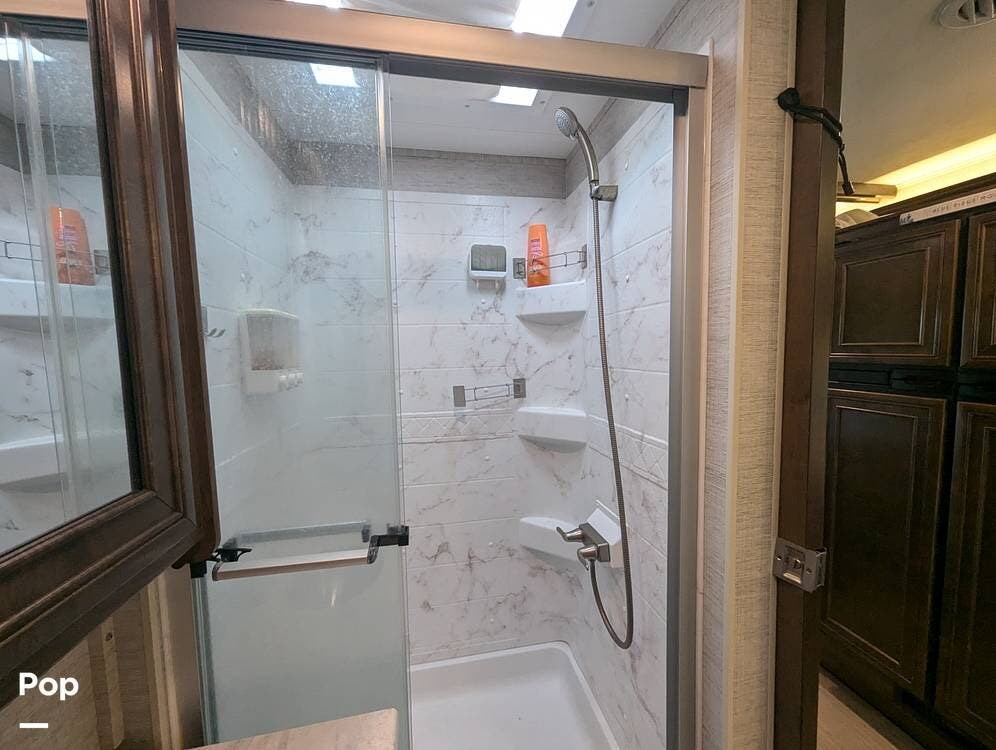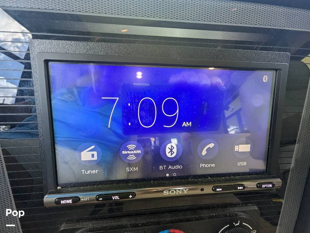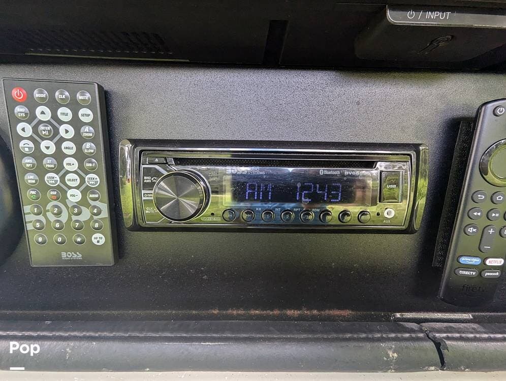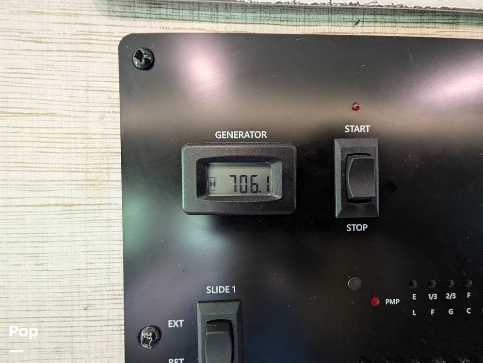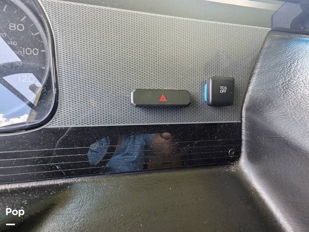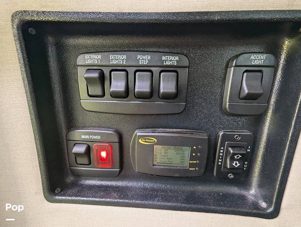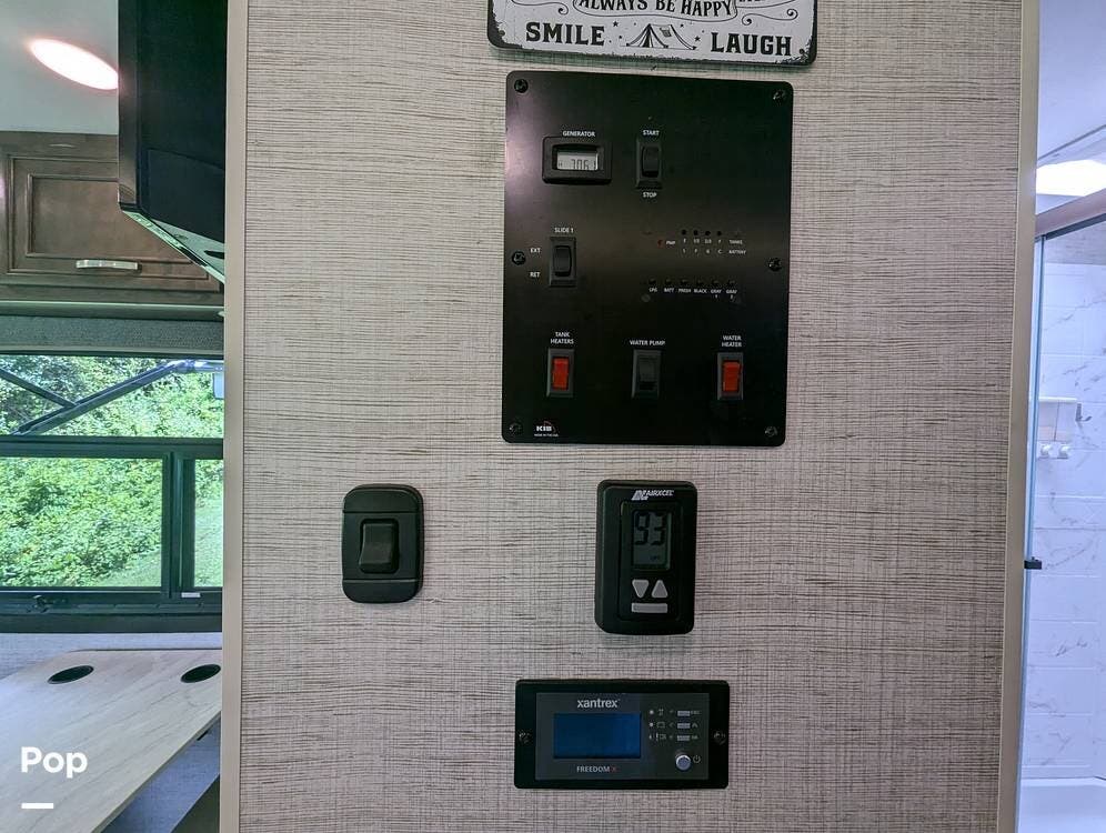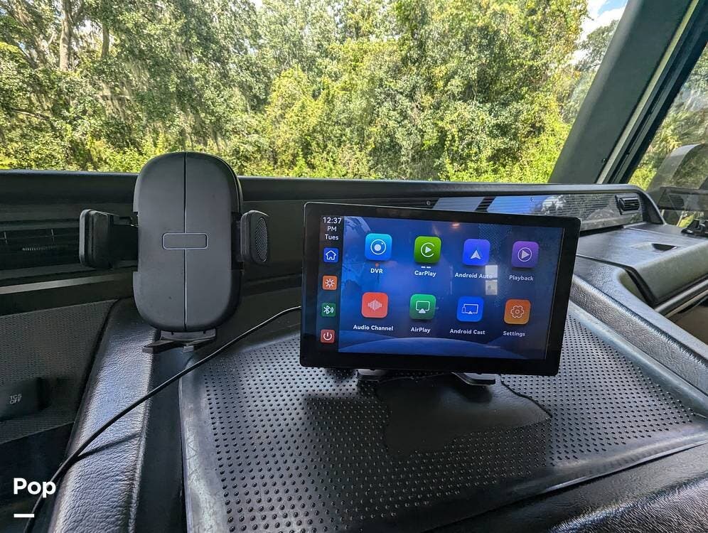 A factory solar panel is installed on the roof for added power. The panoramic windshield has an electric shade for privacy and rear and side cameras for driving.