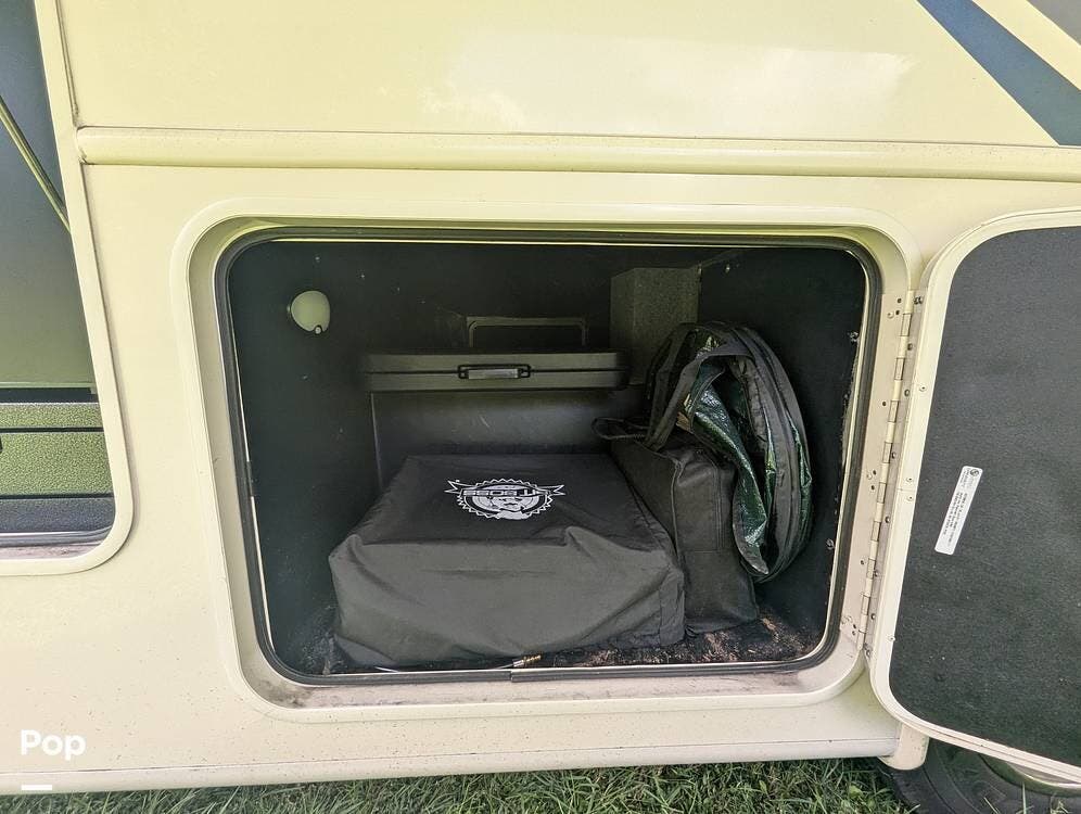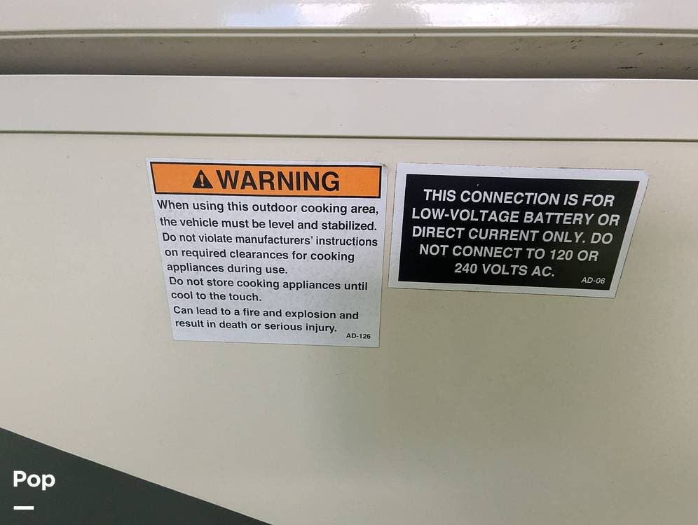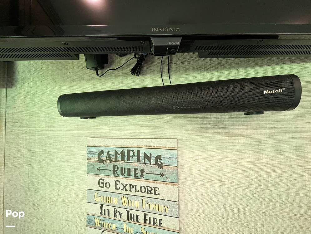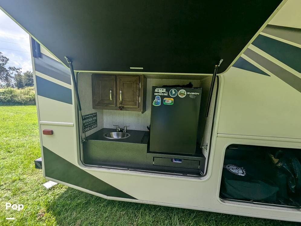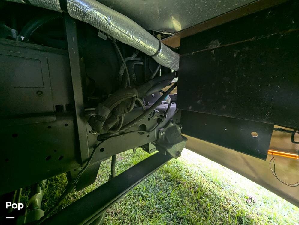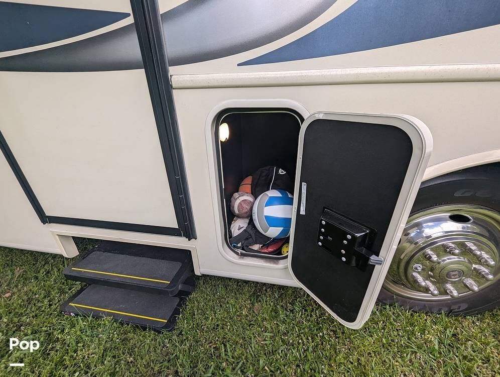 Relax outside with the oversized awning, outdoor TV, stereo, and an outdoor kitchen. The basements are passthrough for added space.