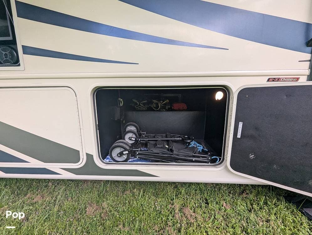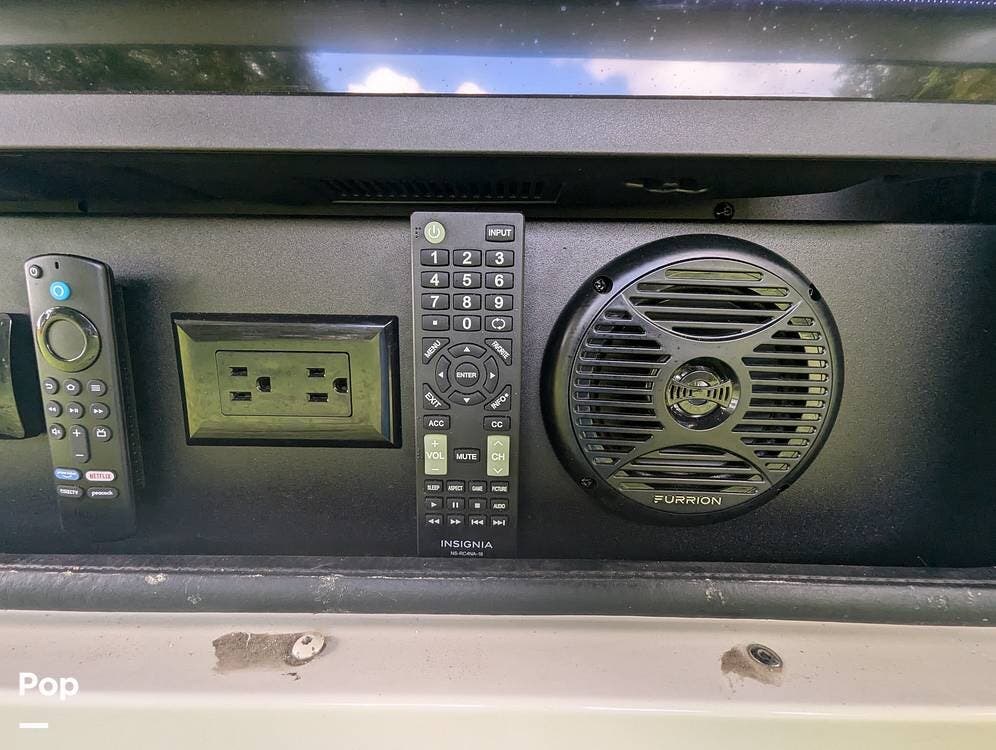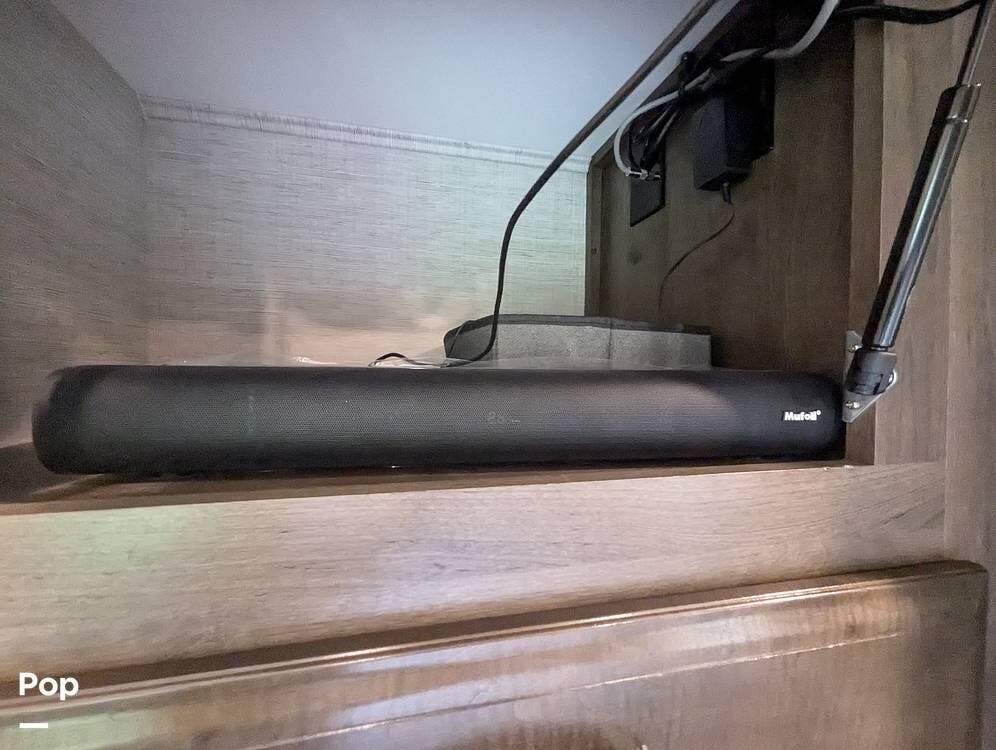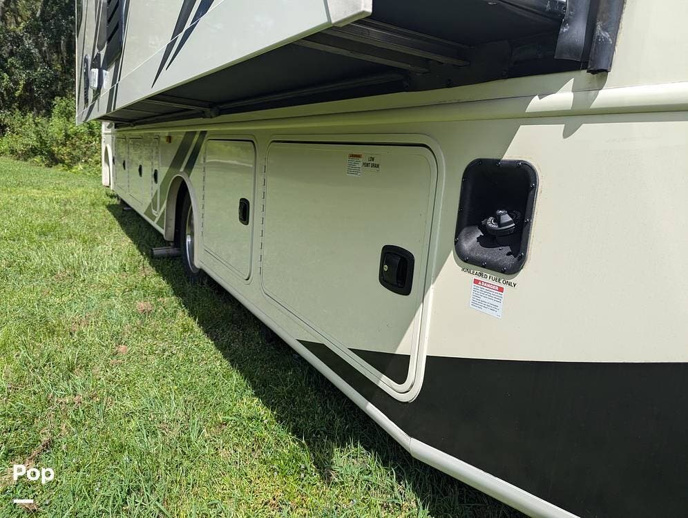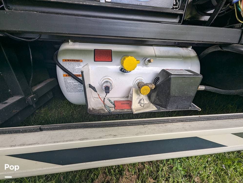 Relax outside with the oversized awning, outdoor TV, stereo, and an outdoor kitchen. The basements are passthrough for added space.