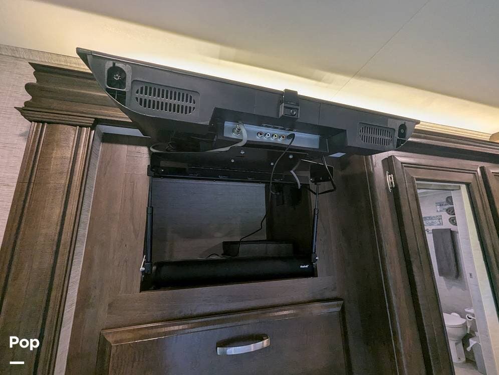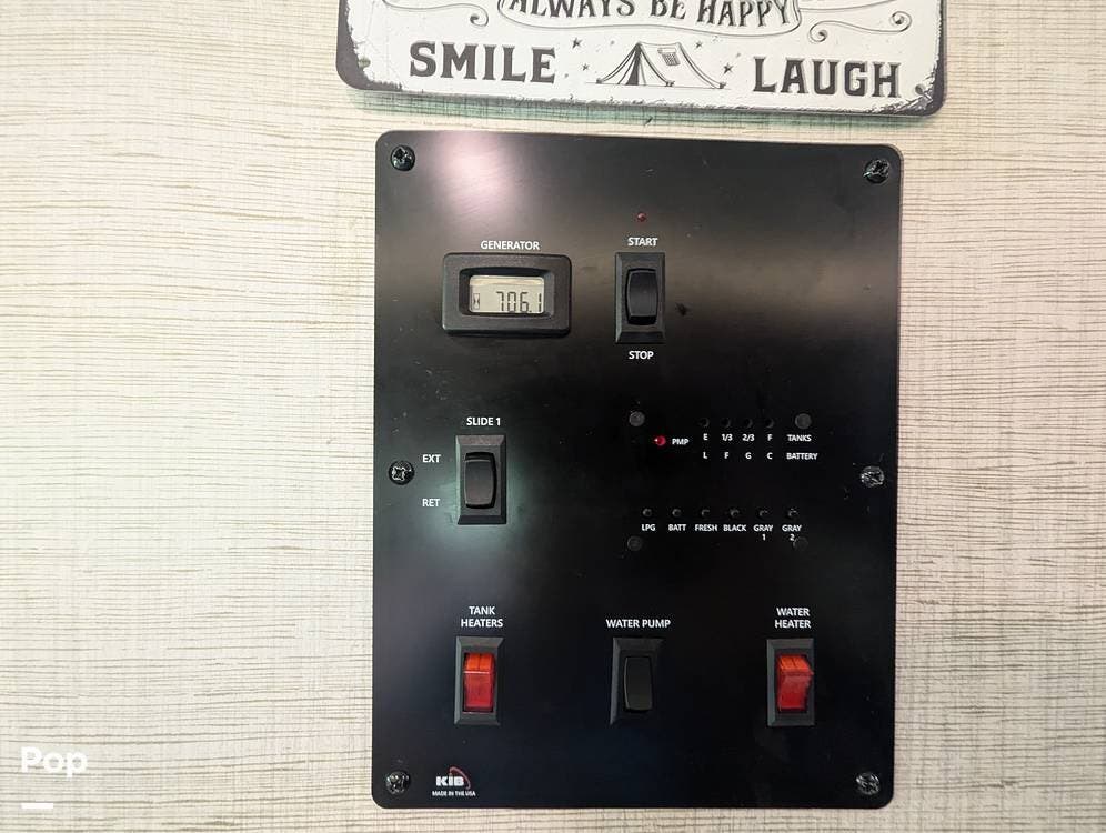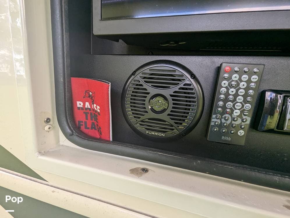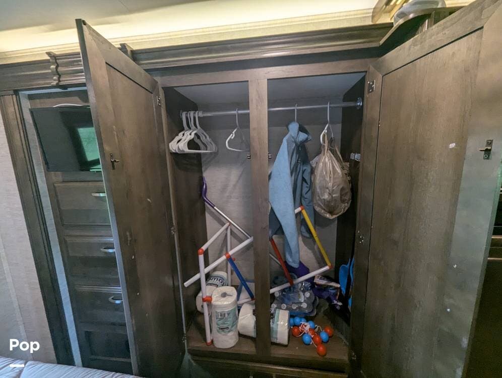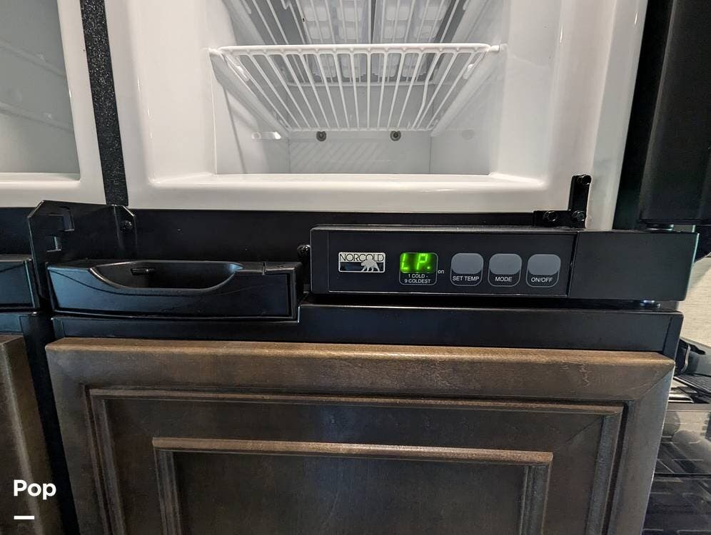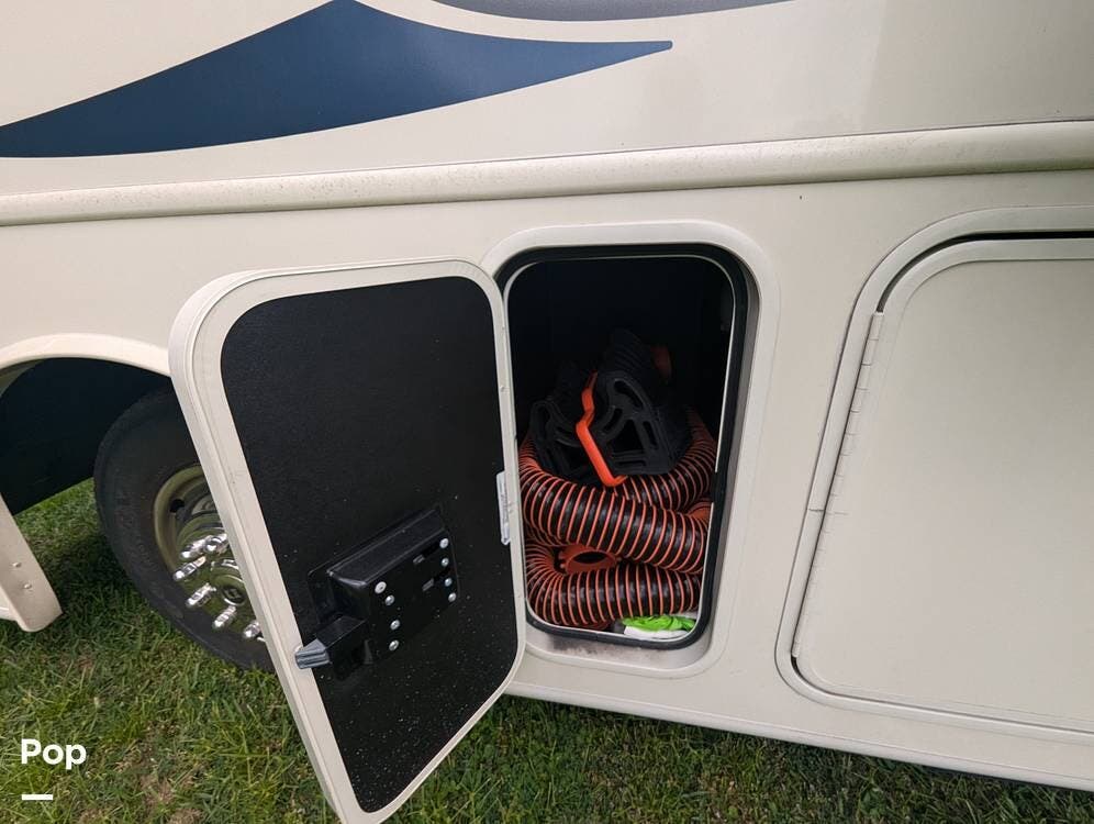 Relax outside with the oversized awning, outdoor TV, stereo, and an outdoor kitchen. The basements are passthrough for added space.