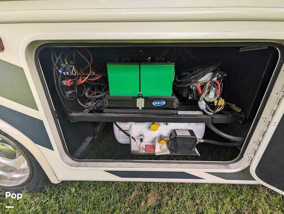 This coach has a Ford 7.3L V8 engine with very low miles! Steering stabilizers were added for a smooth ride, and Steering Safe-T-Plus stabilizers have been added for easy driving.