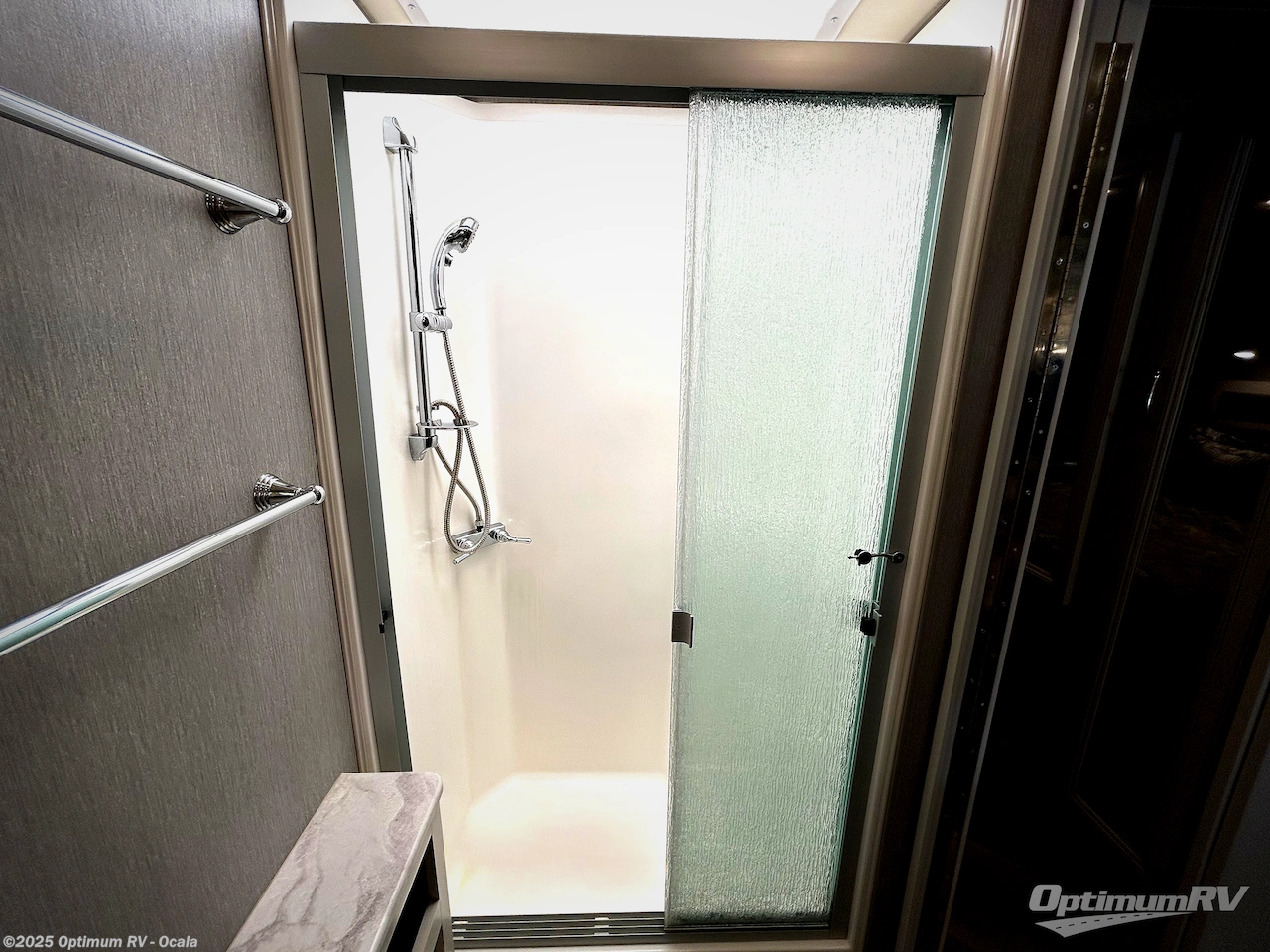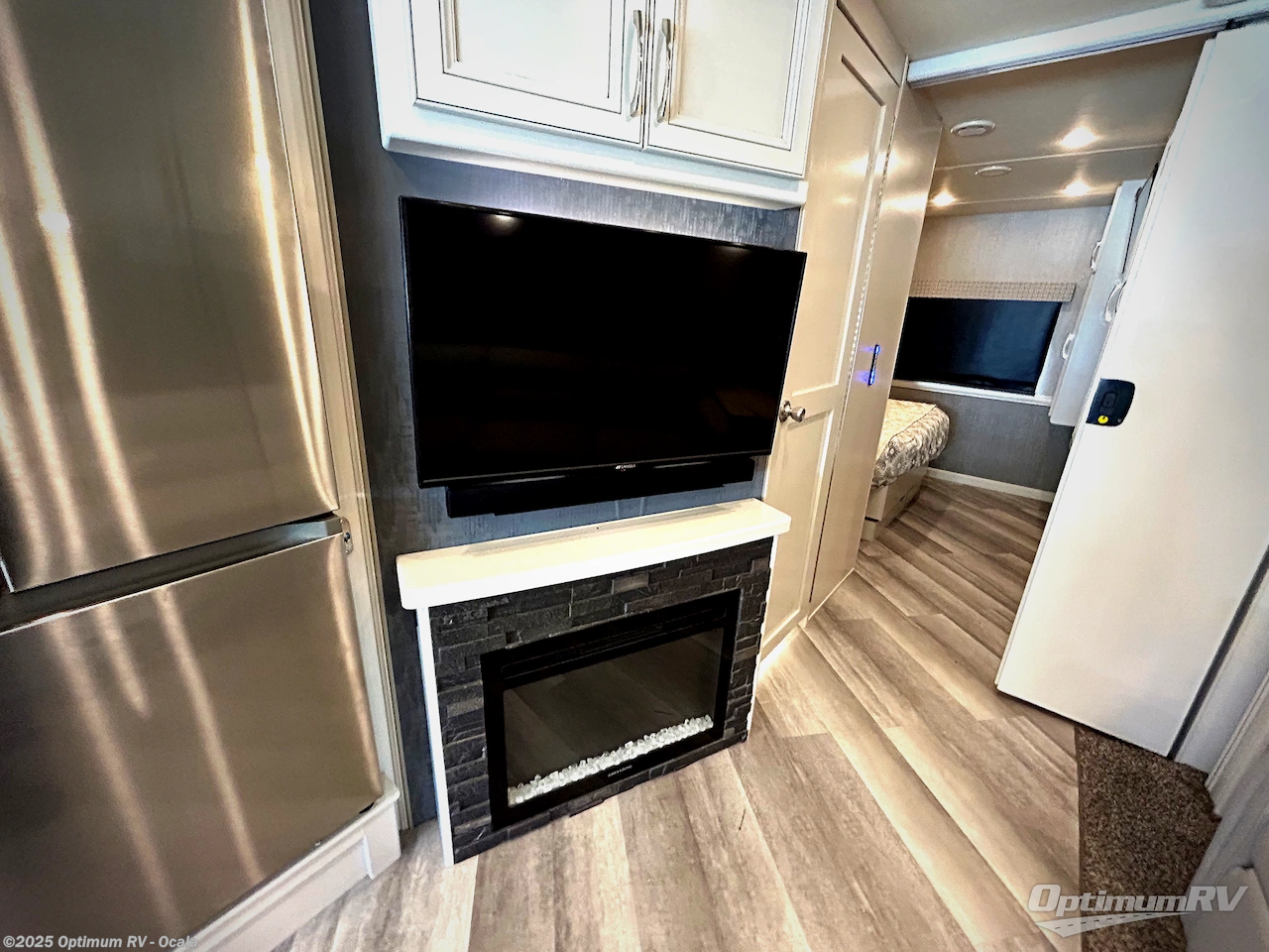 Get ready to live in this coach with all the amenities of home, yet your destination can change when you like! The rear bedroom offers a slide out king bed with CPAP storage above, plus wardrobes, a dresser and a 32" LED TV to watch at night. The full bathroom offers a 24" x 40" shower with a seat so you can relax after shopping in town or hiking the trails. When you get hungry, the full kitchen offers a residential refrigerator, a convection microwave and pantry for all your goodies. The sofa sleeper and end table are across from the 40" LED TV with fireplace below for a great place to watch your shows, and the booth dinette gives you a place to dine and even work if you need to. You can also enjoy your coffee while sitting in the driver and passenger seats that swivel with a pedestal table in between. When you have overnight guests, they can sleep on the furniture and you might like to add the optional Hide-A-Loft power drop-down overhead bunk so they have that choice as well.