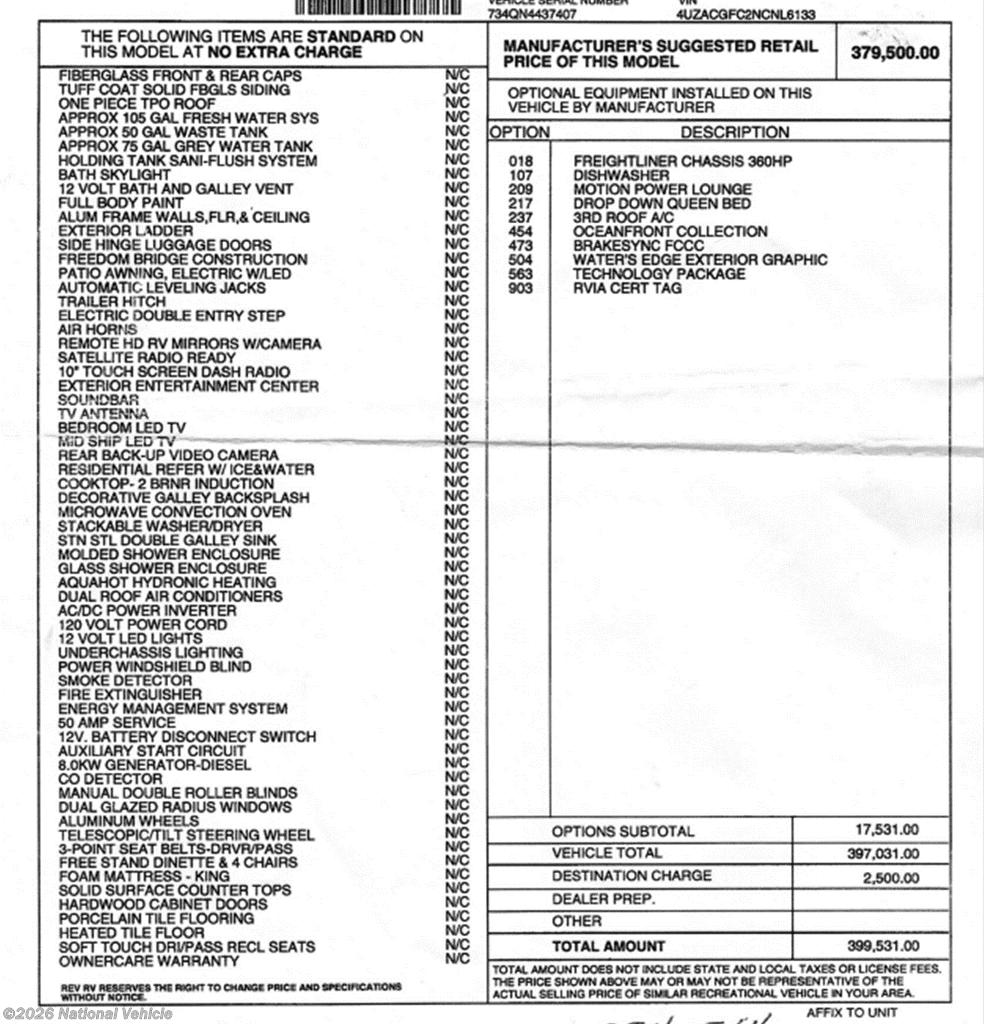 Request More Info on this 2022 Fleetwood Discovery 36Q Offered for sale by National Vehicle