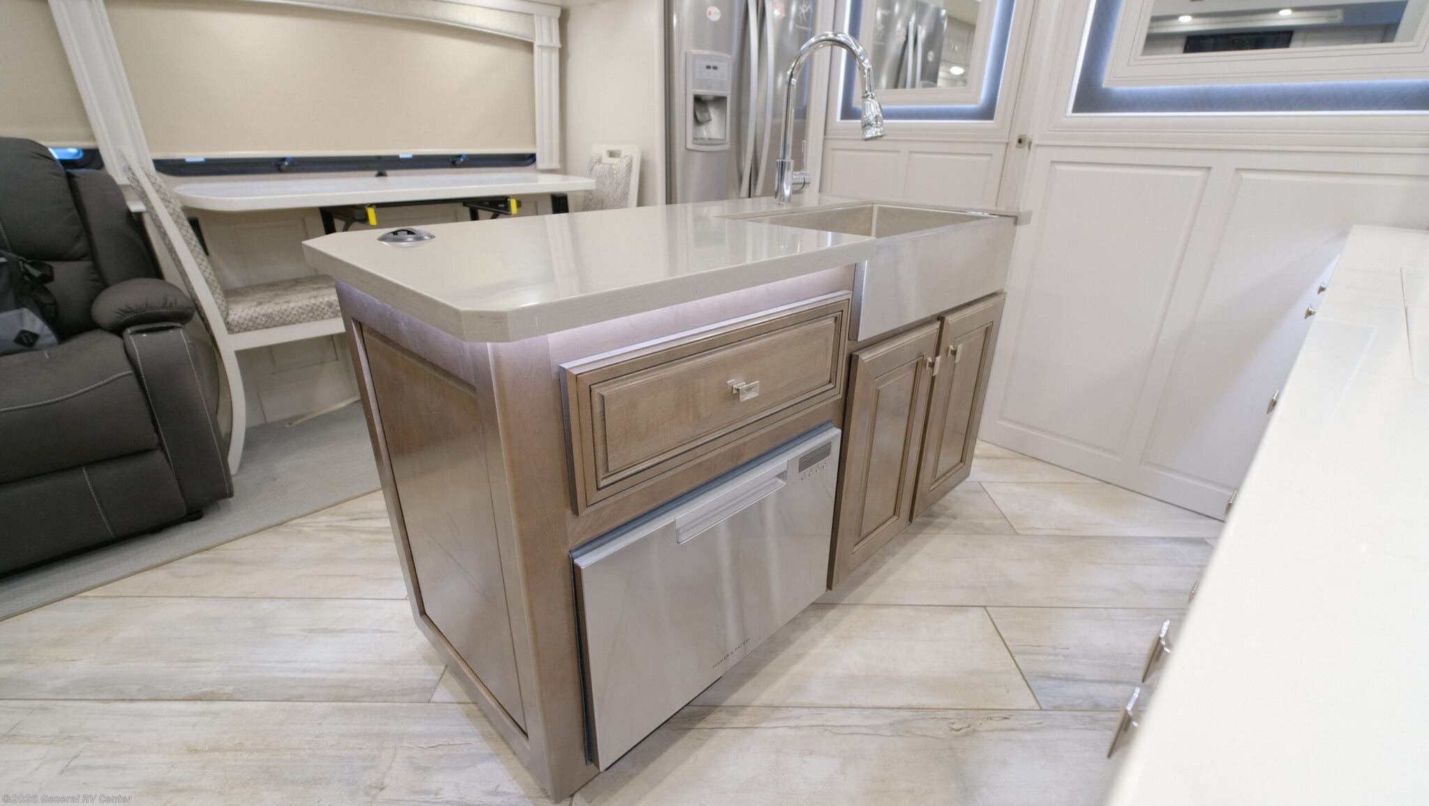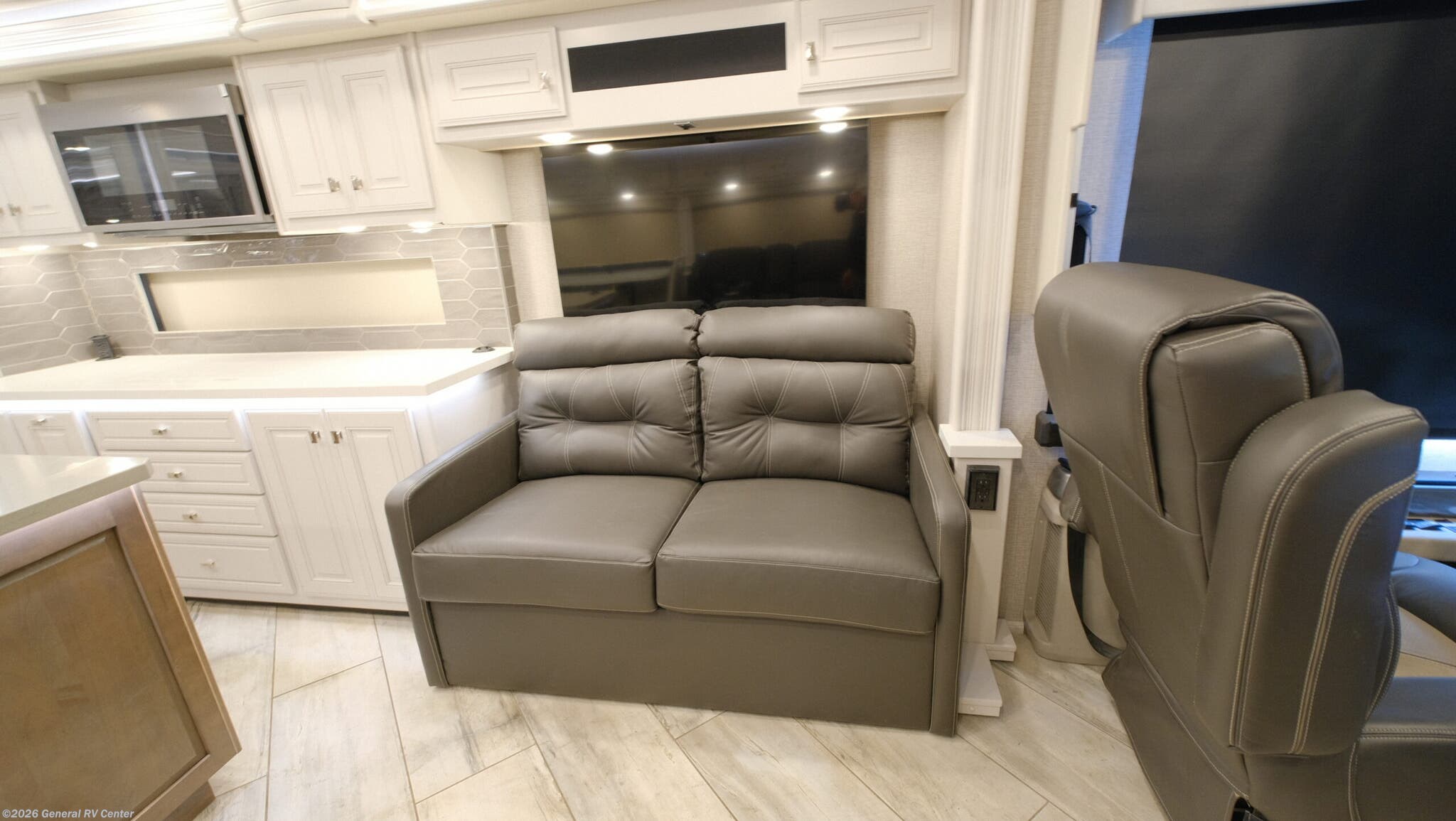 **Fleetwood Discovery LXE Class A diesel coach 36HQ highlights:** - Four LED TV's - Dishwasher - Two Sofas - Separated Bathroom - Stackable Washer and Dryer - Induction Cooktop Luxury amenities are waiting for you in this spacious coach with four slides! The main living area includes a kitchen island where the chef can prep meals each day, and there is an Adaptable dinette and breakfast bar for coffee and the paper. You will also find a 60" sofa with a drawer, plus a 60" sofa sleeper with a twin bed. If you're needing additional sleeping space, just choose the optional Hide-A-Loft drop-down overhead bunk with an LED TV. The full bath features a private toilet so two people can freshen up at once, and you'll love the residential features here, including a residential sink and faucet. Step up into the rear master bedroom where you'll feel right at home. Here, you'll find a king bed slide out, a full-length wardrobe, plus a second bedroom wardrobe. There is even a stackable washer and dryer that will make going full-time easier than ever! The Discovery LXE Class A diesel motorhomes by Fleetwood RV features a Freedom Bridge foundation with a Freightliner XCM chassis for the ultimate in power, storage, and drivability. The swivel, recline, and heated captain's seats provide comfort at every turn, and you'll have an OptiView instrument panel, color backup monitor, and BrakeSync supplemental braking system for your peace of mind. Each coach includes LED-lit basement storage, automatic hydraulic leveling jacks, a four-color premium full-body paint, and automatic entrance steps to name a few exterior comforts. The interior will have you feeling right at home with its porcelain tile flooring, floor heat in the living area, hardwood cabinetry, and polished solid surface galley countertop with lighting. You can further customize your Discovery LXE coach by adding one or more of the many options offered, like the optional Hide-A-Loft power drop-down bunk, the optional Winegard In Motion satellite, or the optional Technology Package!