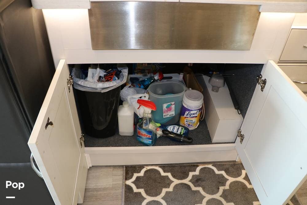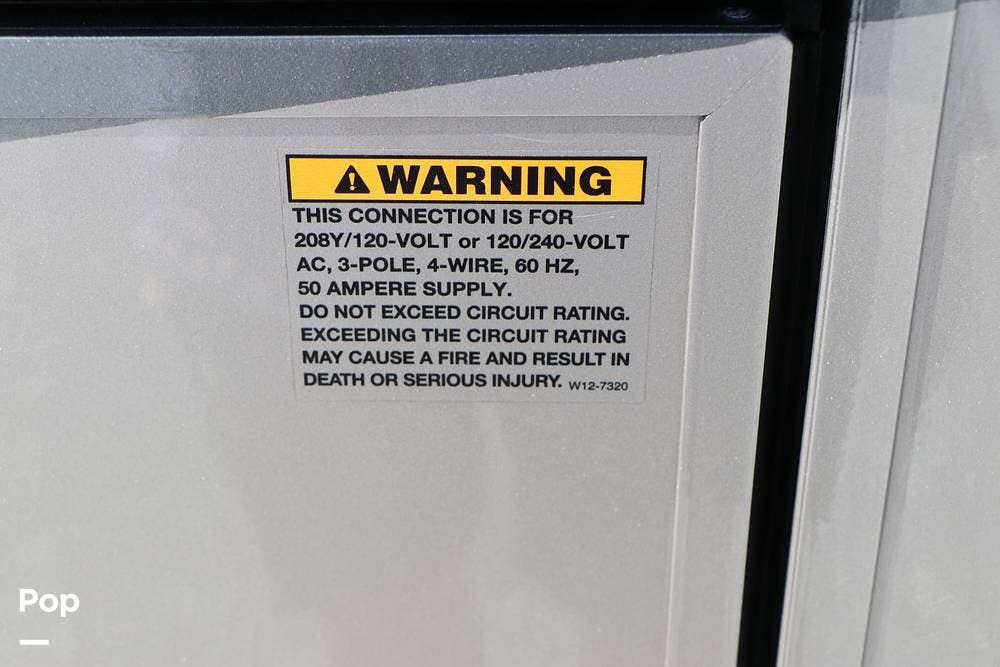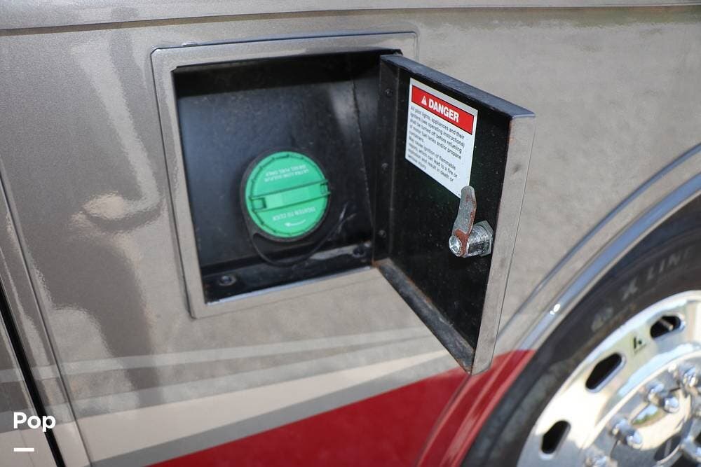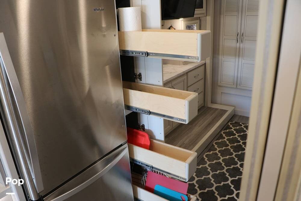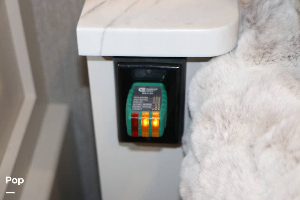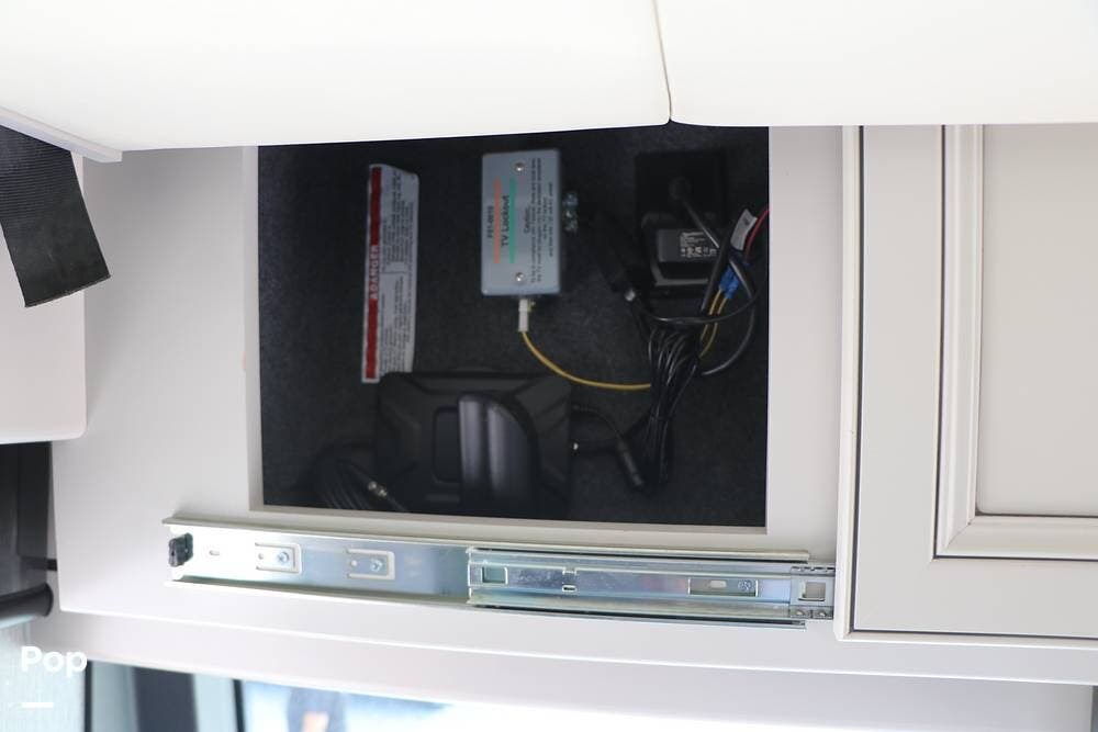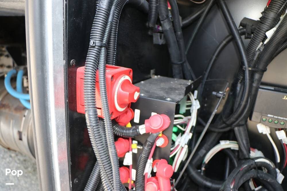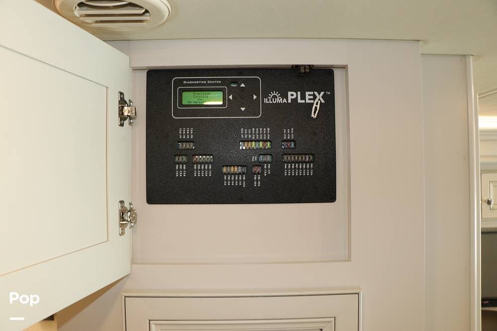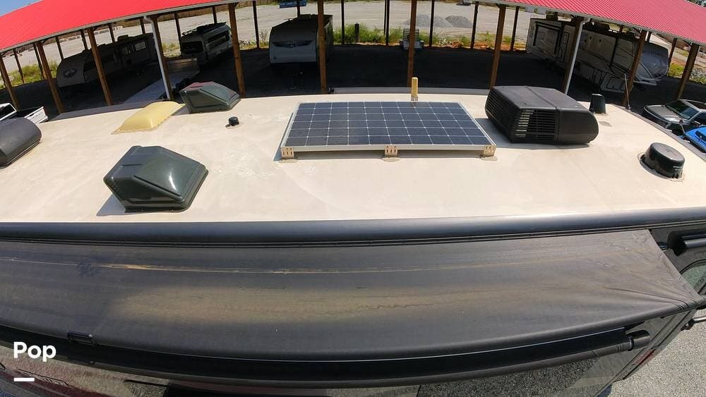 Outside, the Exterior TV and sound bar make this a great RV for tailgating, along with the two Power Patio Awnings that also feature auto-retracting capabilities for inclement weather. All of the slides have slide toppers, and there is ample exterior storage space as shown in the photos. All of the RV systems are clearly marked and easily accessible.