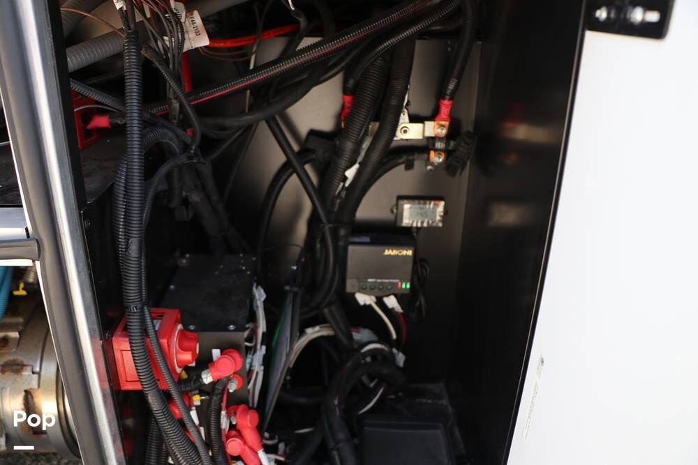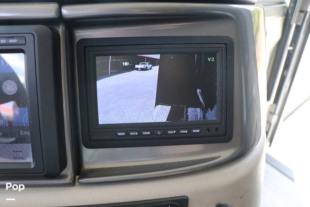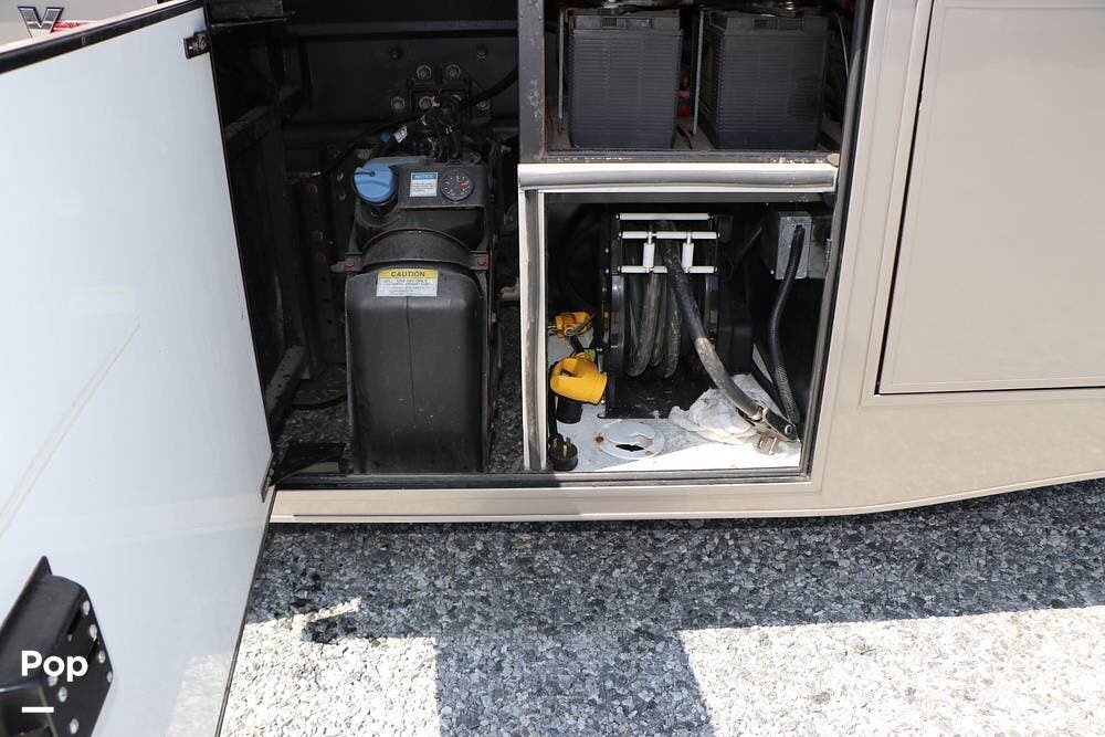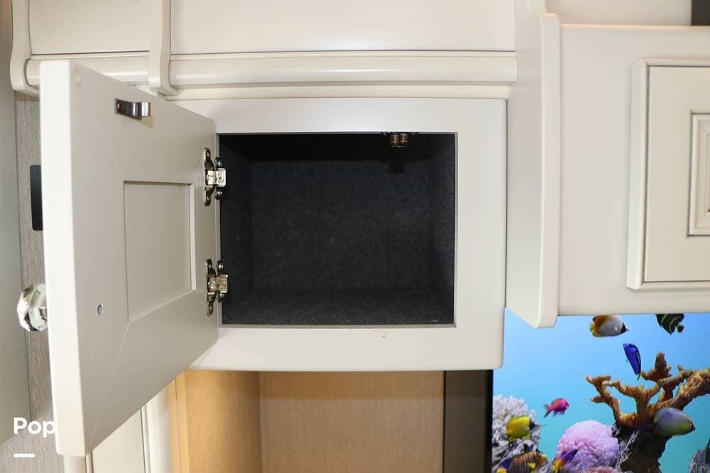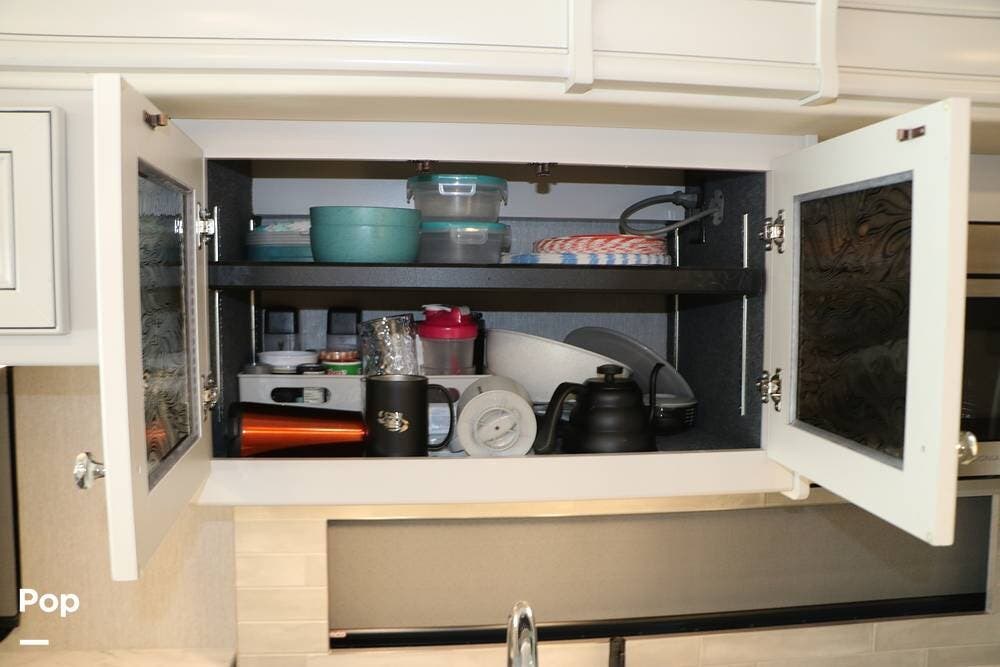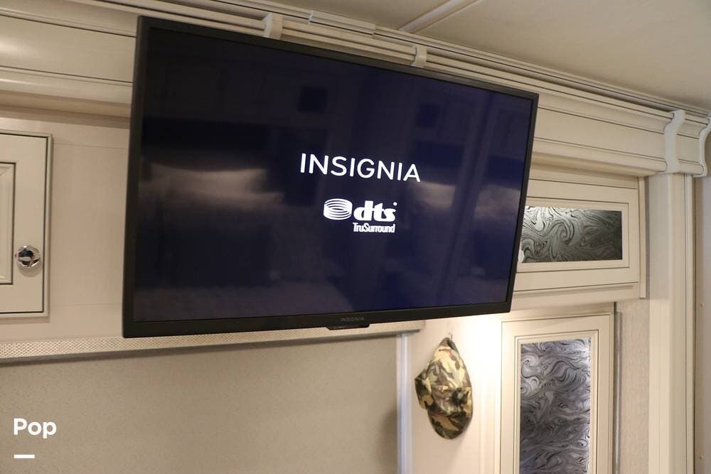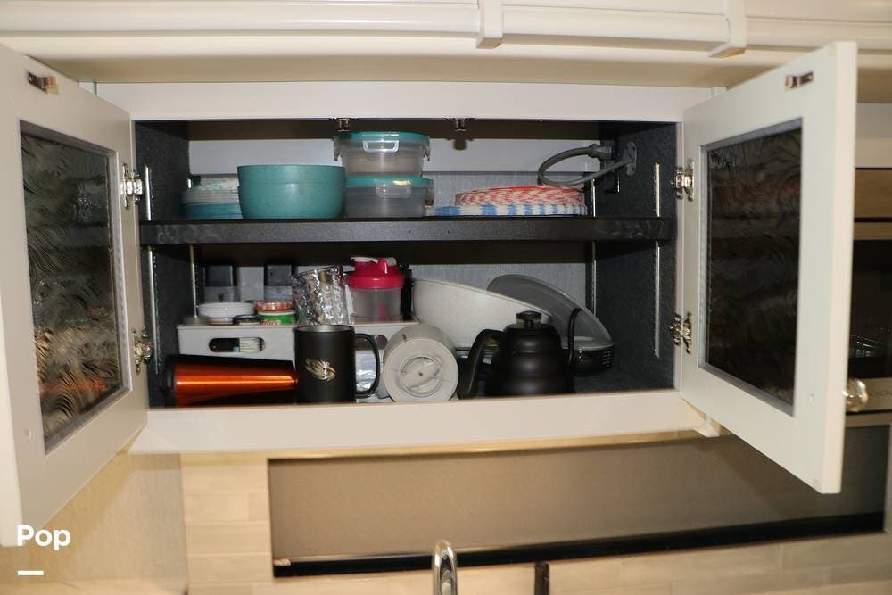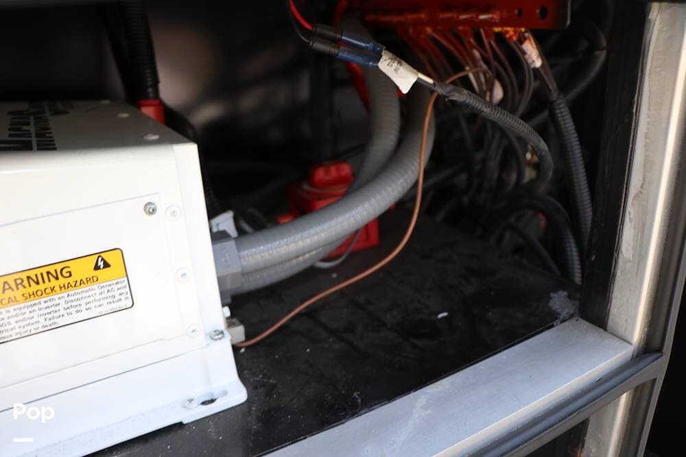 Outside, the Exterior TV and sound bar make this a great RV for tailgating, along with the two Power Patio Awnings that also feature auto-retracting capabilities for inclement weather. All of the slides have slide toppers, and there is ample exterior storage space as shown in the photos. All of the RV systems are clearly marked and easily accessible.