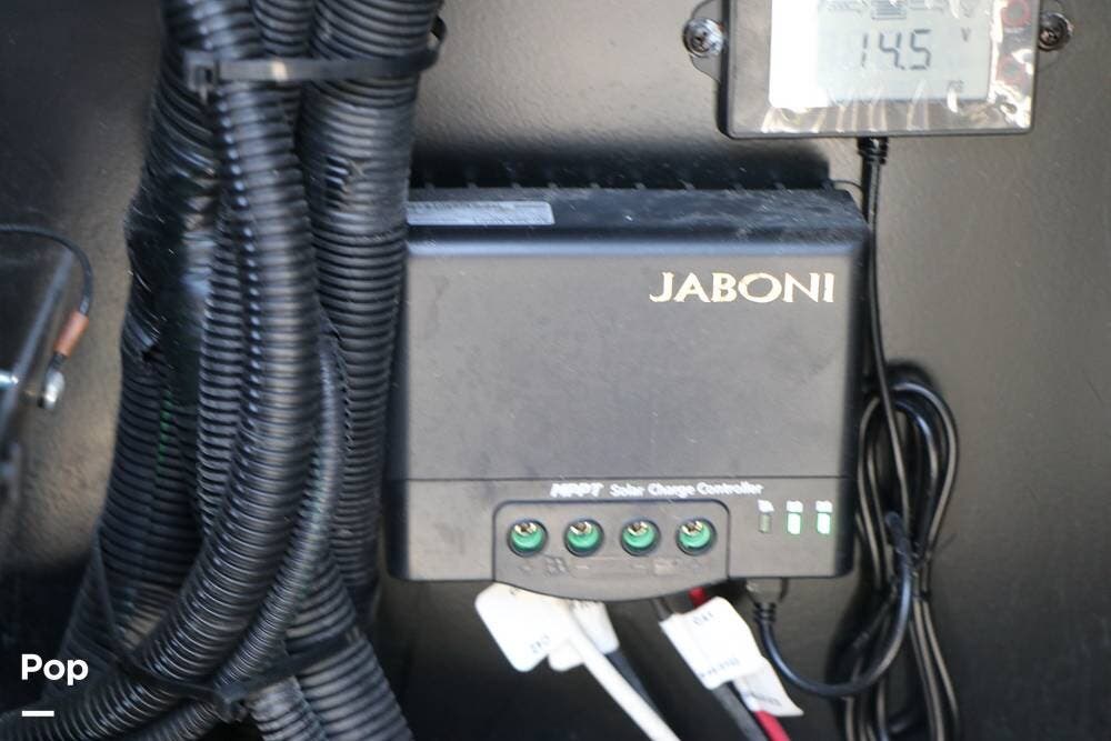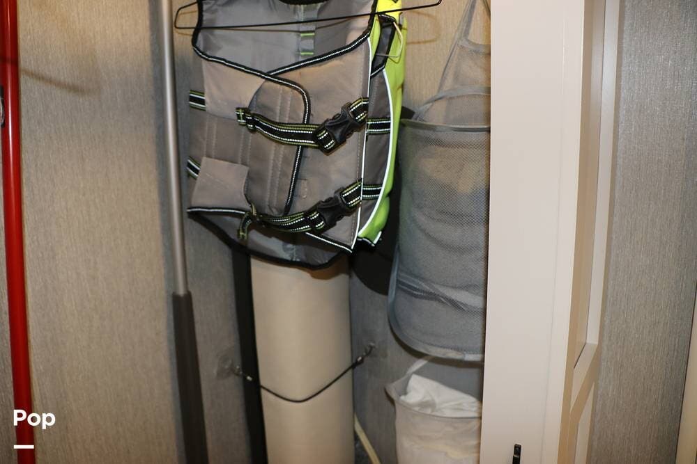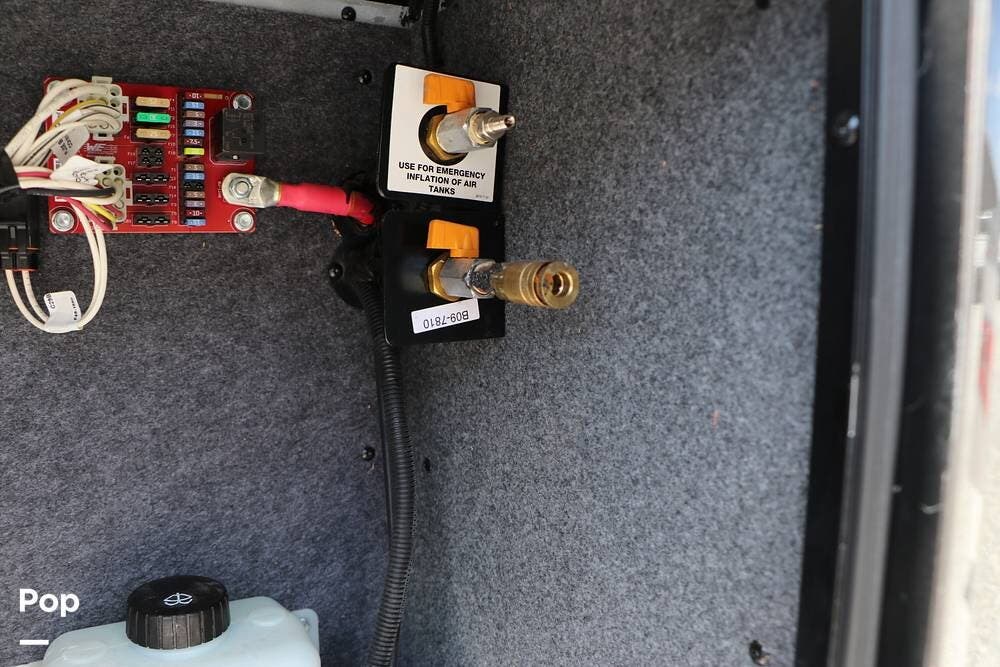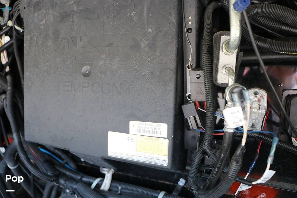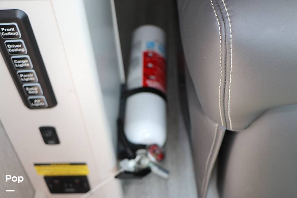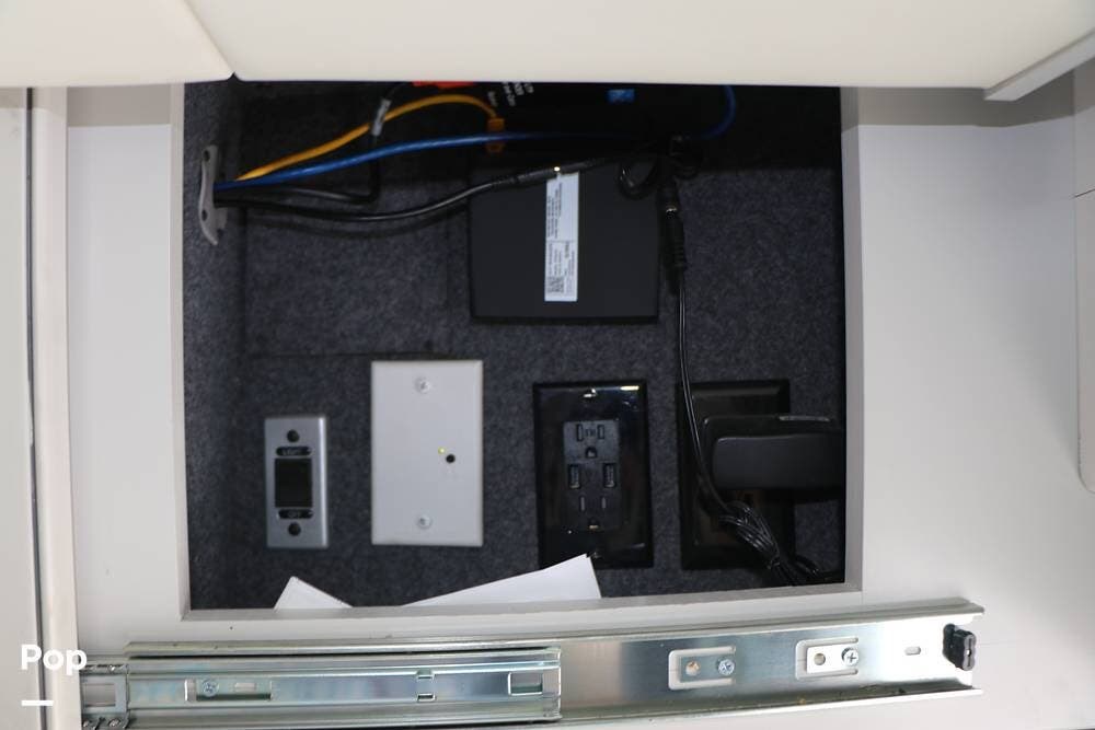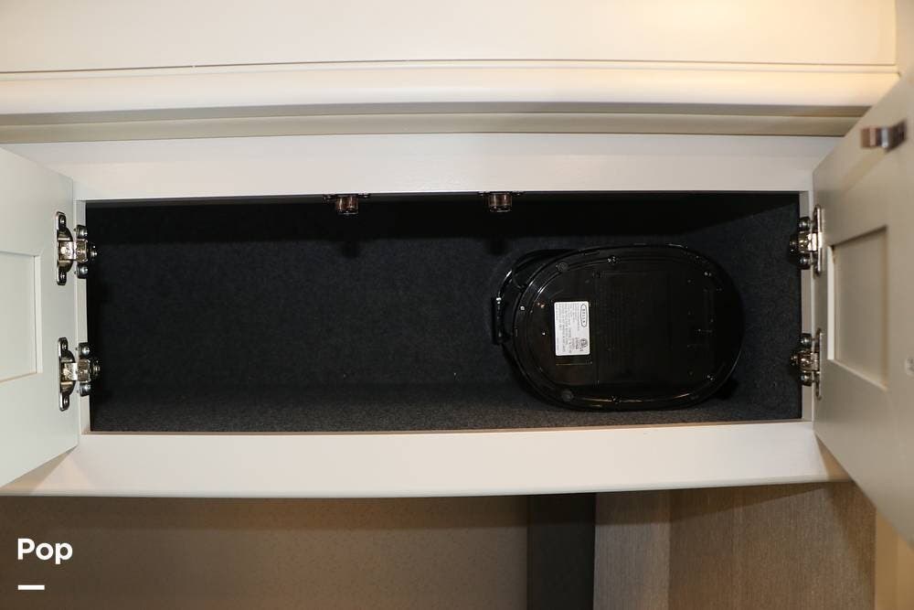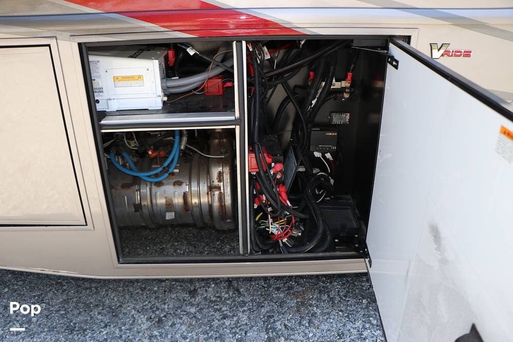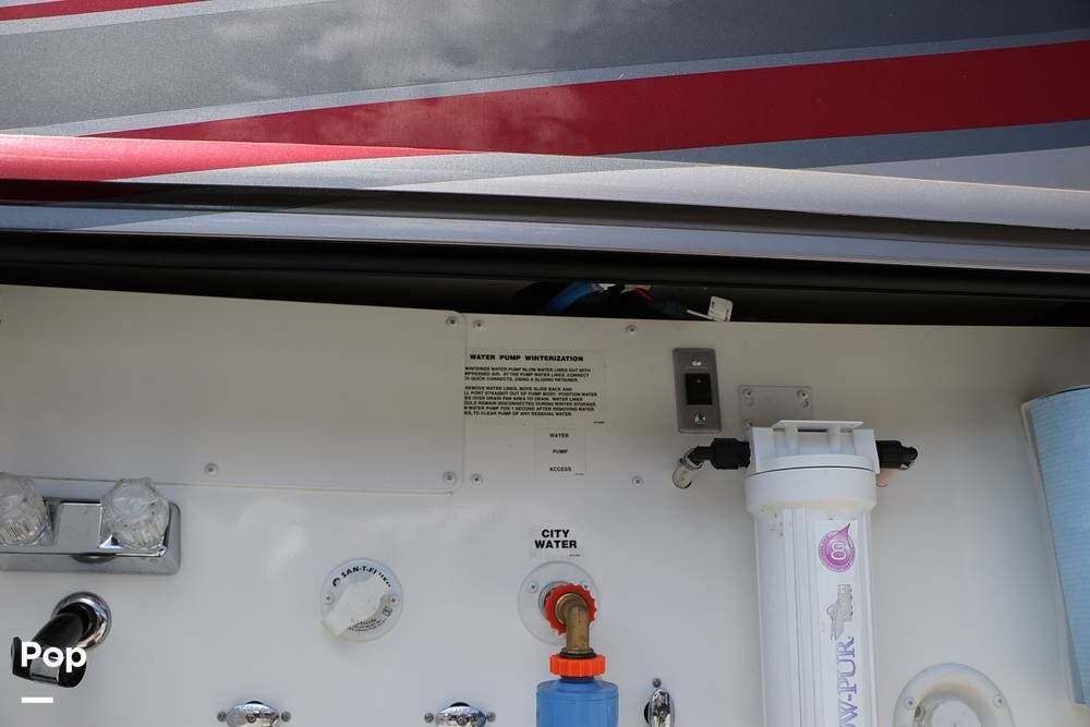 Outside, the Exterior TV and sound bar make this a great RV for tailgating, along with the two Power Patio Awnings that also feature auto-retracting capabilities for inclement weather. All of the slides have slide toppers, and there is ample exterior storage space as shown in the photos. All of the RV systems are clearly marked and easily accessible.