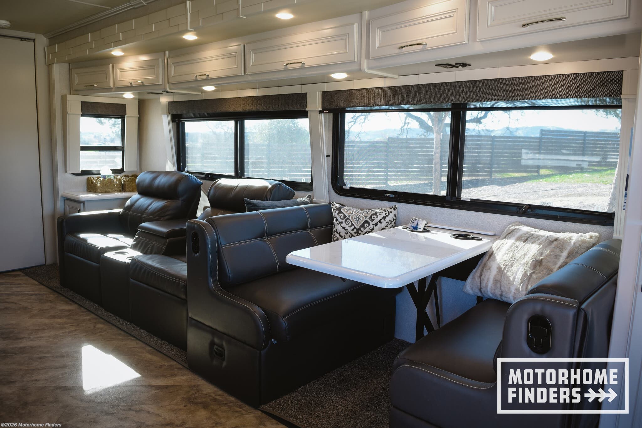 Booth Dinette, Day/Night Shades, Dinette Bed, Fireplace, King Size Bed, Kitchen Sink, Non-Smoking Unit, Roof Vents, Self Contained, Shower, Theater Seating, Toilet