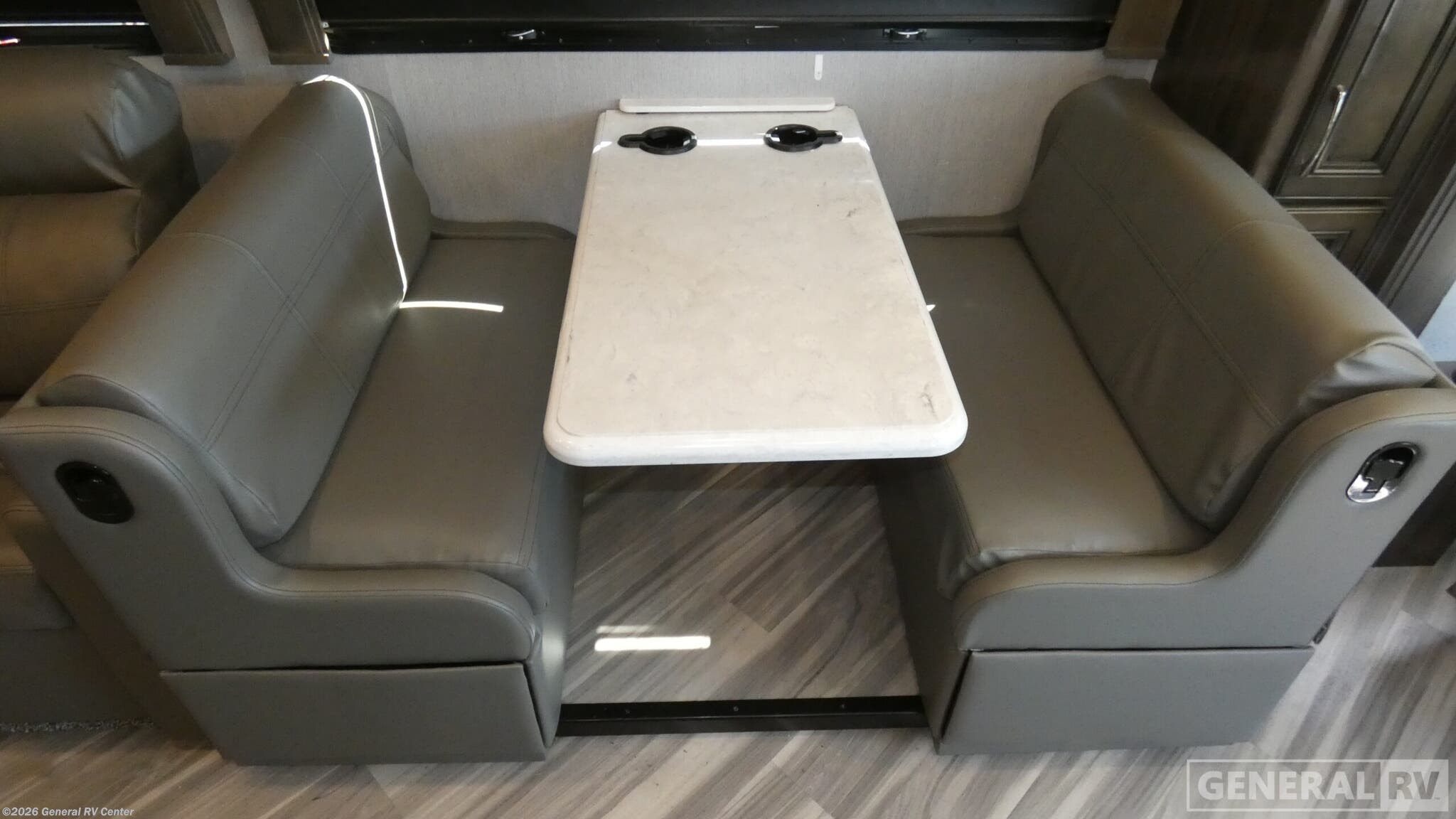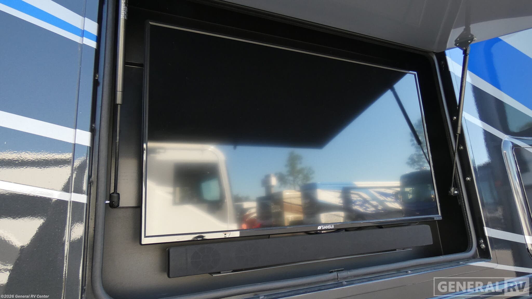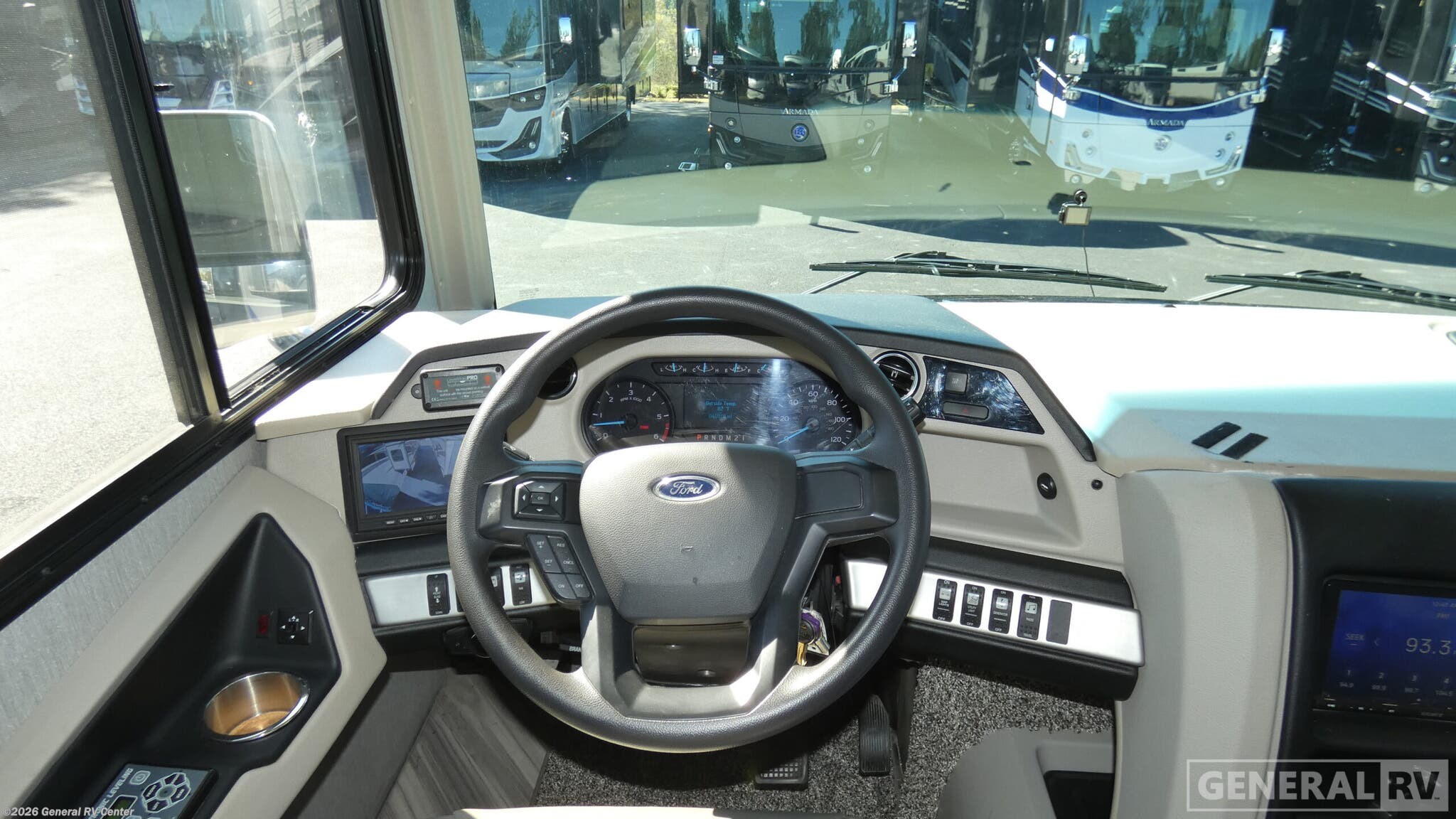 With 37 feet of comfort, convenience and style you are sure to have fun where ever you travel! This spacious and longest gas coach Fleetwood, allows you to invite guests on the trip and/or growing family with plenty of space to stretch out. Everyone can gather in the main living and kitchen area while relaxing on the theater seats, booth dinette and the driver/passenger seats that swivel and include a pedestal table in between to place your drinks and such. The 40" LED TV with fireplace below allows you to watch a show or game inside. And the exterior LED TV gives you outside entertainment and there is a legless electric patio awning with LED lighting and motion sensor that creates an outdoor living area. The two full bathrooms offer another level of convenience when you have six people over to stay the night. And the bunk beds also convert into a wardrobe and seating for a TV gaming center with a 24" LED TV with flip down storage and linen within view. When you are ready for bed, head to the master suite complete with a king bed slide out, another LED TV, plus a full bathroom all to yourself! Travel in luxury and style in any Southwind Class A gas motorhome by Fleetwood, all while the driver enjoys the power on the open road. Each is constructed on a Power Platform Ford chassis, and includes the BrakeSync supplemental braking system for enhanced safety, plus four 6V deep cycle house batteries, a 100W solar panel and WiFi Ranger Sky4 so you can stay connected anywhere. The interior offers durable and easy to clean vinyl tile flooring, a solid wood ceiling treatment with acrylic inserts and LED backlighting, and a feature wall with accent wall covering, plus a built-in electric fireplace in the living area. Choose a whole lot of luxury, take a Southwind coach home today!