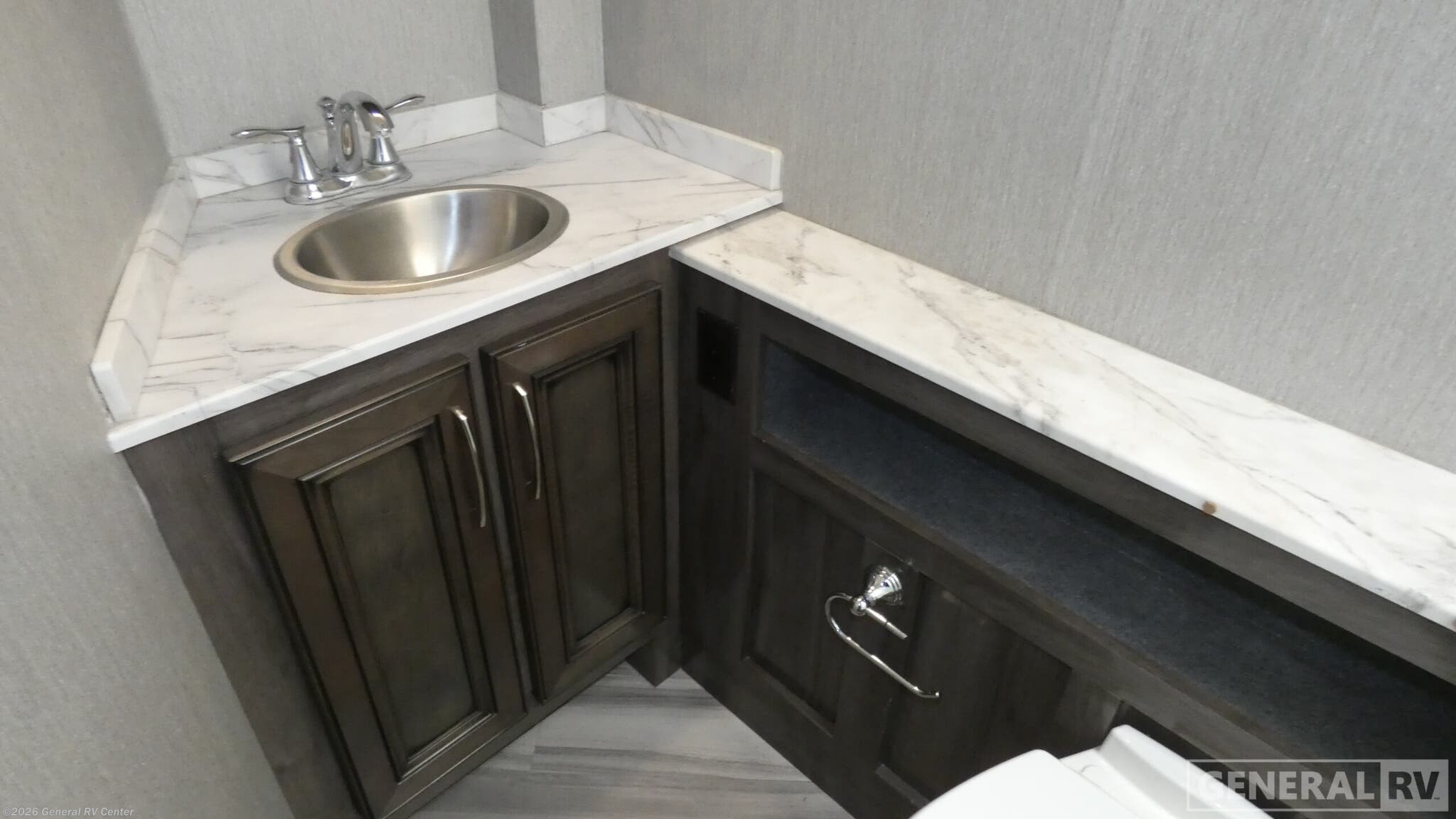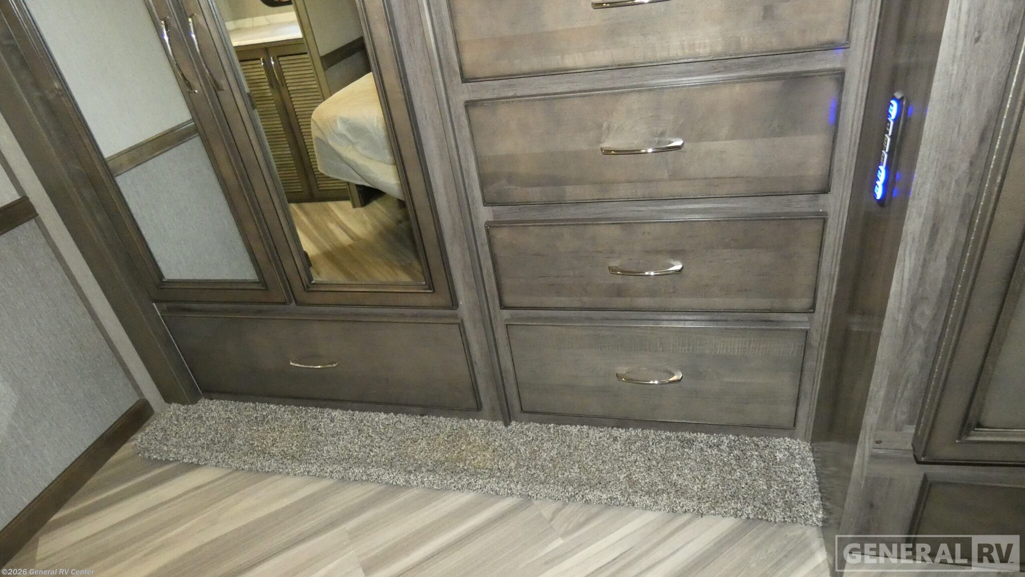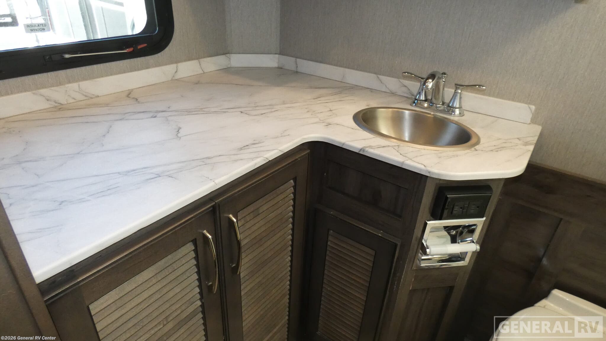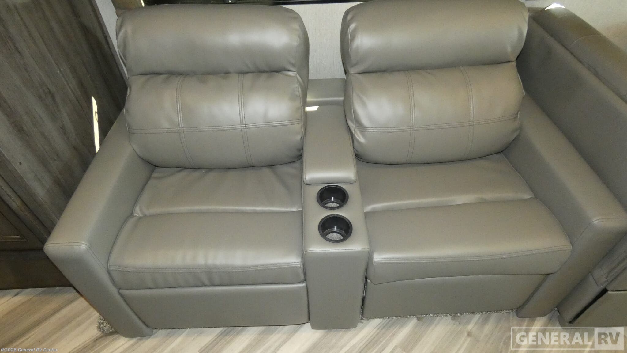 With 37 feet of comfort, convenience and style you are sure to have fun where ever you travel! This spacious and longest gas coach Fleetwood, allows you to invite guests on the trip and/or growing family with plenty of space to stretch out. Everyone can gather in the main living and kitchen area while relaxing on the theater seats, booth dinette and the driver/passenger seats that swivel and include a pedestal table in between to place your drinks and such. The 40" LED TV with fireplace below allows you to watch a show or game inside. And the exterior LED TV gives you outside entertainment and there is a legless electric patio awning with LED lighting and motion sensor that creates an outdoor living area. The two full bathrooms offer another level of convenience when you have six people over to stay the night. And the bunk beds also convert into a wardrobe and seating for a TV gaming center with a 24" LED TV with flip down storage and linen within view. When you are ready for bed, head to the master suite complete with a king bed slide out, another LED TV, plus a full bathroom all to yourself! Travel in luxury and style in any Southwind Class A gas motorhome by Fleetwood, all while the driver enjoys the power on the open road. Each is constructed on a Power Platform Ford chassis, and includes the BrakeSync supplemental braking system for enhanced safety, plus four 6V deep cycle house batteries, a 100W solar panel and WiFi Ranger Sky4 so you can stay connected anywhere. The interior offers durable and easy to clean vinyl tile flooring, a solid wood ceiling treatment with acrylic inserts and LED backlighting, and a feature wall with accent wall covering, plus a built-in electric fireplace in the living area. Choose a whole lot of luxury, take a Southwind coach home today!