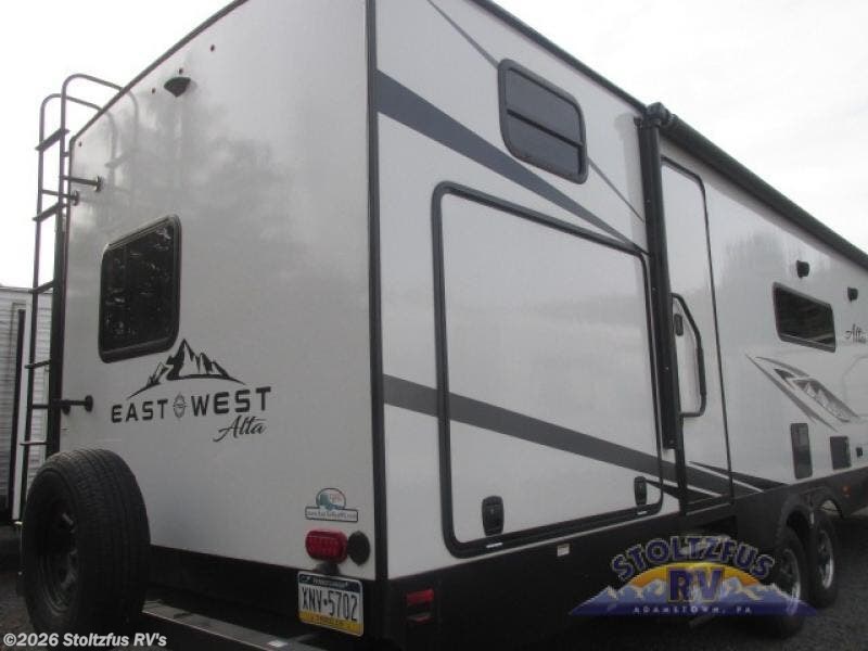 Each Alta travel trailer by EAST TO WEST is constructed with a 5" vacuum bonded roof, Azdel Onboard composite panels, and diamond plate front rock guard for added protection. Outside, you'll find two marine-grade exterior speakers, 4-point electric stabilizer jacks, and Furrion back-up camera prep that can be added to make maneuvering in and out of campgrounds easier than ever. There are USB charging stations for your tablet or phone, upgraded Congoleum linoleum flooring that is easy to keep clean, and designer solid surface countertops you are sure to love. The 15,000 BUT ducted A/C with quick cool and 35,000 BTU furnace will keep you comfortable in any season, and the 81" interior ceiling height will provide ample space to move about without feeling confined. Start a new adventure in an Alta travel trailer today!