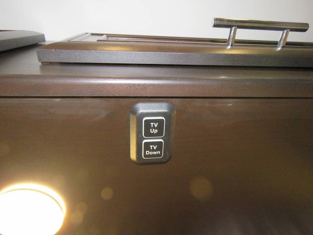 The lounge features an an ultra leather sofa/sleeper across from the perfect, remote-controlled pop-up TV lift and entertainment center featuring the top-of-the-line LG 43" HDTV with surround sound and sub-woofer. For good measure, add upgraded, optional theater seating.