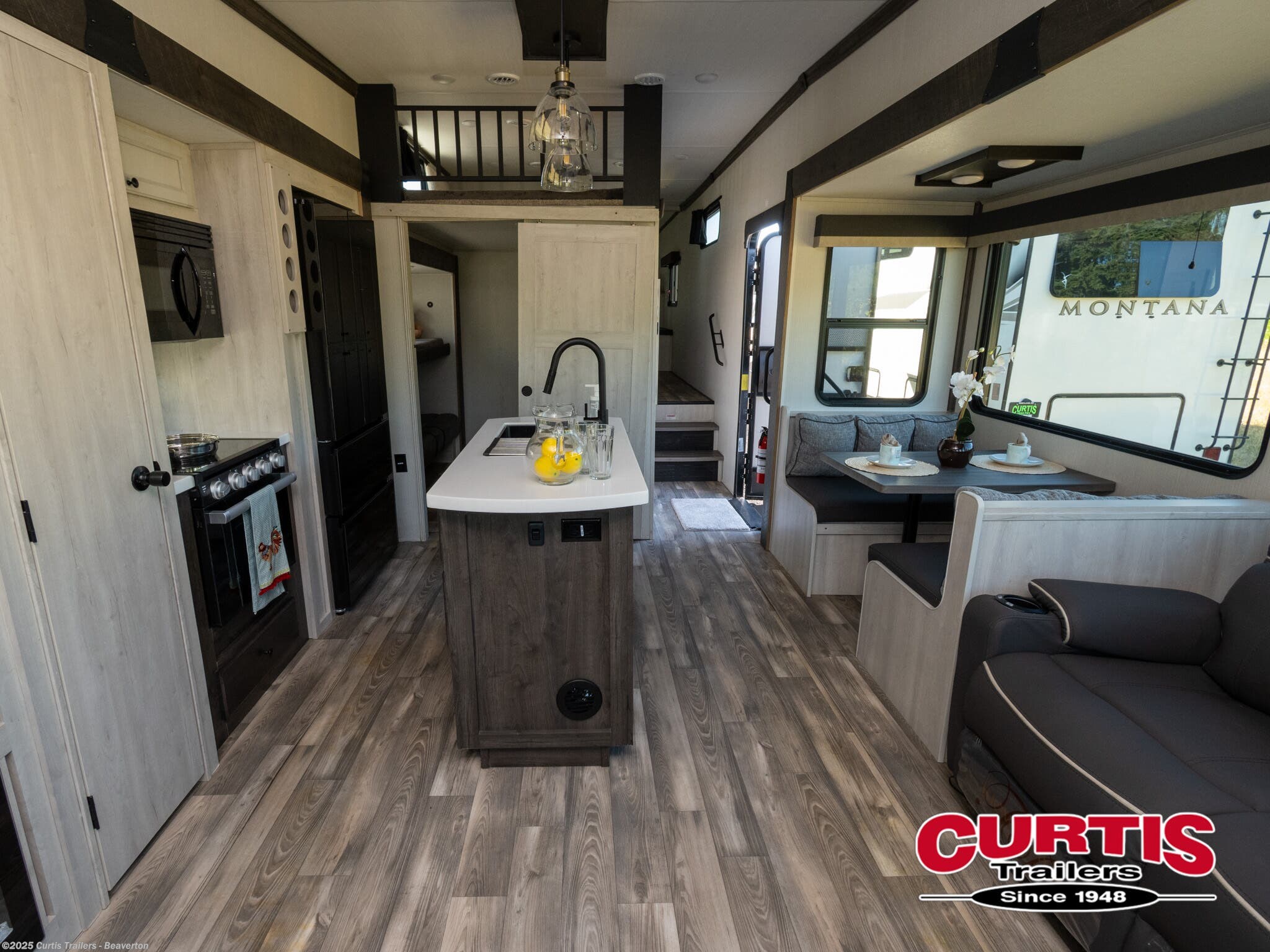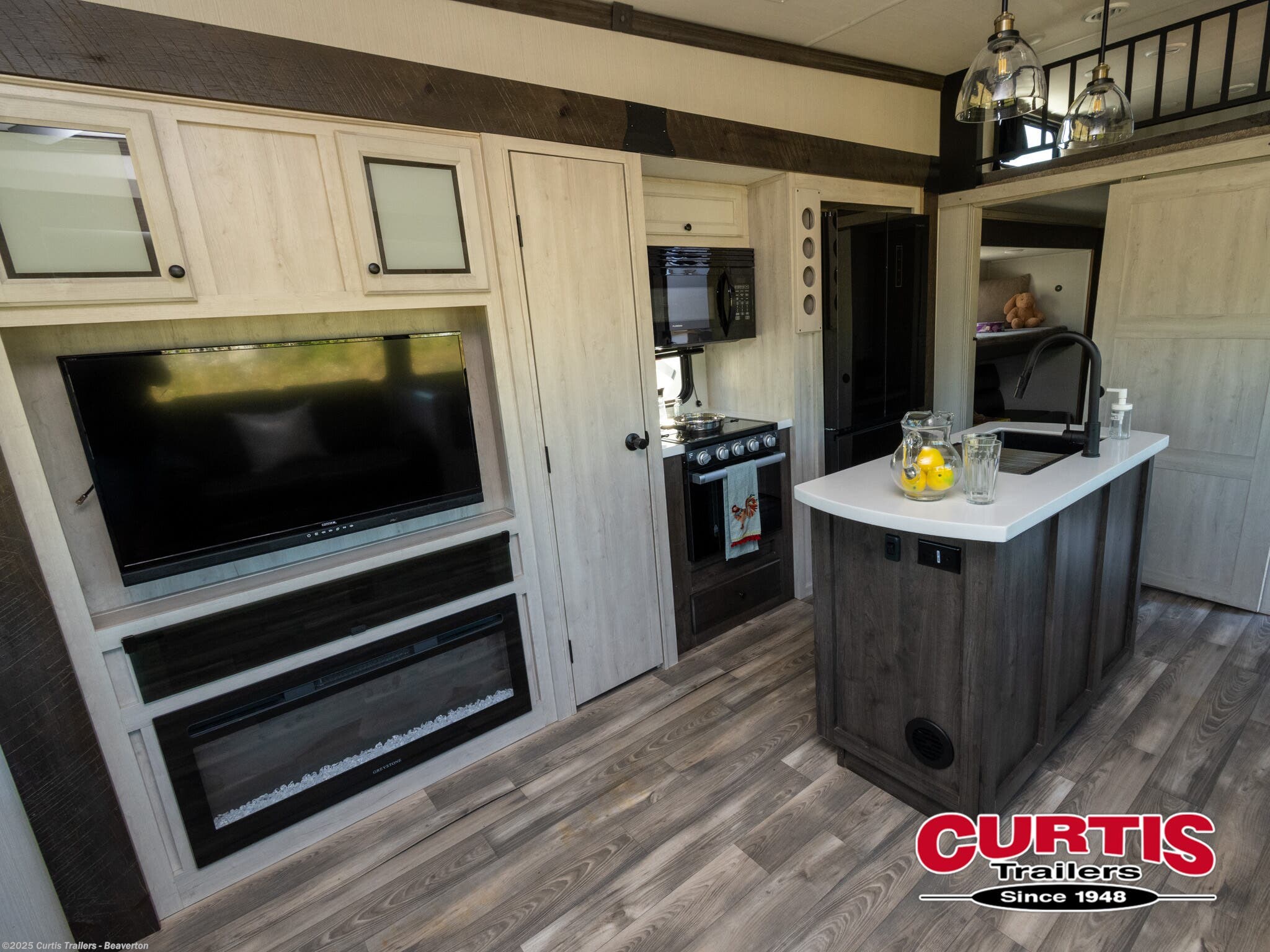 Forest River Cardinal fifth wheel 379MBLE highlights: Front Private Bedroom Loft Two Bedrooms Kitchen Island Rear Living Area Get out and adventure with this fifth wheel! Nothing will hold you back when you have a comfortable king-size bed to sleep on, a full bathroom to stay clean in, a separate living room to lounge in, and an exceptional kitchen to cook in. Some of the appliances you ll find in the kitchen are the 17-cubic foot refrigerator, 22 oven/range with LED knob indicators, and the 30 over-the-range microwave. Sit back on the booth dinette or one of the chairs at the optional free-standing table to chat with the chef while they prepare dinner, or head to the living room to relax on the rear sofa and theater seating. You also have a second bedroom with a loft above it for added sleeping space! Say goodbye to the boring and mundane, and say hello to fresh and exciting with the Forest River Cardinal Limited fifth wheel! The LCI Next Generation frame technology has a Z-frame design, and it is also powder-coated. There are dual roof vents for a breathable attic, an Underbelly Armor for rigid protection from road debris, 12V tank heat pads with underbelly forced-air heat and radiant foil insulation, and a full pass-through front storage with forced-air heat. There are some features that are quite easy to set up, like the power awning with LED light strip, the exterior heated water and convenience center, the battery disconnect located in the main storage compartment, the external LP quick connect, and the hitch light. There is a Winegard 360+ (AM/FM TV antenna with 4G and Wi-Fi extender prep), and each unit has been prepped for solar panels, a rear camera, and a stackable washer/dryer.