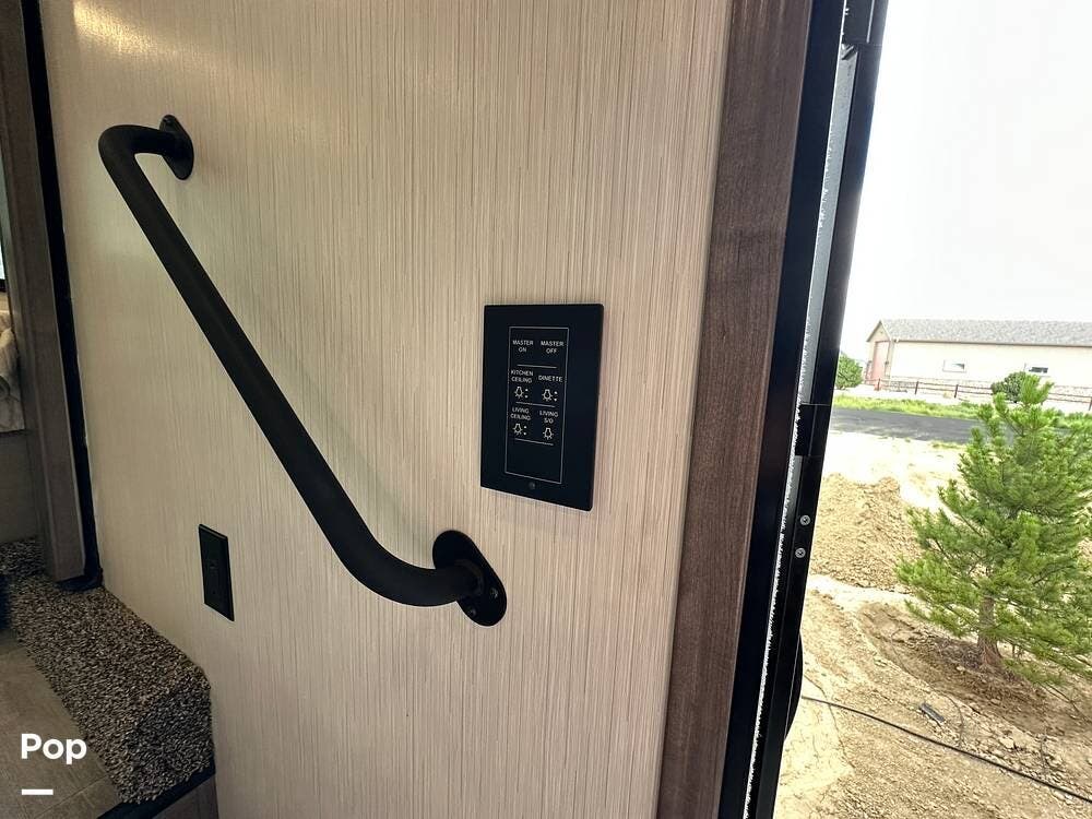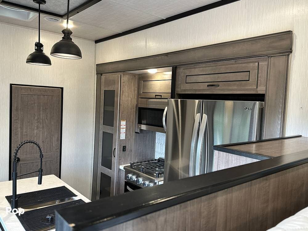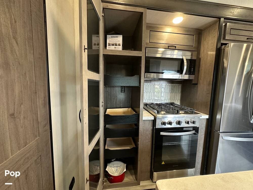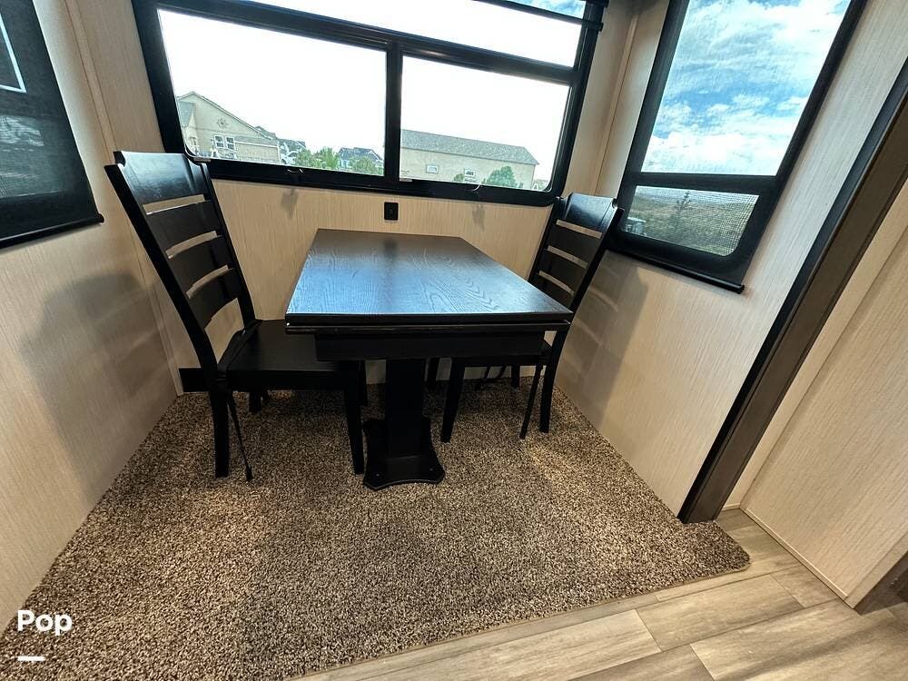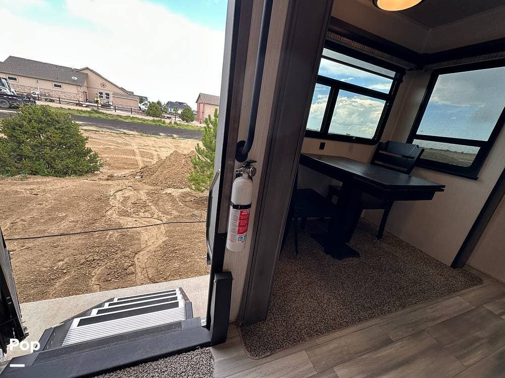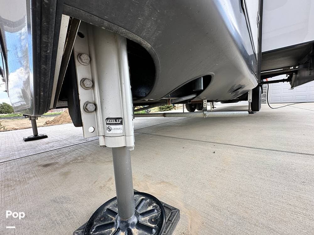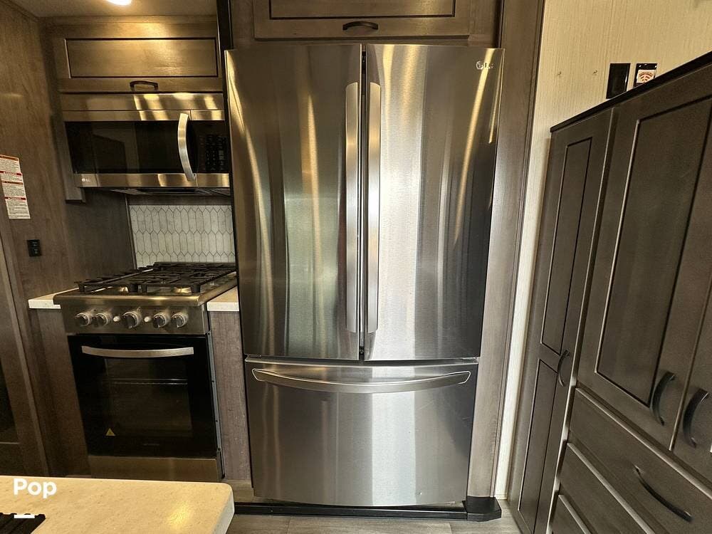 You'll love the comfort and numerous features of this 2022 Cedar Creek 371FL front living 5th wheel, which features 1.5 bathrooms, a king bed, and residential appliances in the kitchen. This RV is located in Berthoud, CO, and is in great condition.